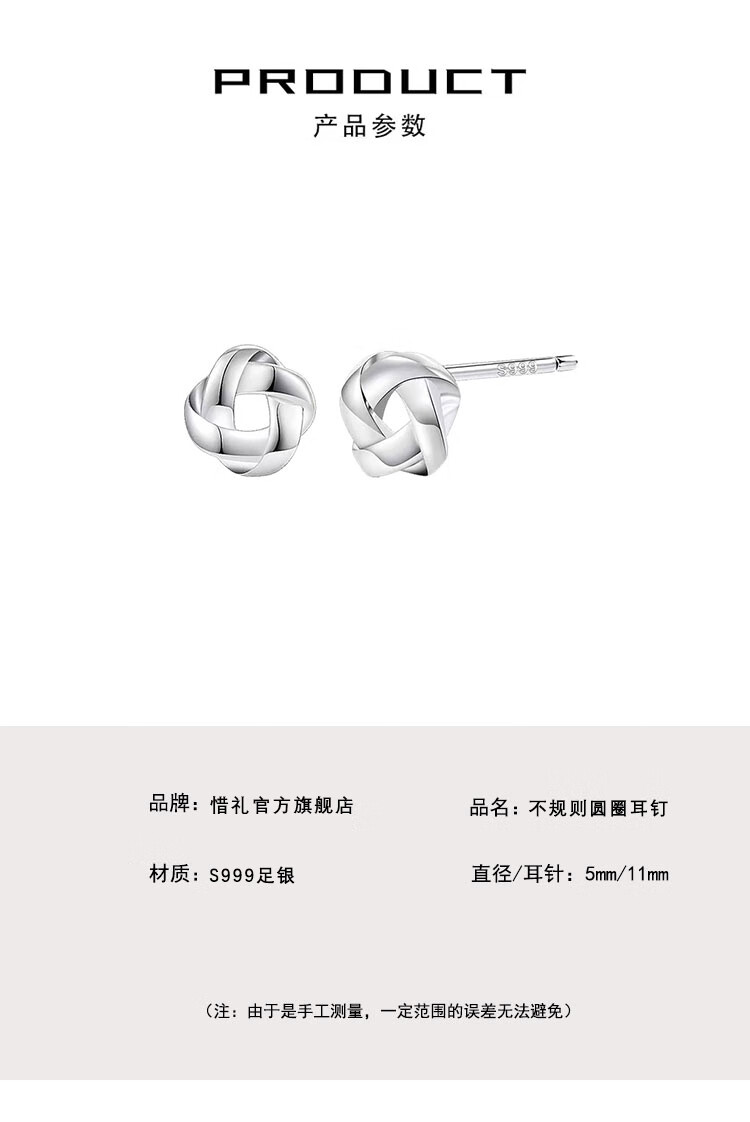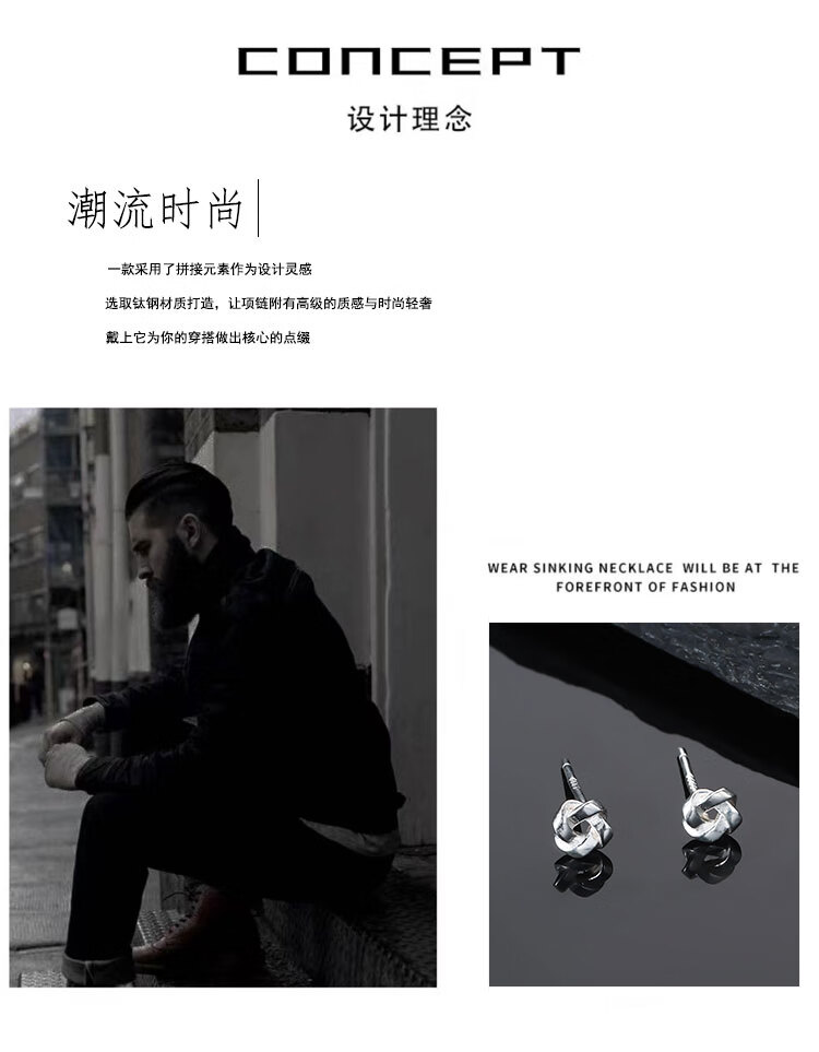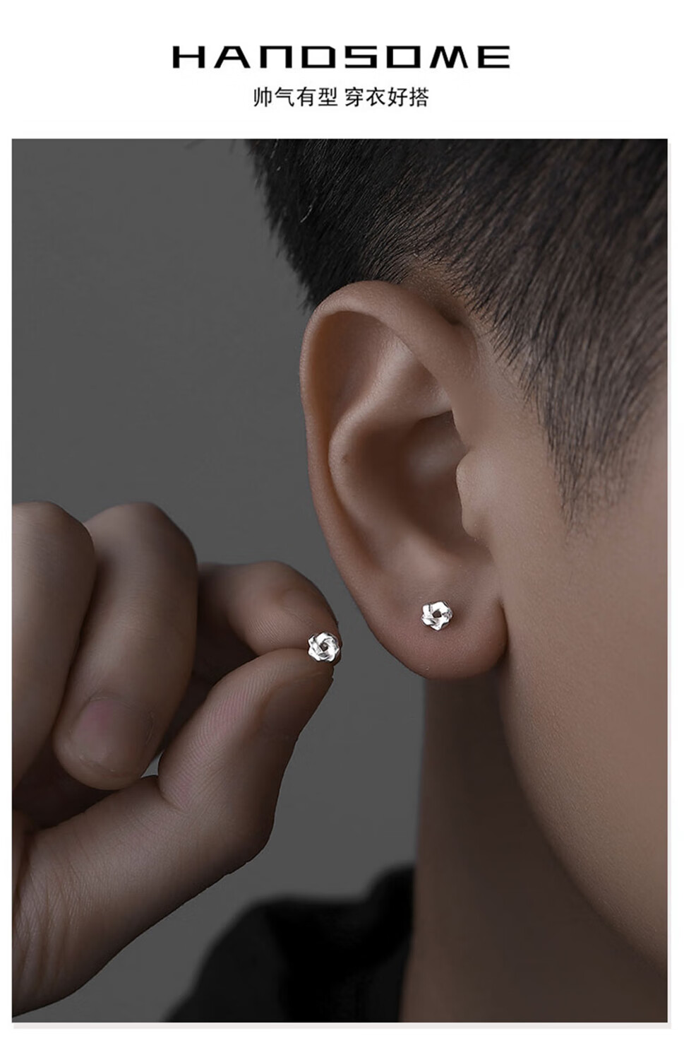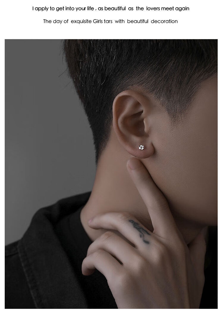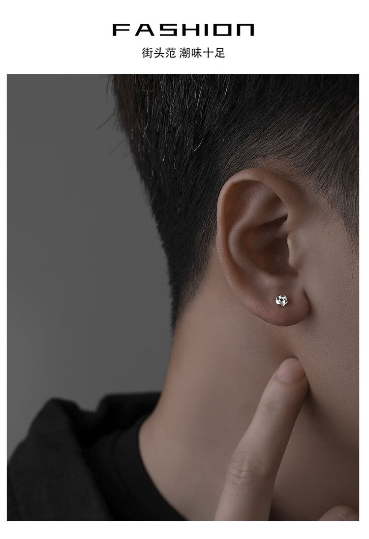 Xili S999 pure silver earrings for men, handsome and high-end single pair of earrings, men's trendy design earrings, pure silver Mobius earrings, single
