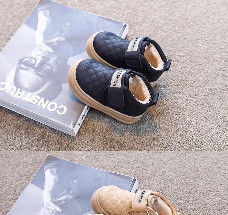 Lurang Song Baby Toddler Shoes Winter Infants and Toddlers Plus Velvet Warm Soft Sole Non-Slip Children's Cotton Shoes 0 to 3 Years Old Baby Shoes Khaki Color 25 Size 16cm Inner Length