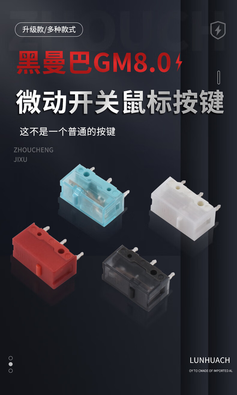 Genuine Kaihua KailhGM8.0 black mamba red dot GM6.0 micro switch mouse button white blade black gold normal strength white blade 100M