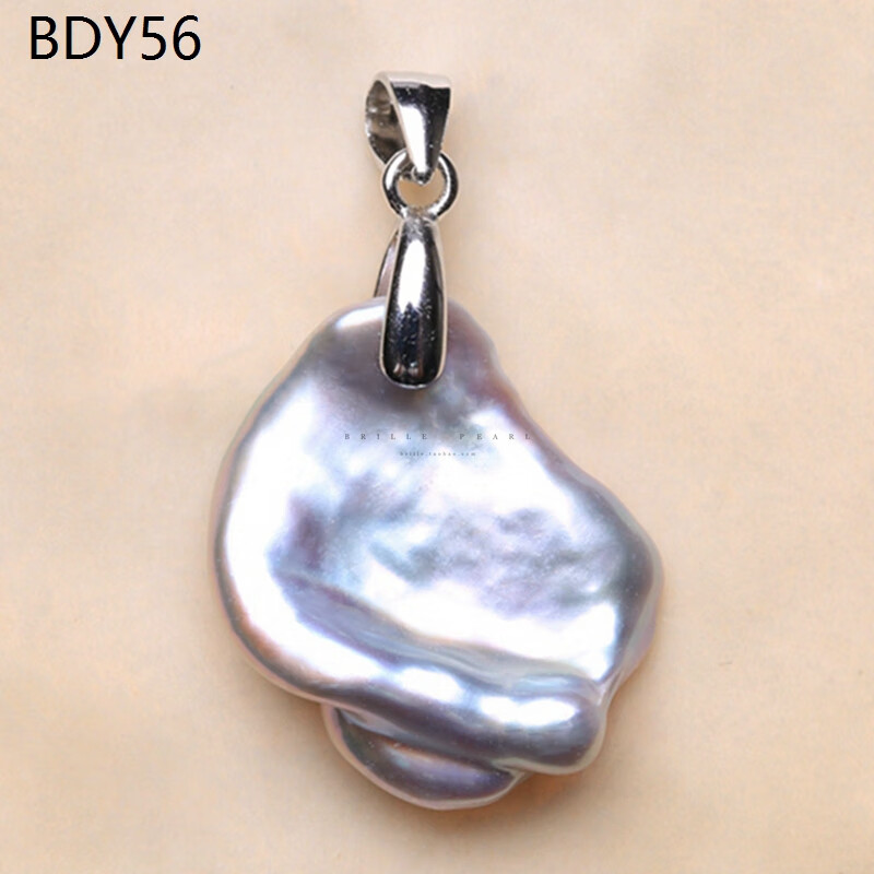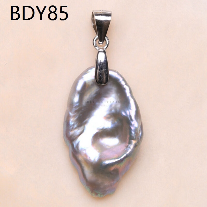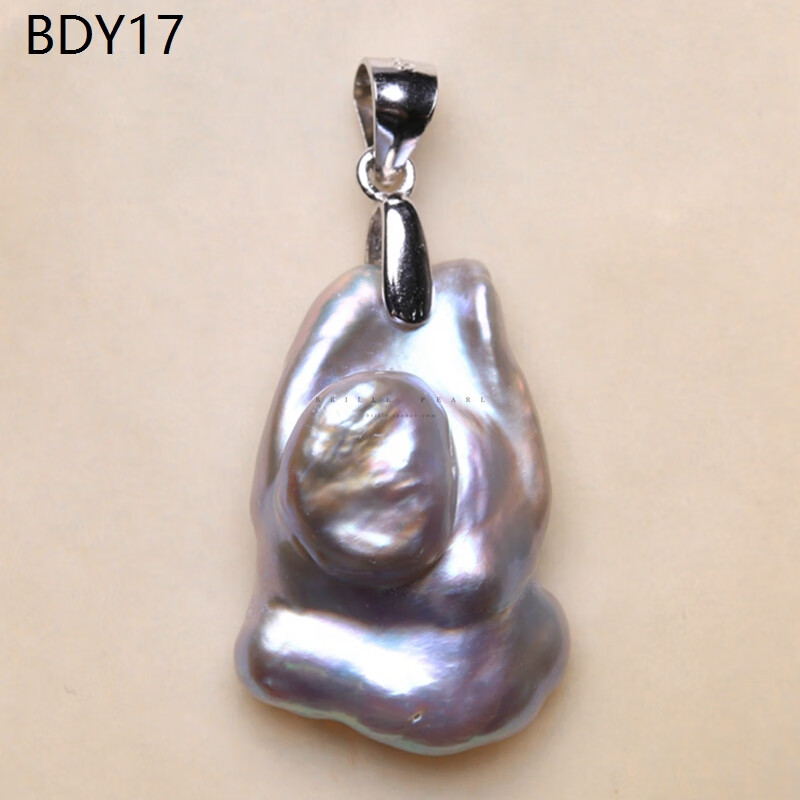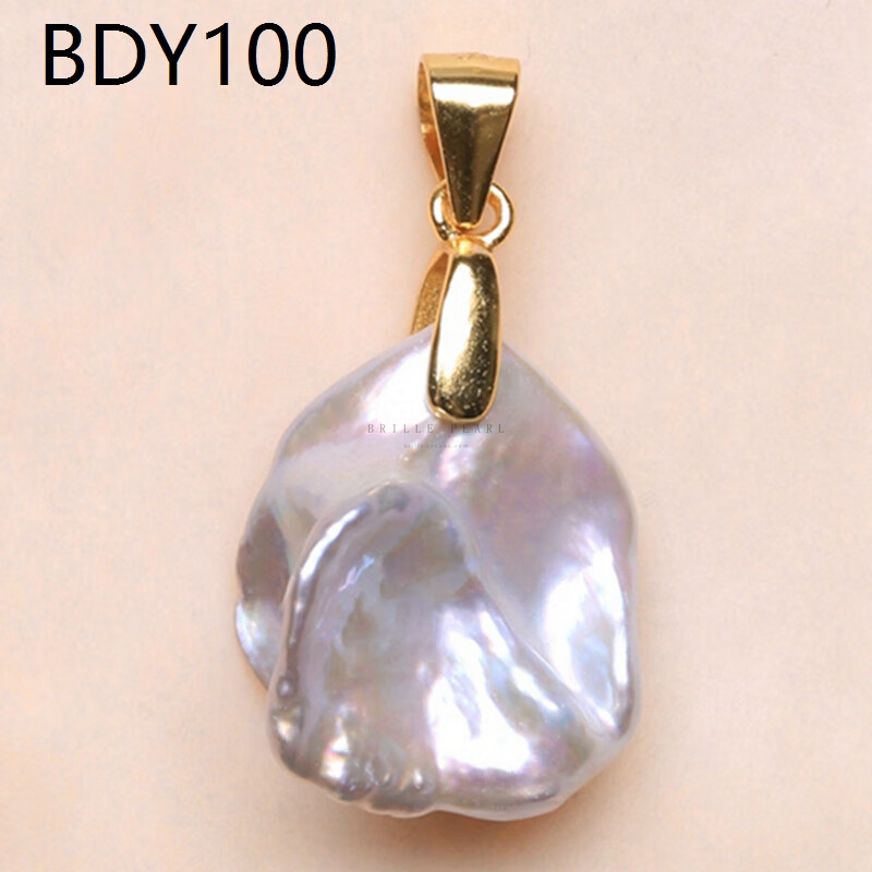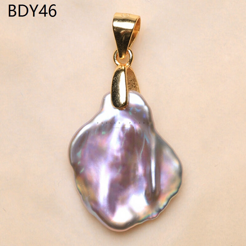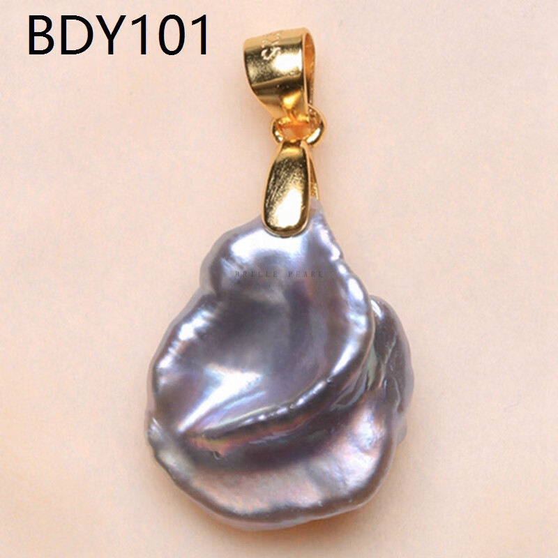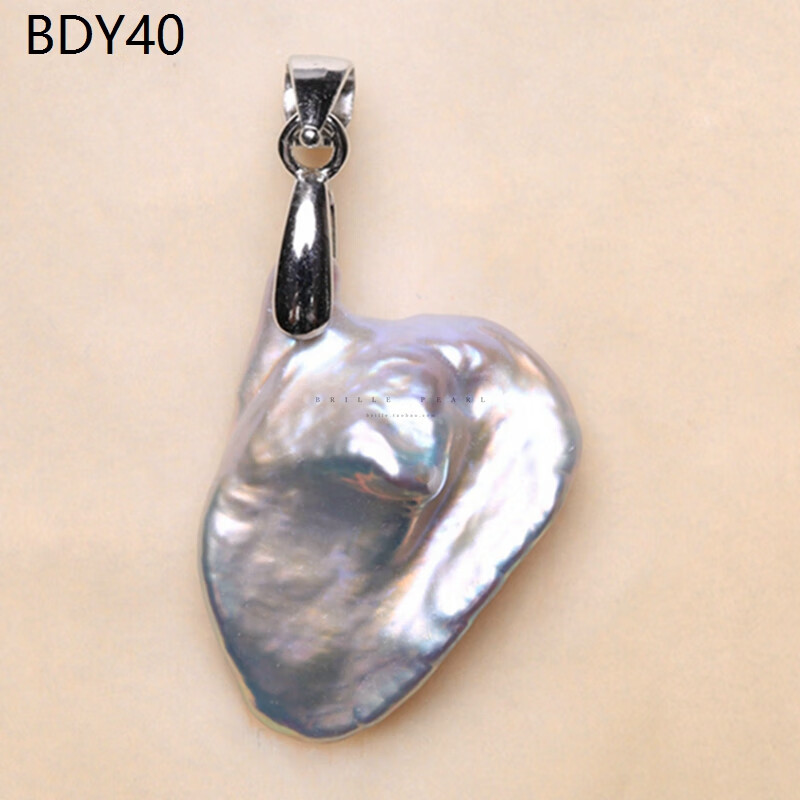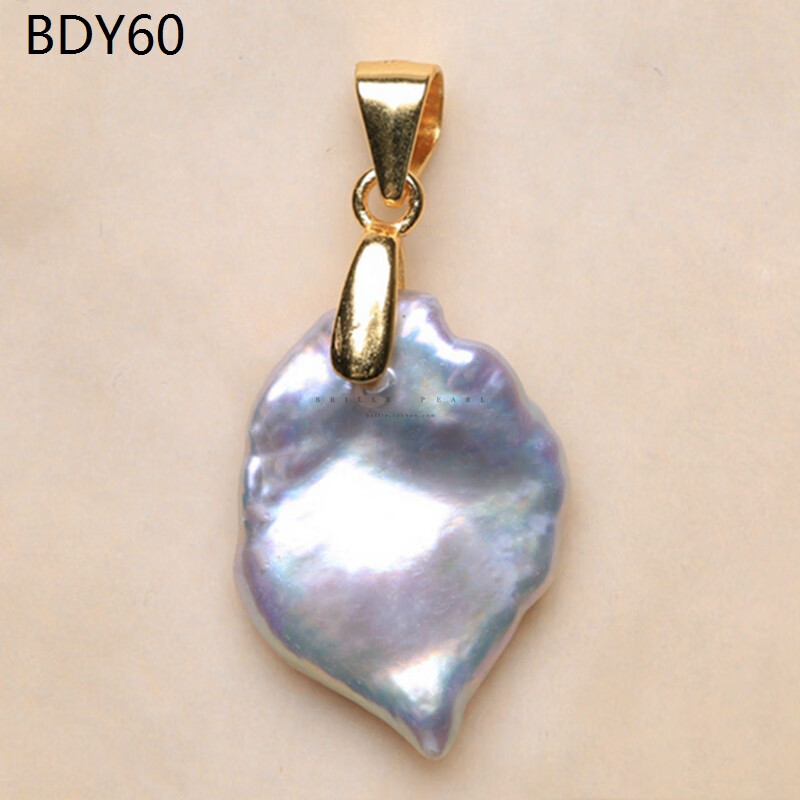 Ji Ge Freshwater Baroque Special Shaped Pearl Aurora True Duo Ma Gray Petal Shape Pearl S925 Silver Necklace Pendant White BDY2