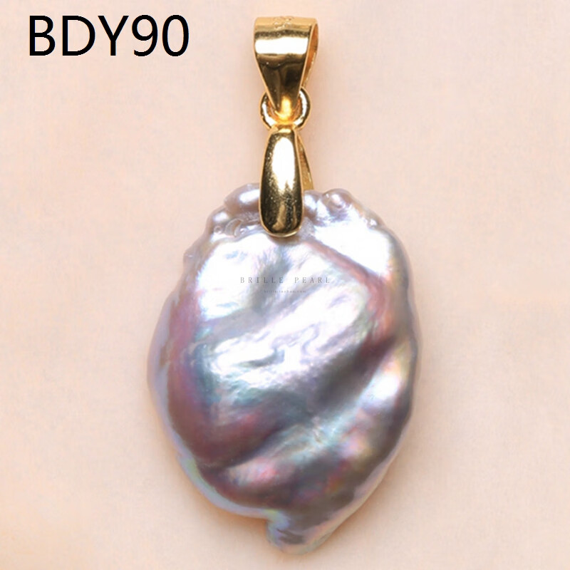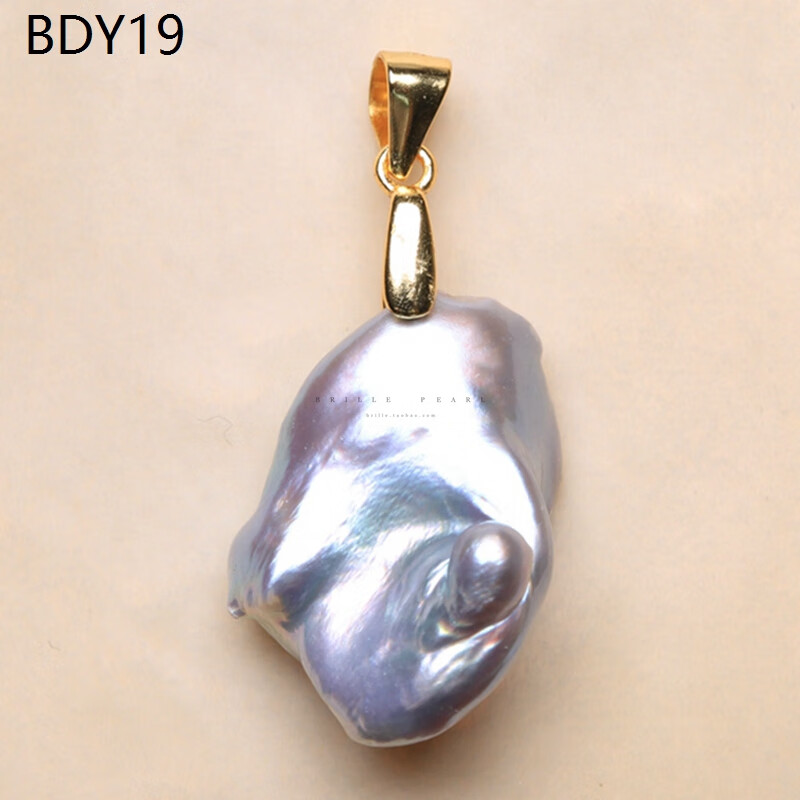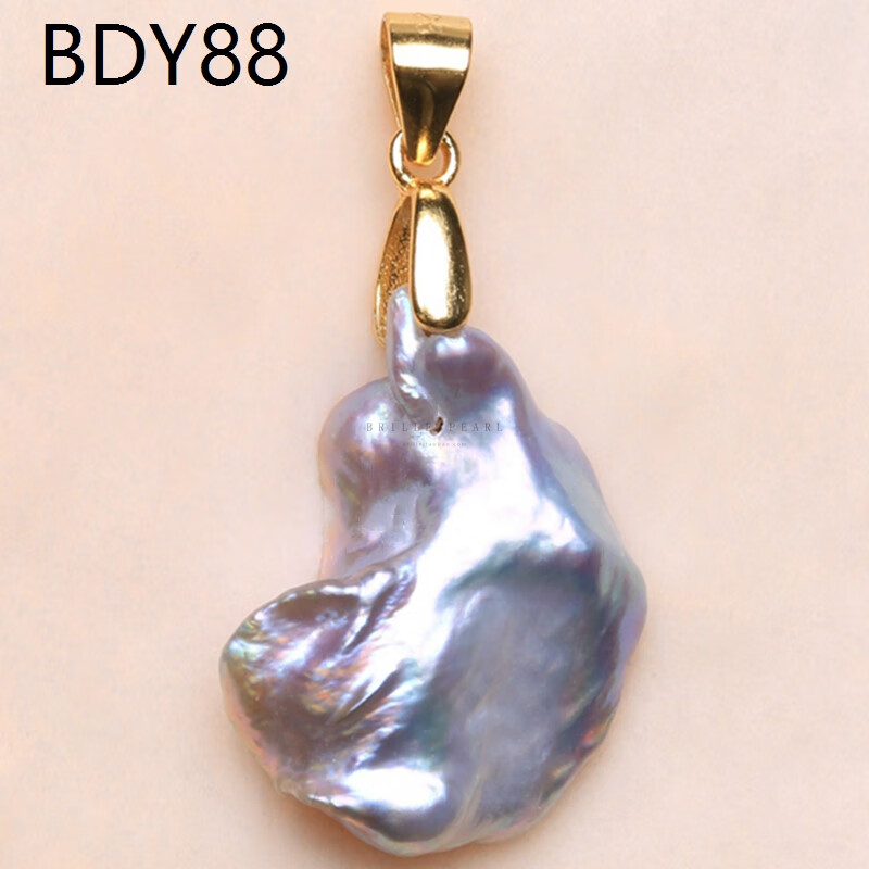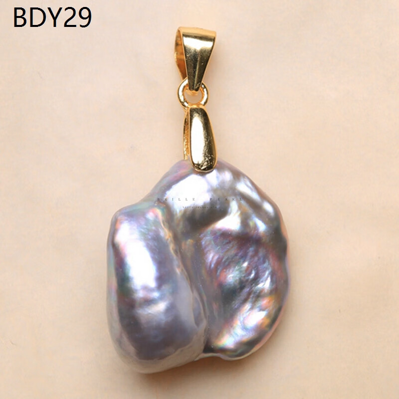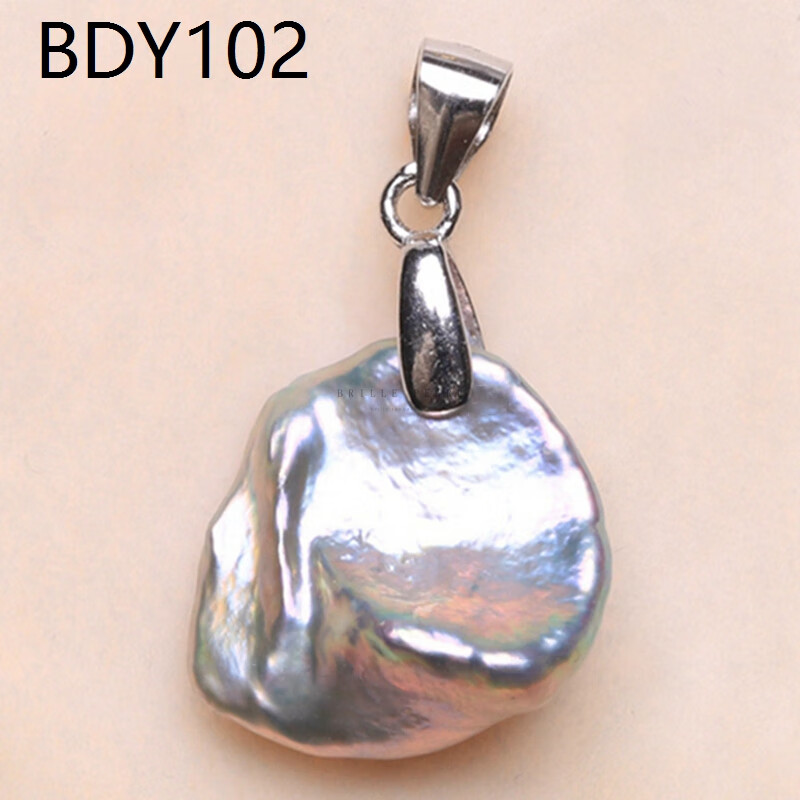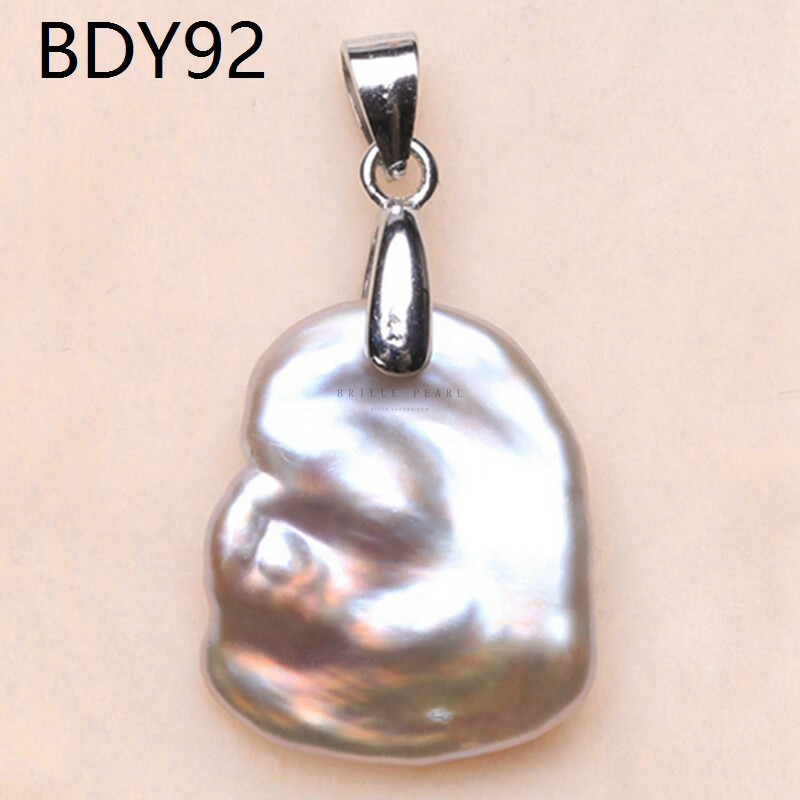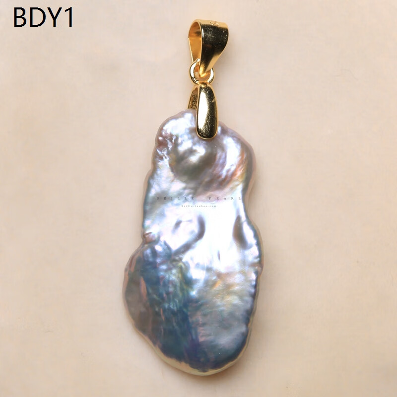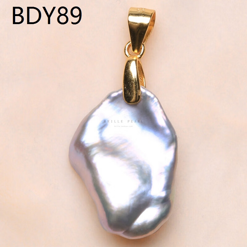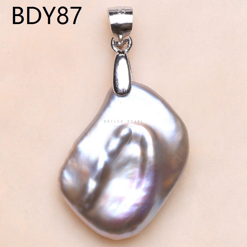 Ji Ge Freshwater Baroque Special Shaped Pearl Aurora True Duo Ma Gray Petal Shape Pearl S925 Silver Necklace Pendant White BDY2