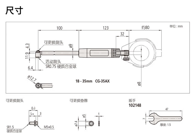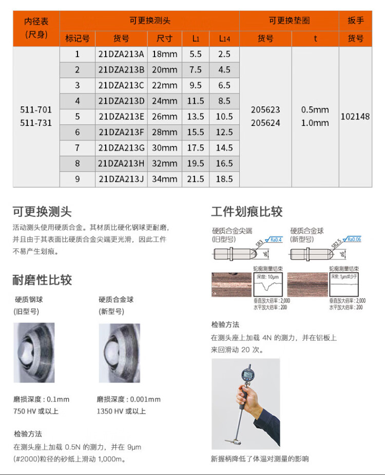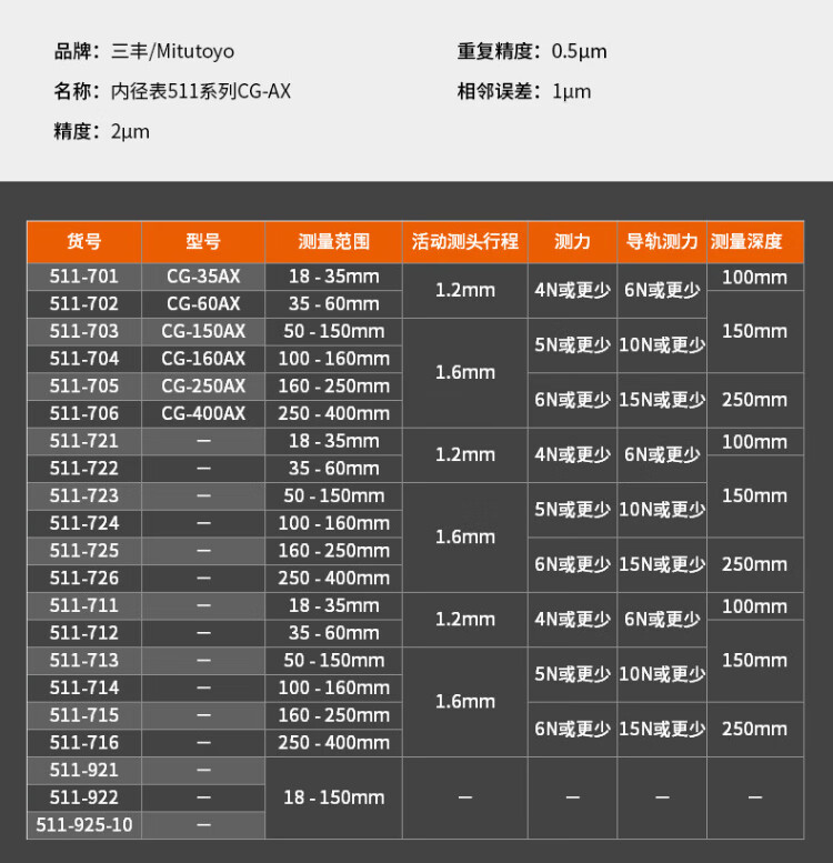Mitutoyo inner diameter dial indicator high-precision inner diameter gauge cylinder rocker meter imported from Japan 511-722-20/35-60/0.001mm