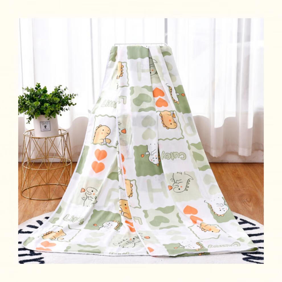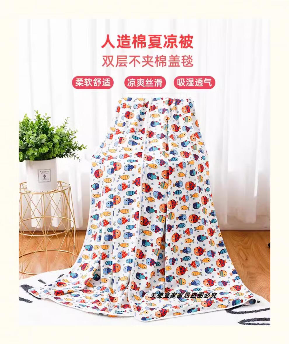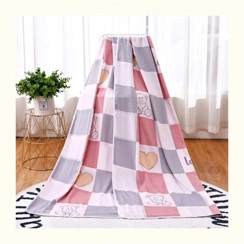 Cotton silk artificial cotton double layer blanket for children and infants summer thin cover single quilt double-sided cotton silk summer cool quilt Blossoming pink 110*140cm (double layer single cover)