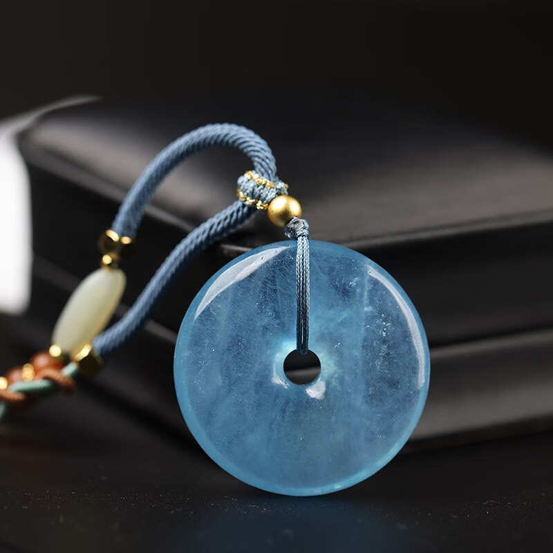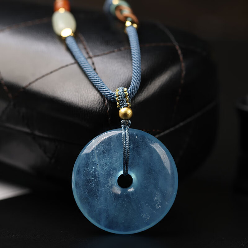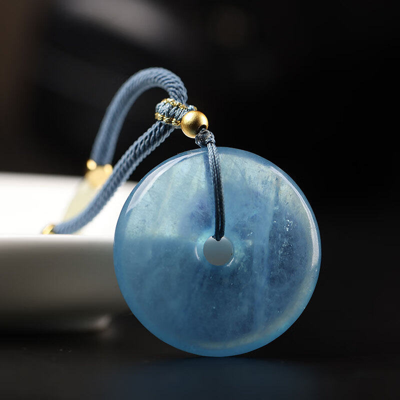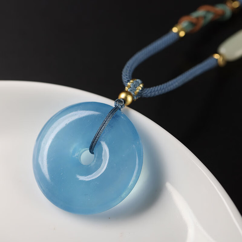 An Feng ice species aquamarine necklace safety buckle pendant blue crystal necklace clavicle chain mascot birthday gift collection super ice blue number 23197045