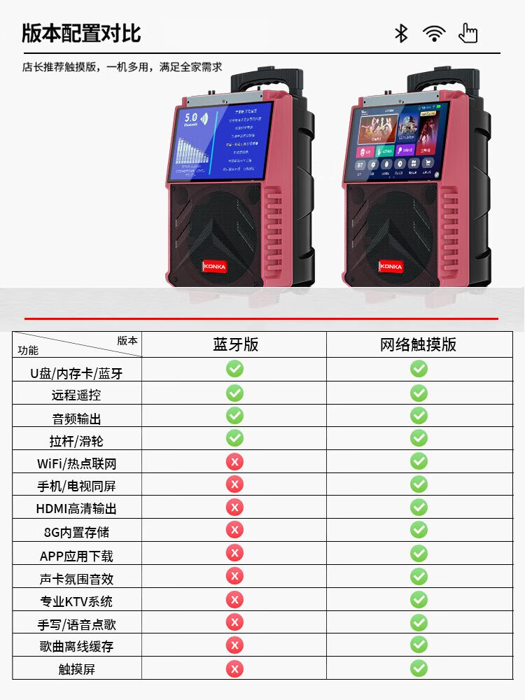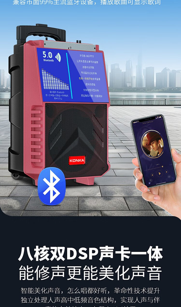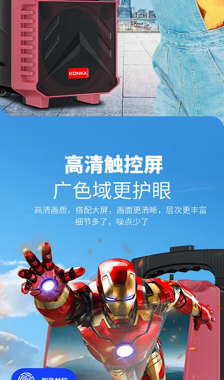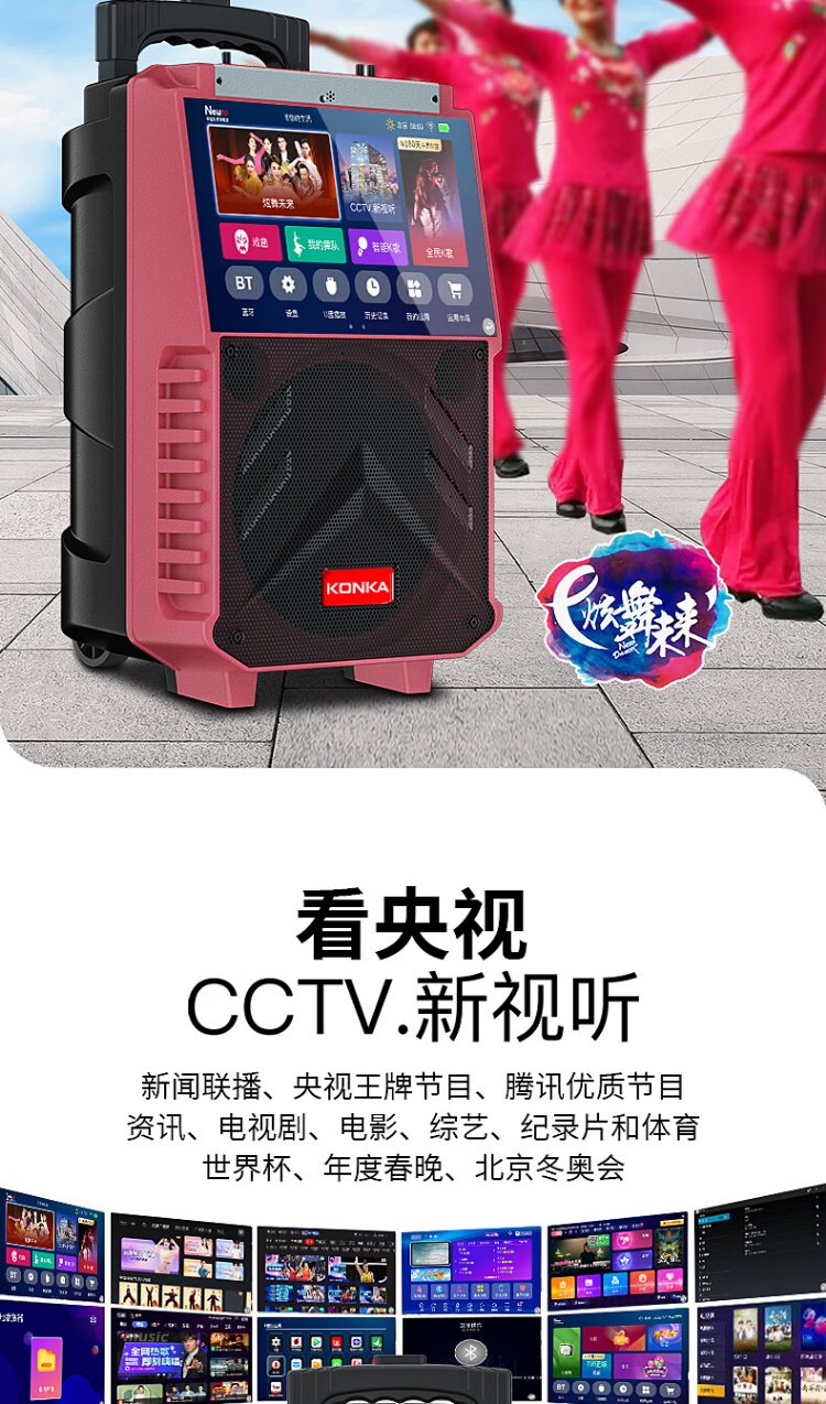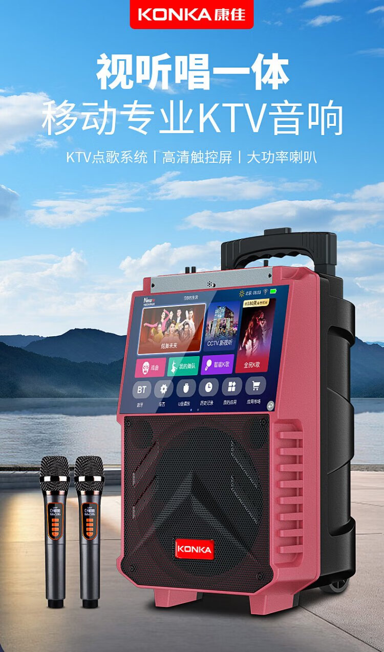 Konka square dance audio with display screen wireless microphone home ktv singing karaoke karaoke machine touch all-in-one live video home Bluetooth outdoor trolley speaker touch version + 1 microphone
