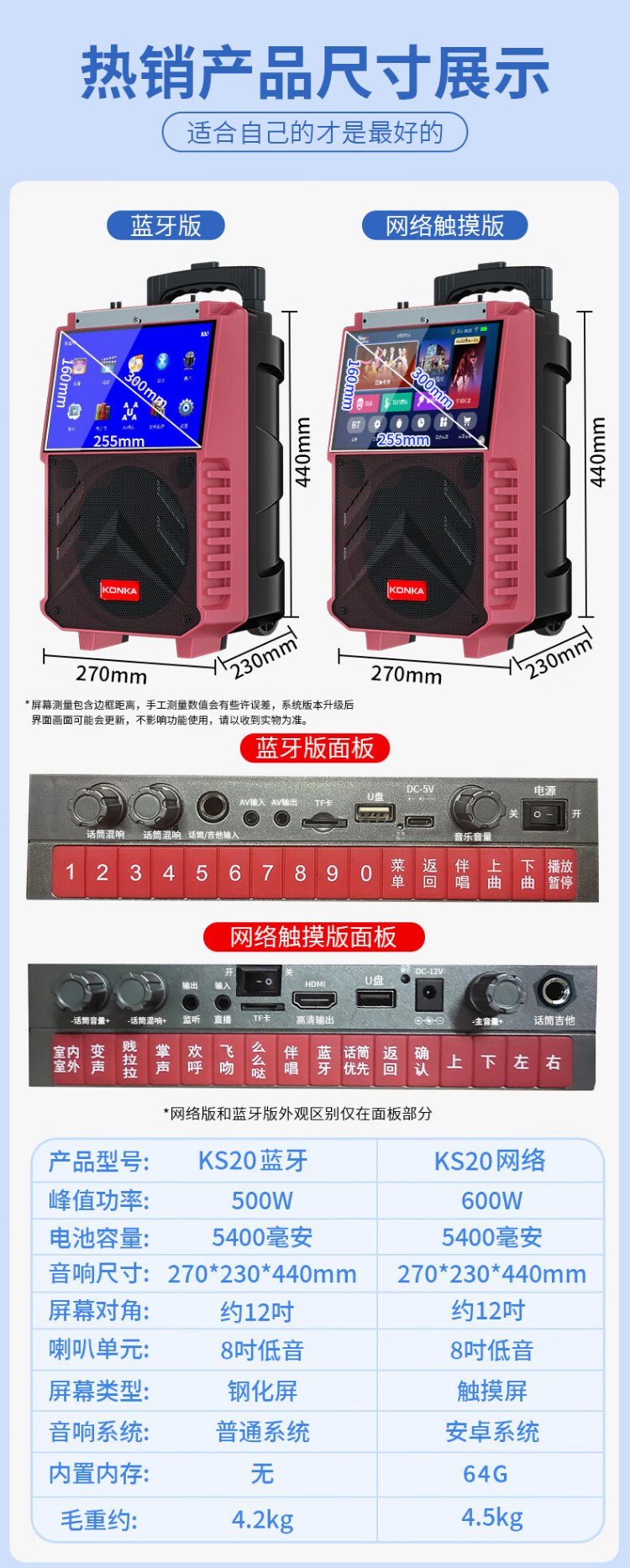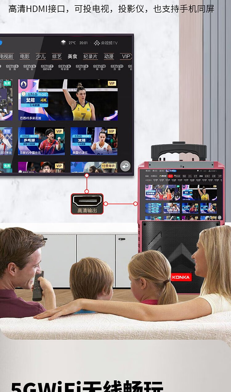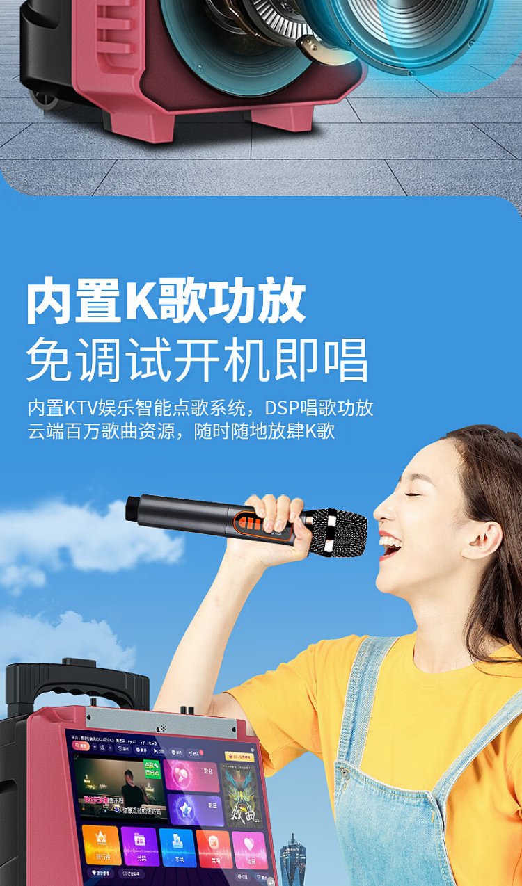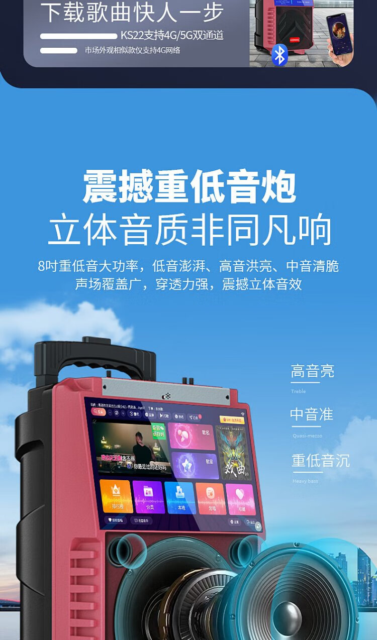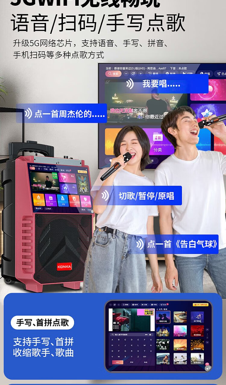 Konka square dance audio with display screen wireless microphone home ktv singing karaoke karaoke machine touch all-in-one live video home Bluetooth outdoor trolley speaker touch version + 1 microphone