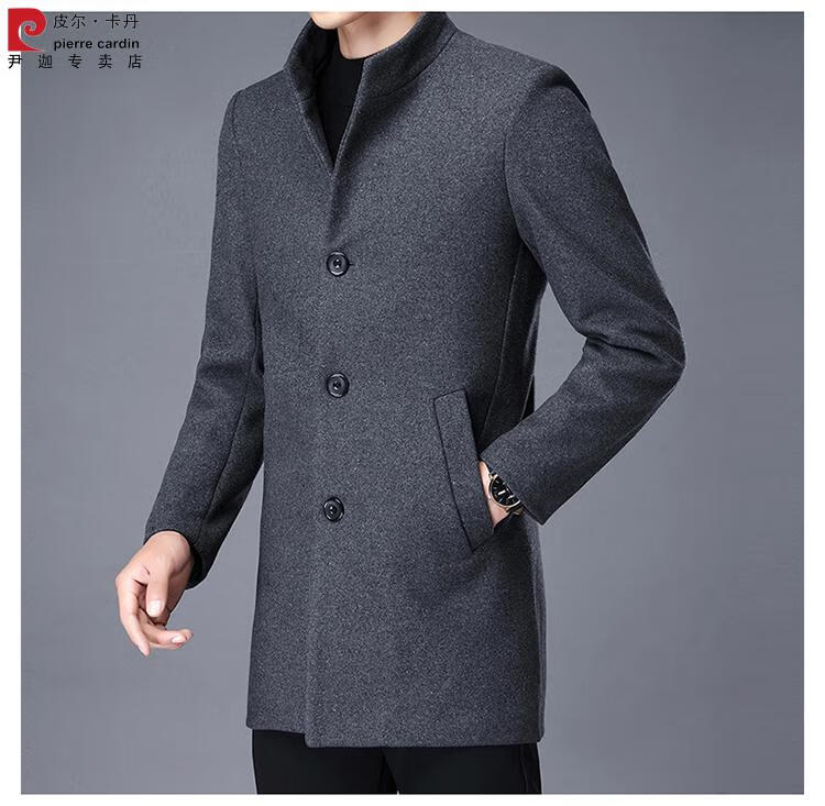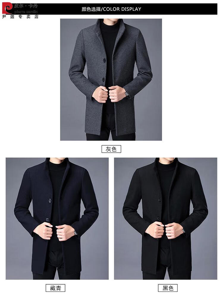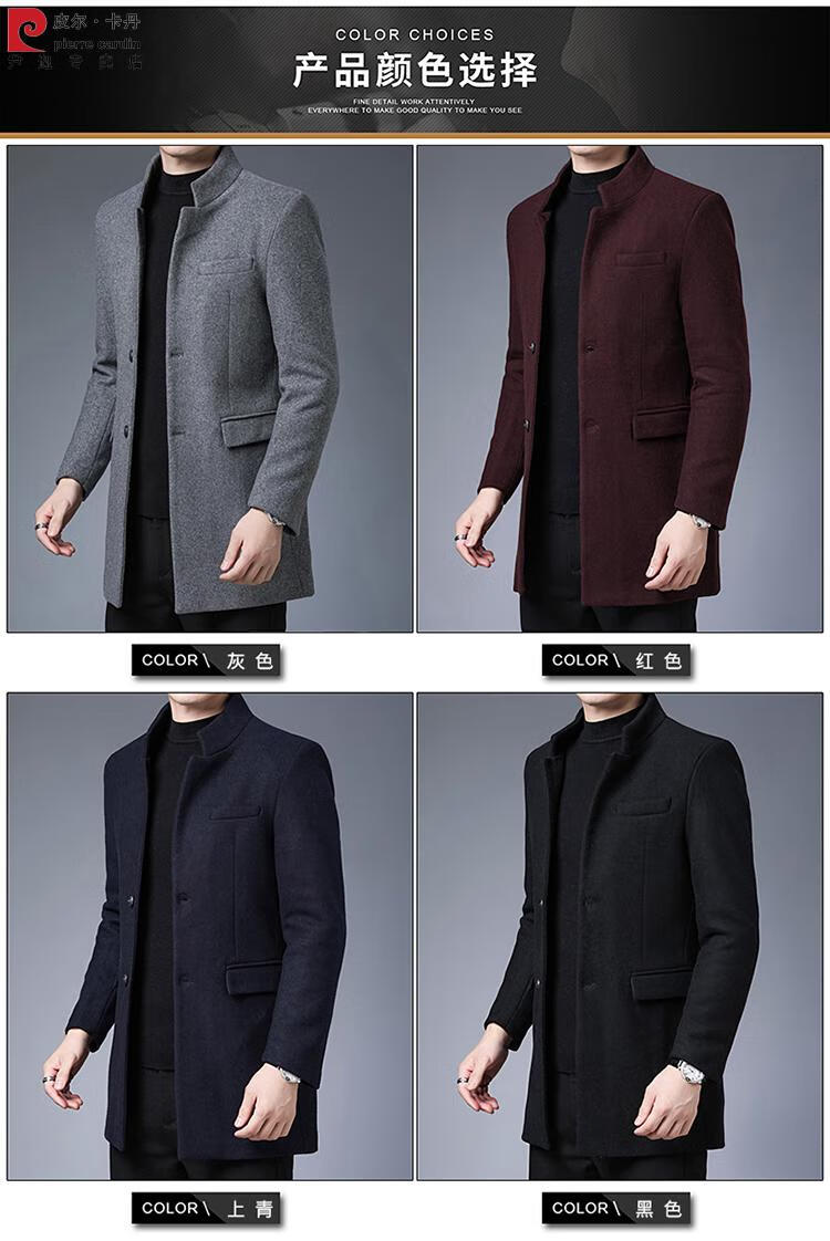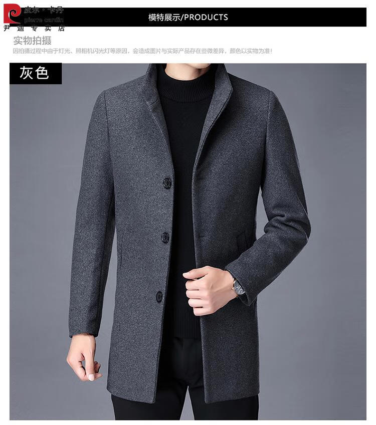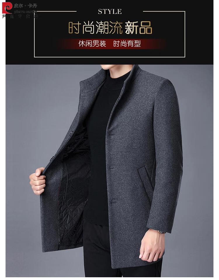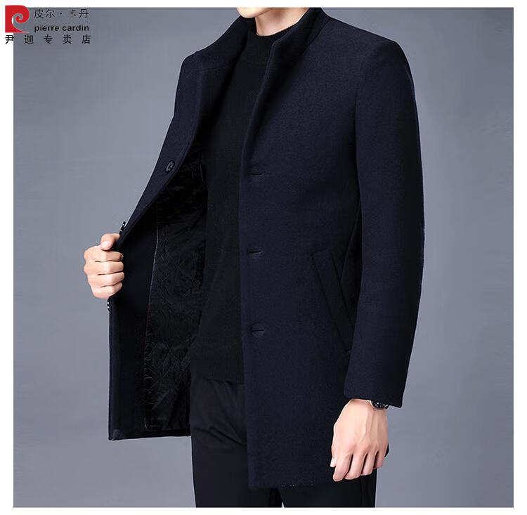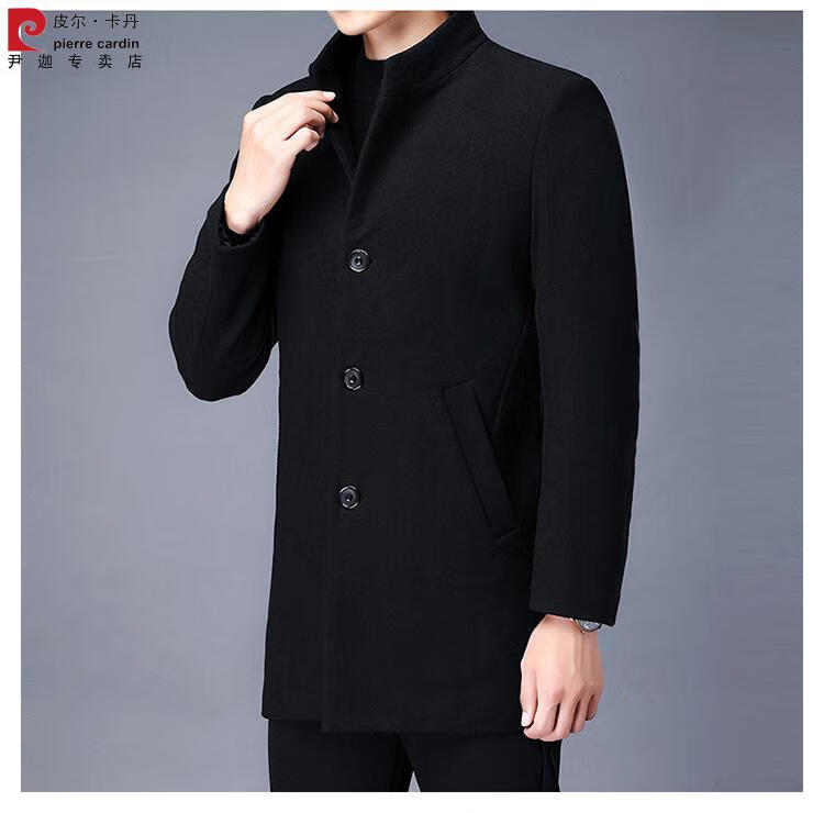 Pierre Cardin high-end men's woolen coat men's winter thickened mid-length wool windbreaker casual solid color woolen coat M921 black 4XL 195/112A (recommended 180-195Jin Jin equals 0.5 kg)