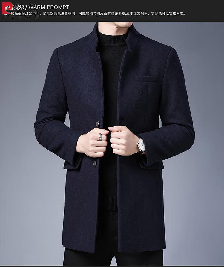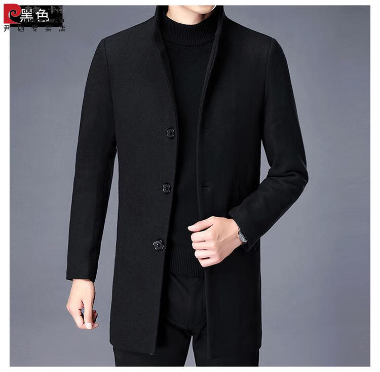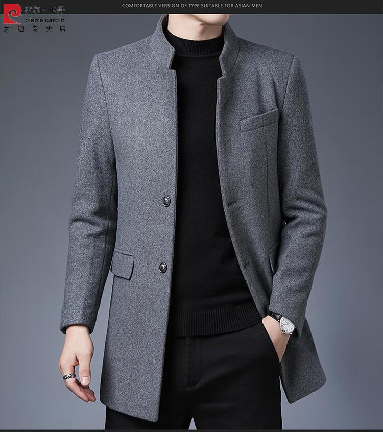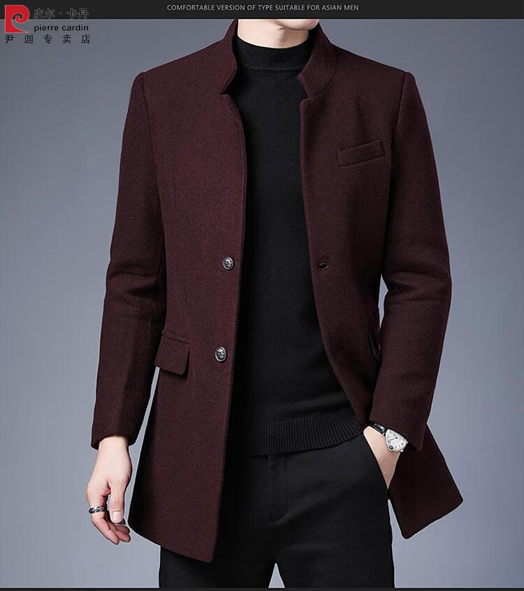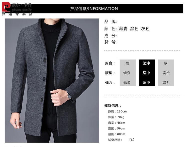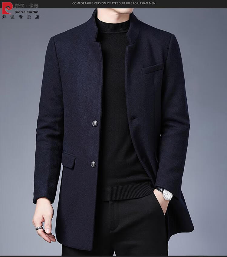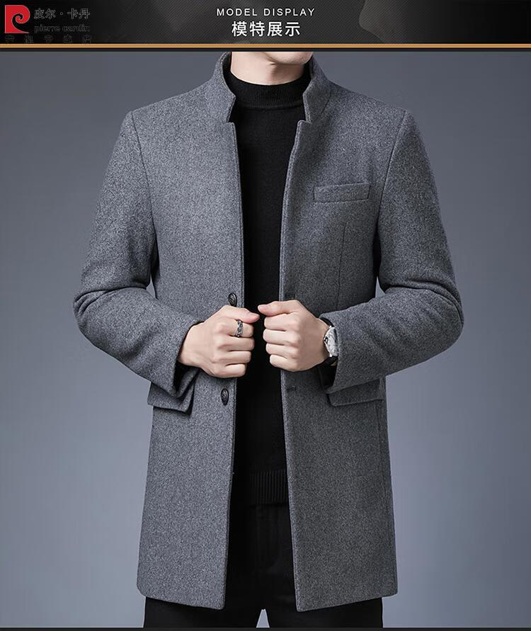 Pierre Cardin high-end men's woolen coat men's winter thickened mid-length wool windbreaker casual solid color woolen coat M921 black 4XL 195/112A (recommended 180-195Jin Jin equals 0.5 kg)