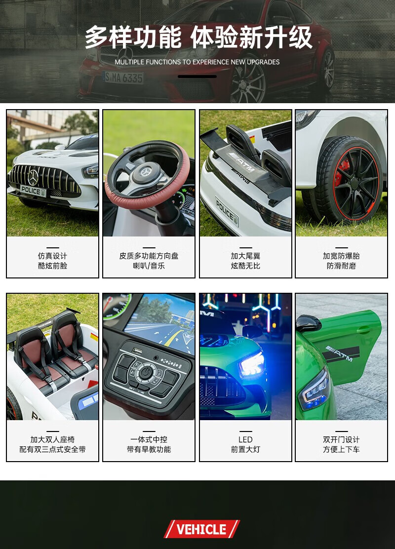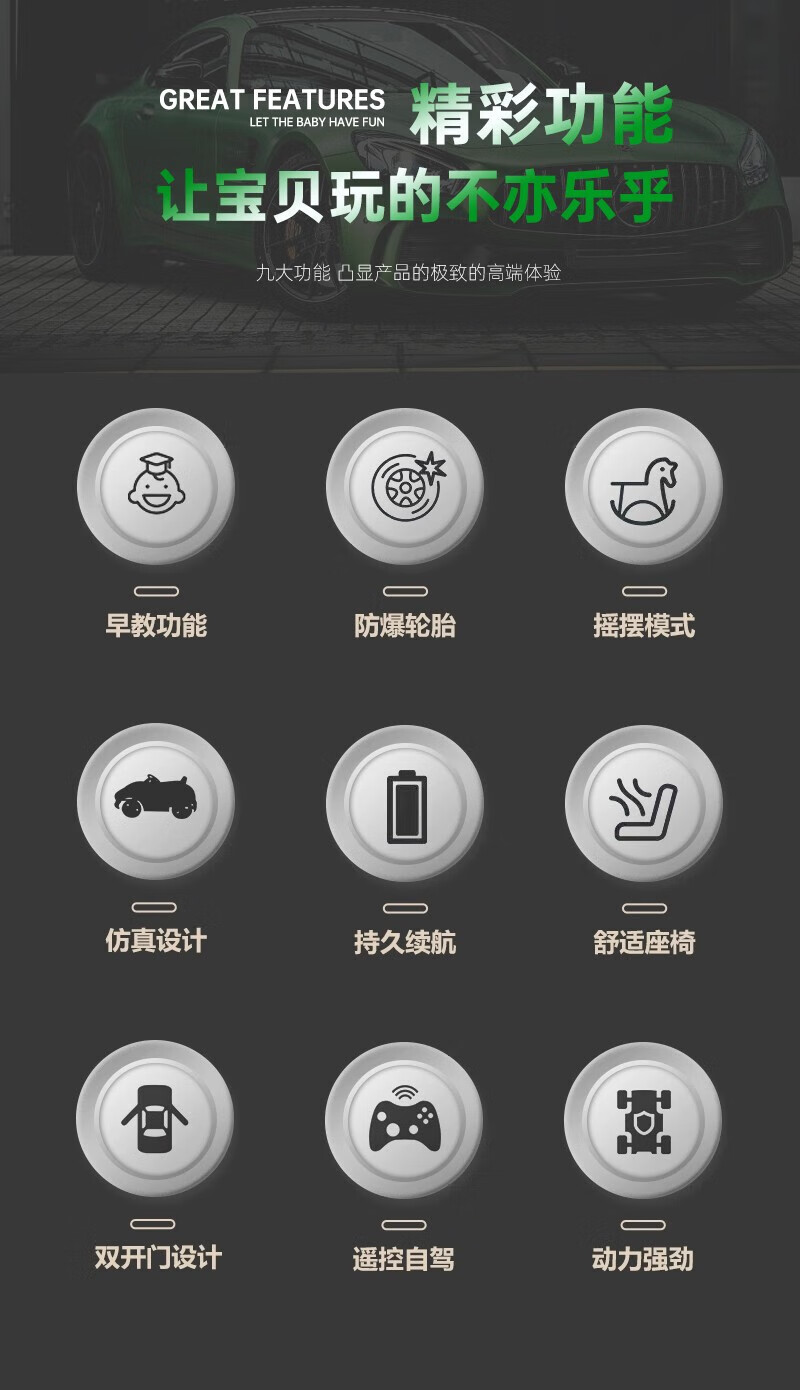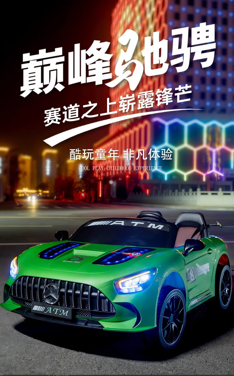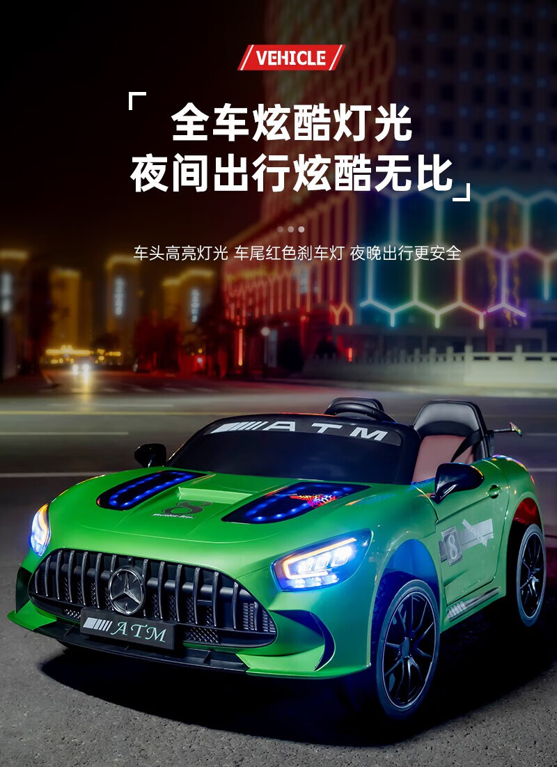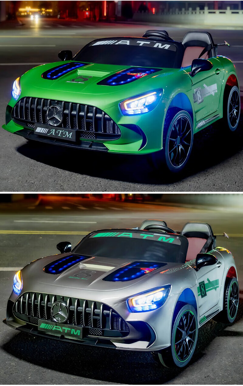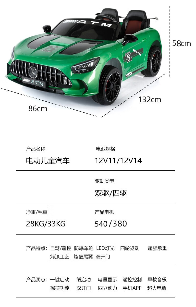 WORK BABY Mercedes-Benz children's electric car four-wheel remote control seating double toy stroller children's New Year's birthday gift, painted green, early music education, mobile phone Bluetooth swing, four-wheel drive 12V11 Chaowei battery, leather seat, foam wheel
