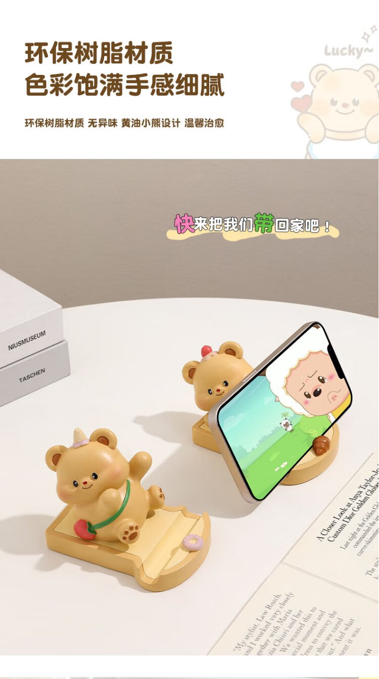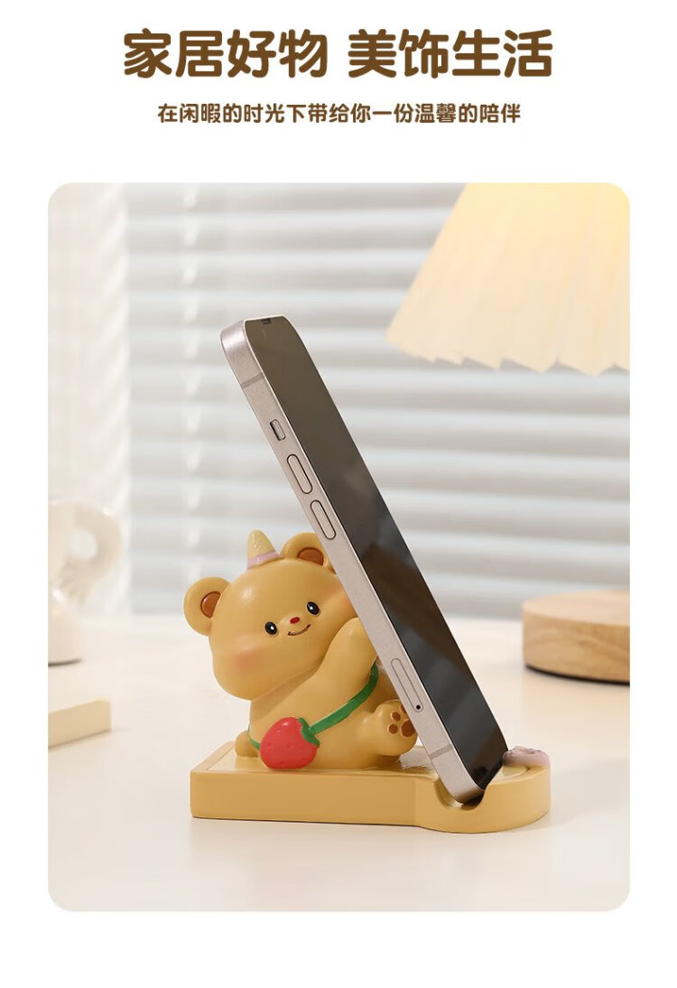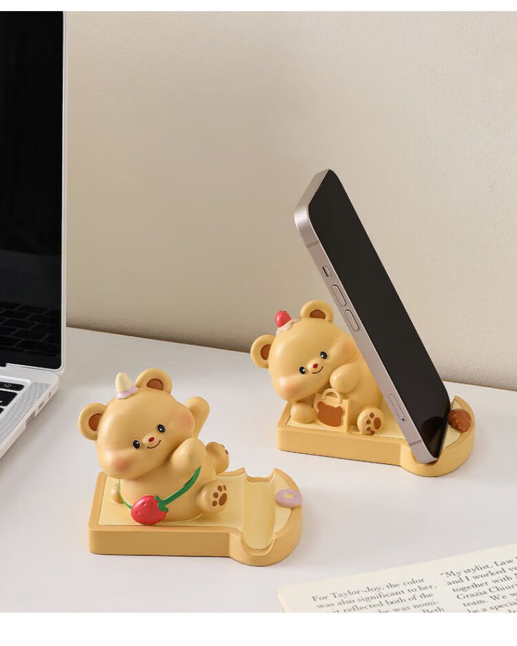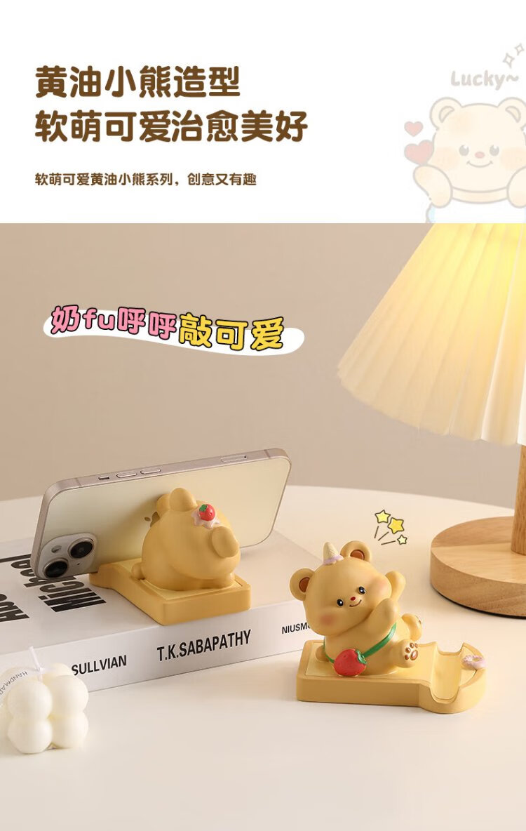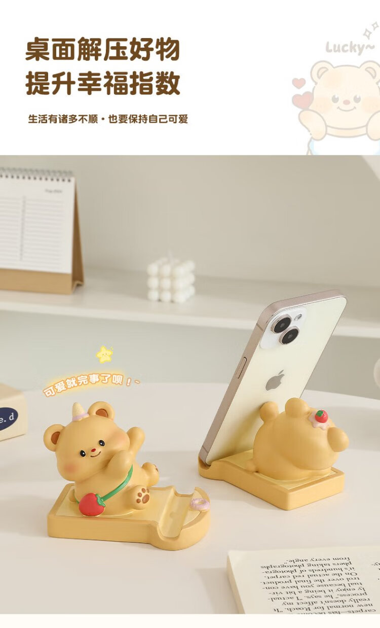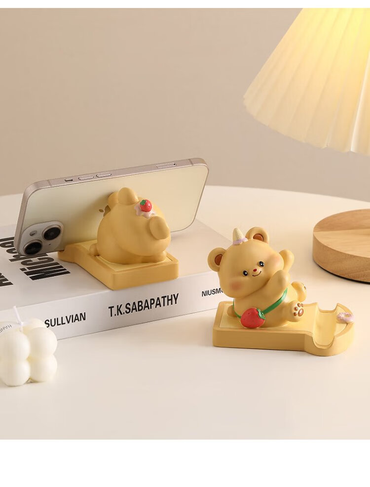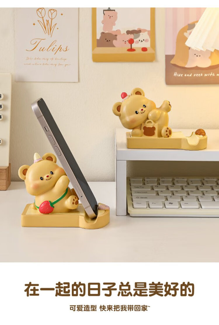 Wanjiazhen Butter Bear Mobile Phone Stand Cute and Creative Office Work Station Desktop Decoration Ornament Birthday Gift Butter Bear Stand Strawberry-Hug Style