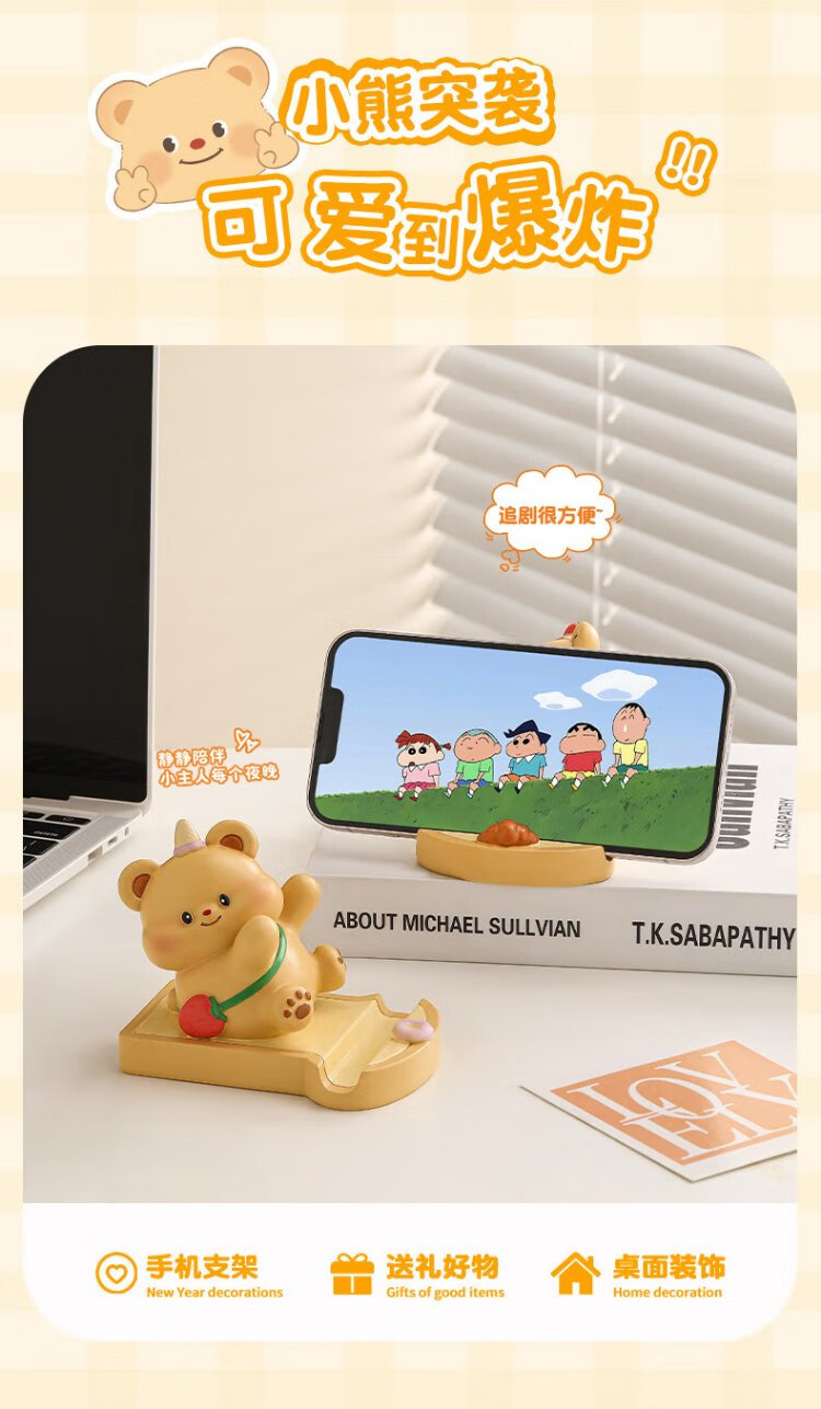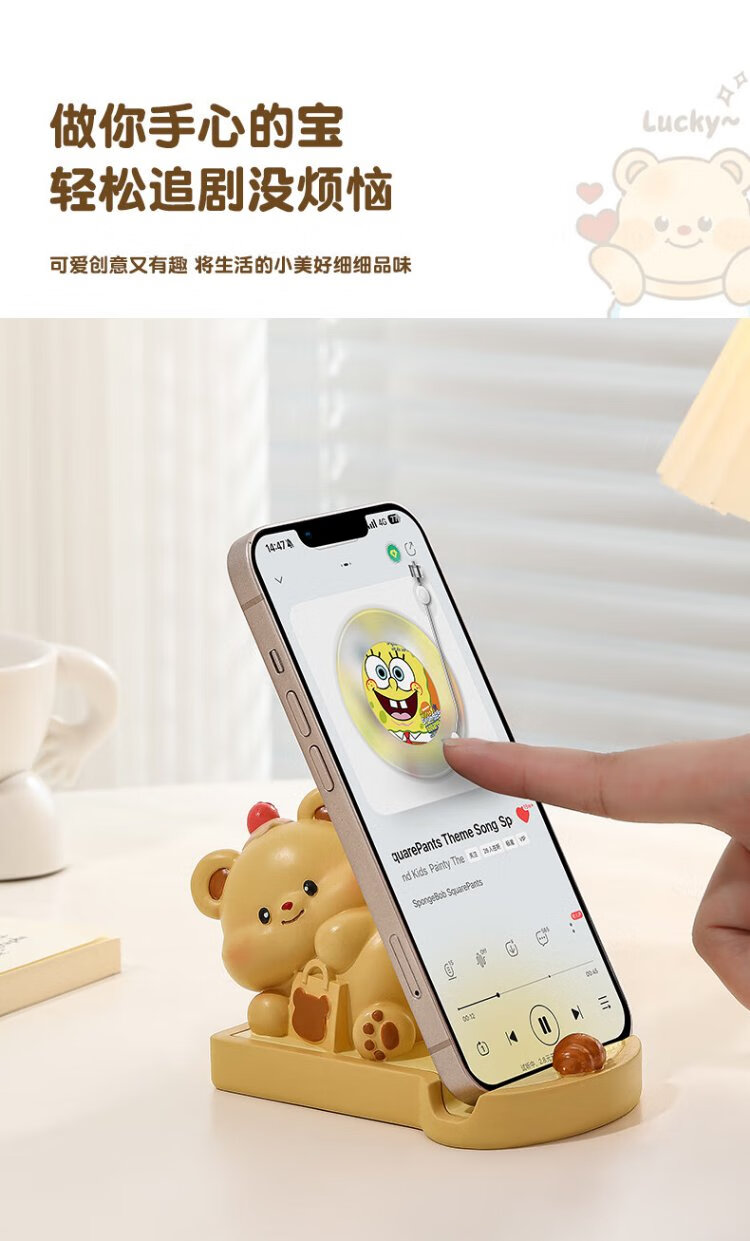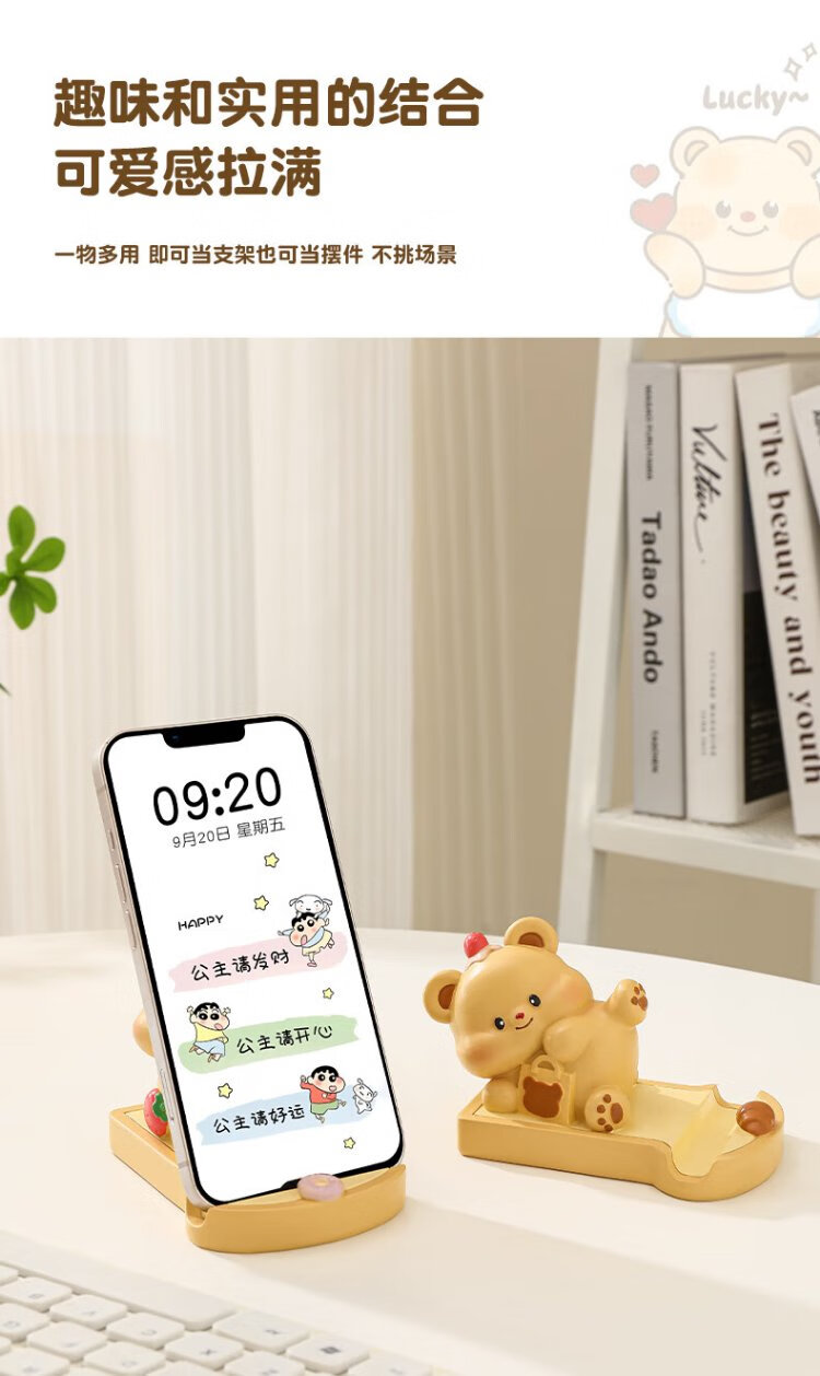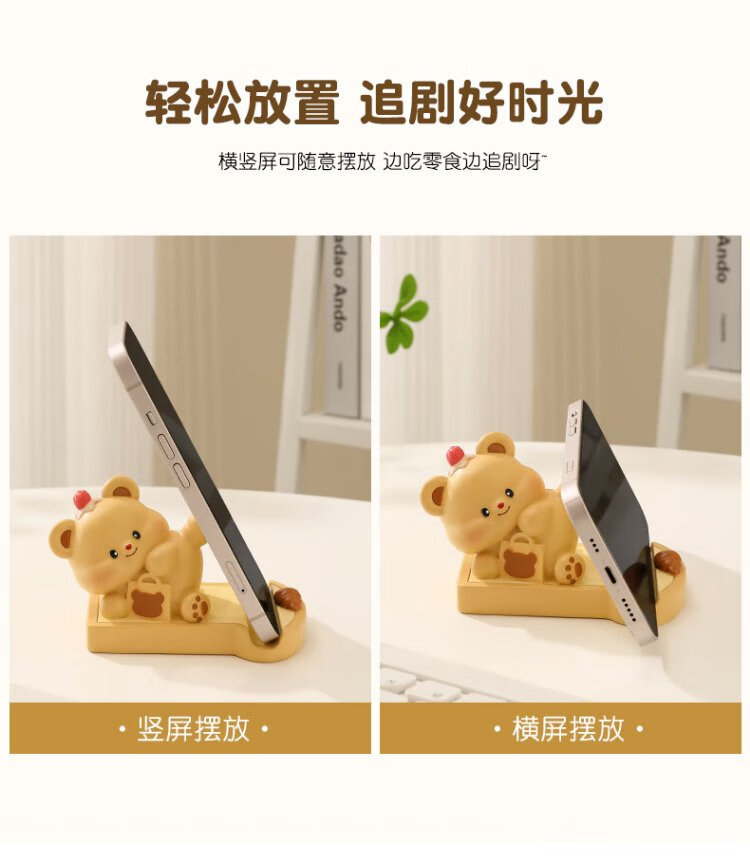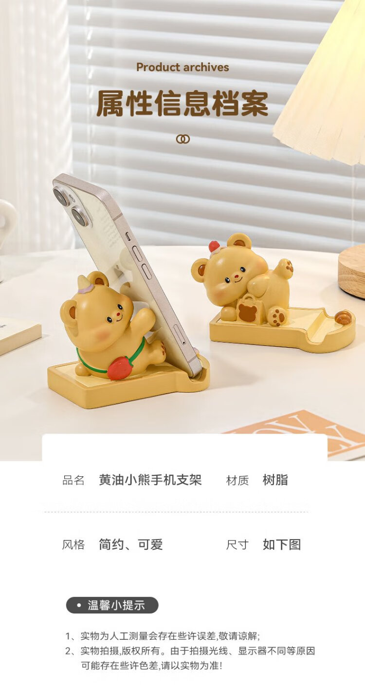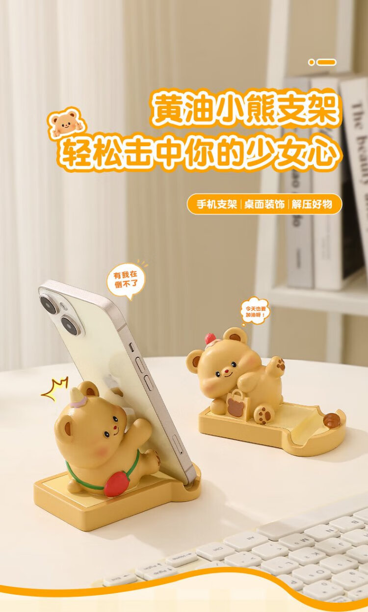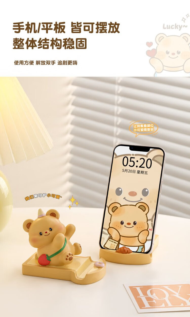 Wanjiazhen Butter Bear Mobile Phone Stand Cute and Creative Office Work Station Desktop Decoration Ornament Birthday Gift Butter Bear Stand Strawberry-Hug Style