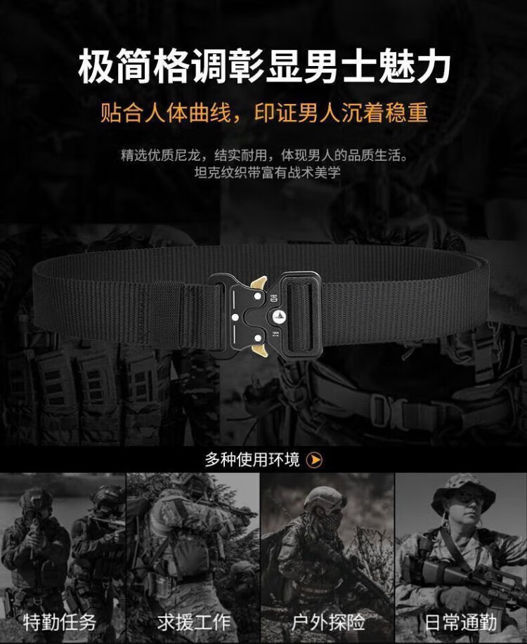 Wanjiazhen canvas belt men's automatic buckle tactical belt casual pants belt nylon woven belt alloy buckle military training belt black belt alloy buckle