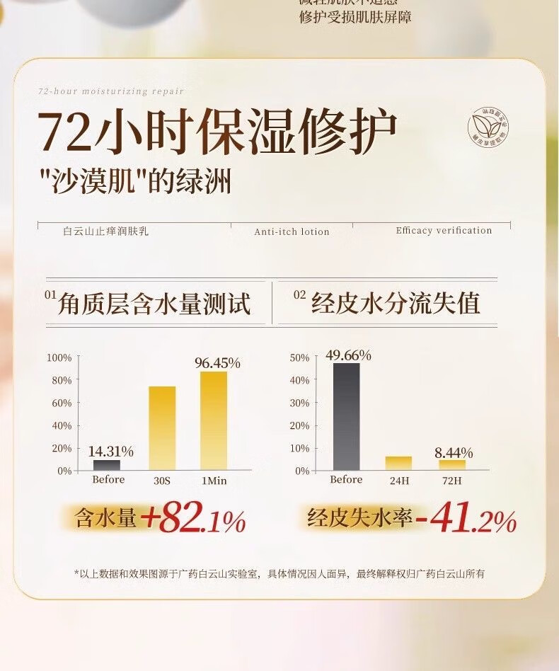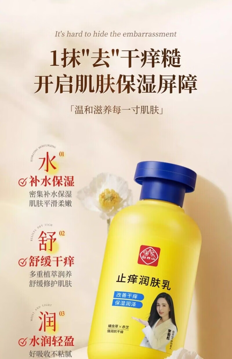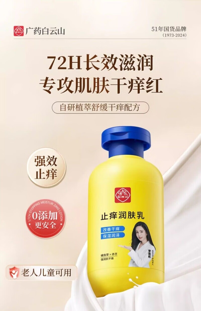Baiyunshan anti-itch moisturizing lotion whole body moisturizing cream for dry, itchy and peeling skin, hydrating and peeling, moisturizing and moisturizing, full size 200g, fake one, ten penalty, anti-itch moisturizing lotion * 1 bottle, trial pack