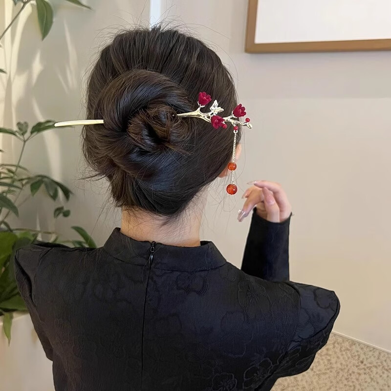 QBILY rose hairpin 2 pieces, tassel hairpin for women, new Chinese style hairpin, Hanfu hairpin, horse face skirt headdress, twin roses + hollow butterfly tassel hairpin