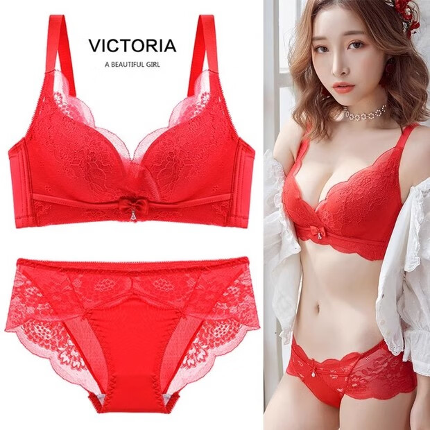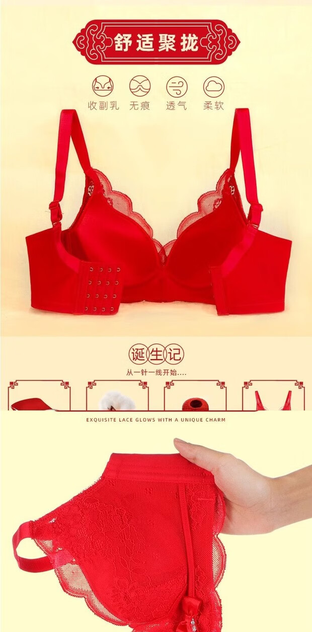 Victoria Palace Animal Year Bra Big Red Underwear Panties Bra Set No Wires Push-up Bra Sexy Lace Bra Big Red 80B 36B Set