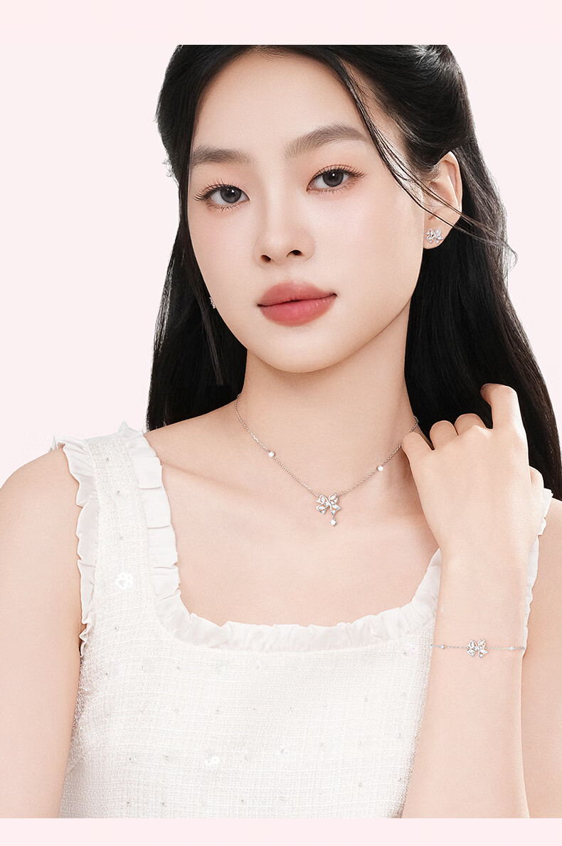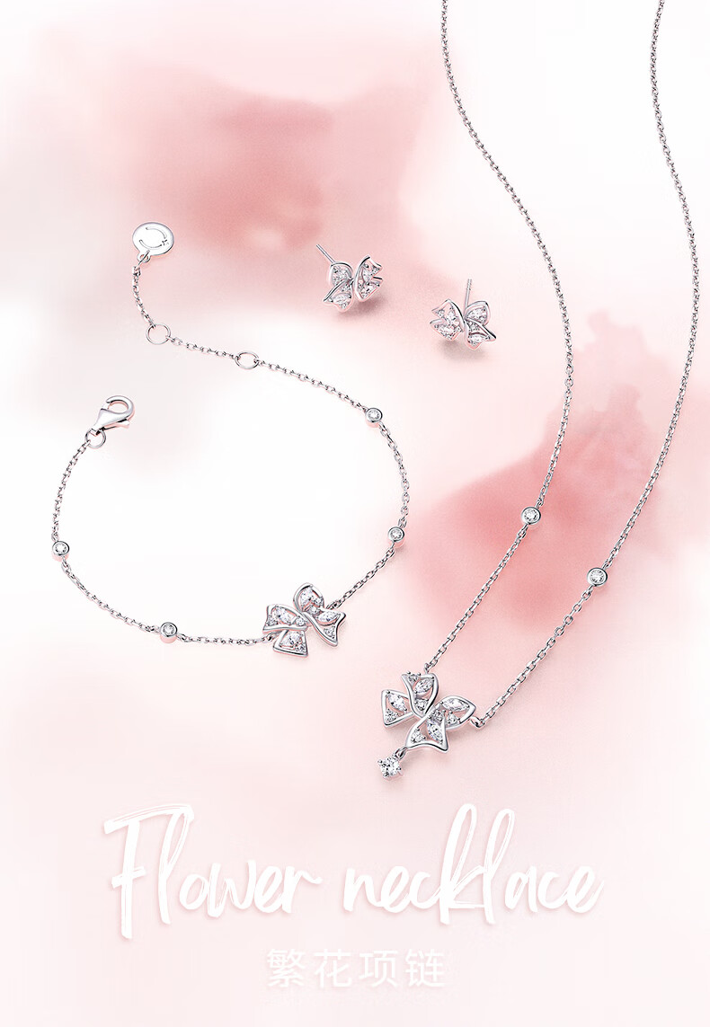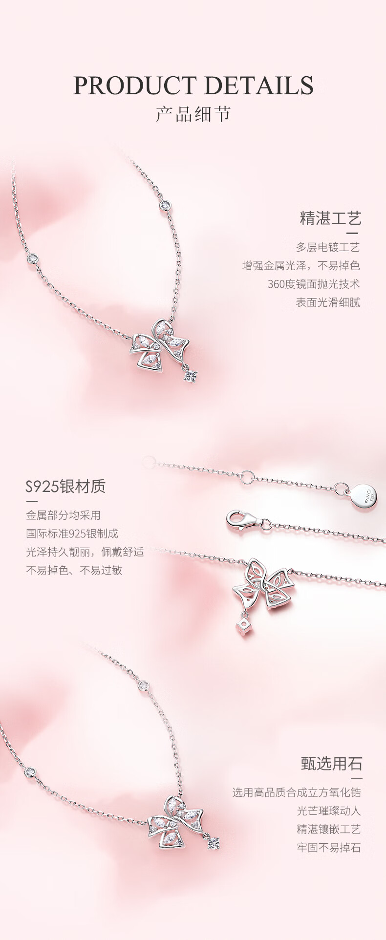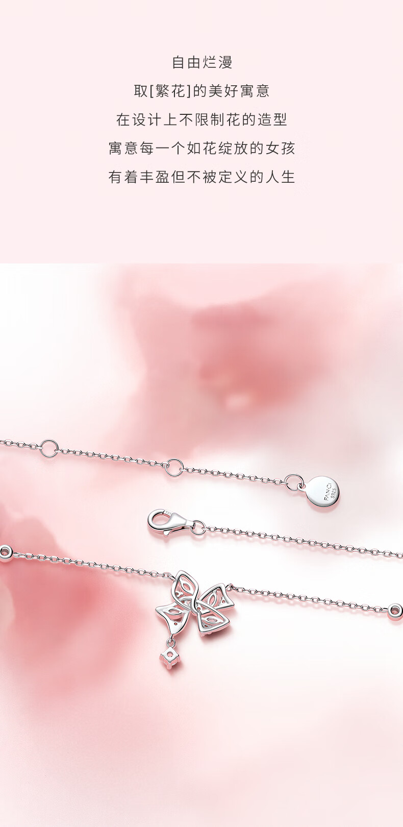 Fanci Fan Qi Flower Necklace Silver Bow Birthday Light Luxury High-end Gift for Girlfriend Flower Necklace