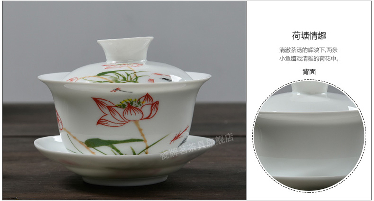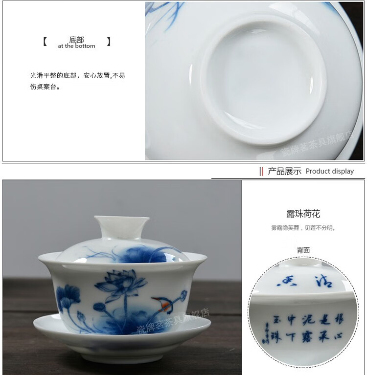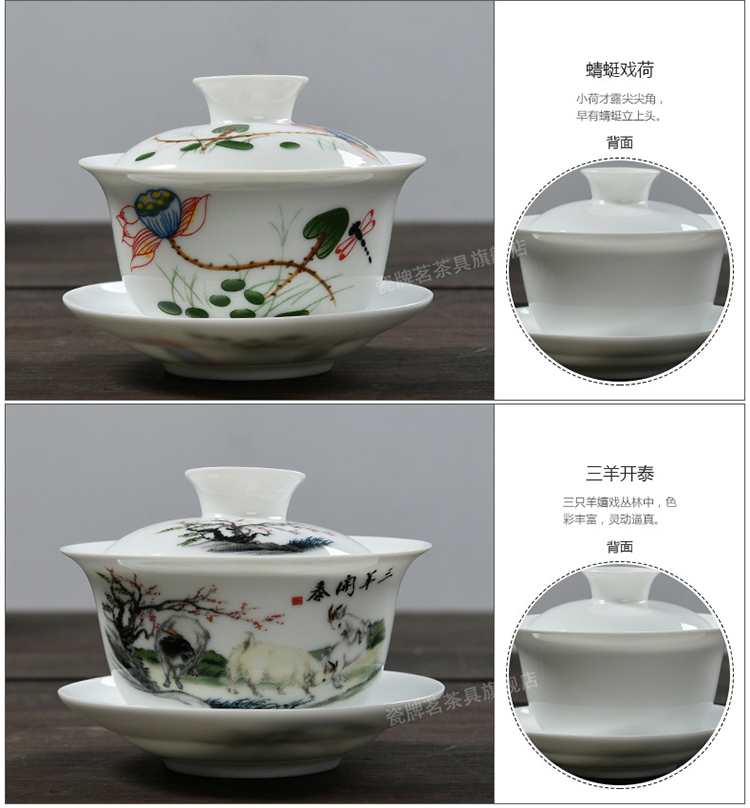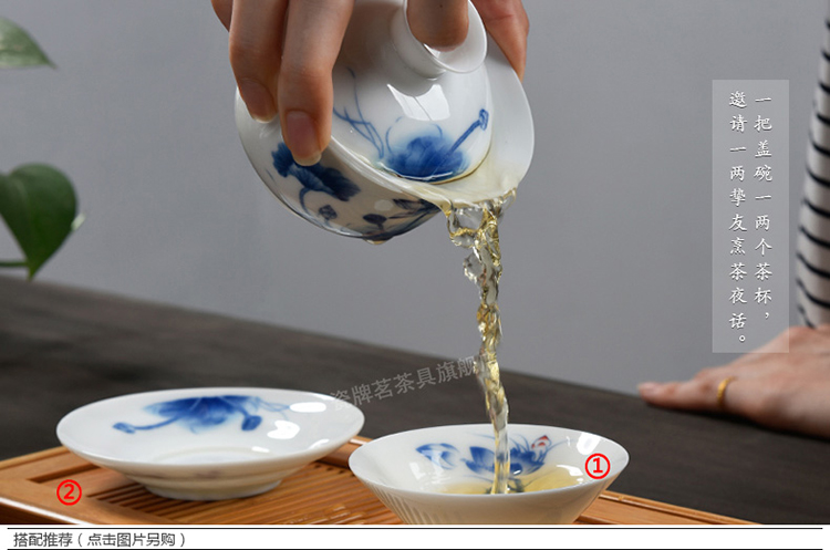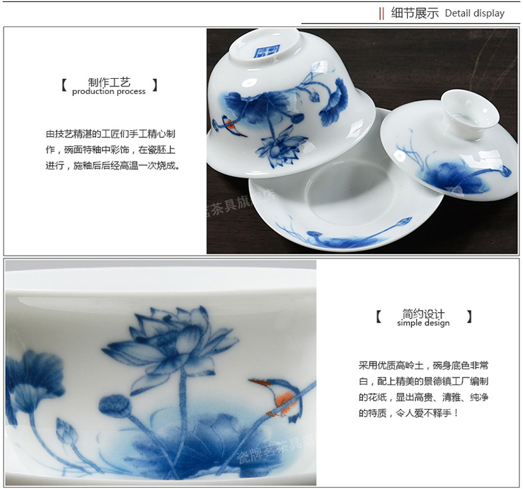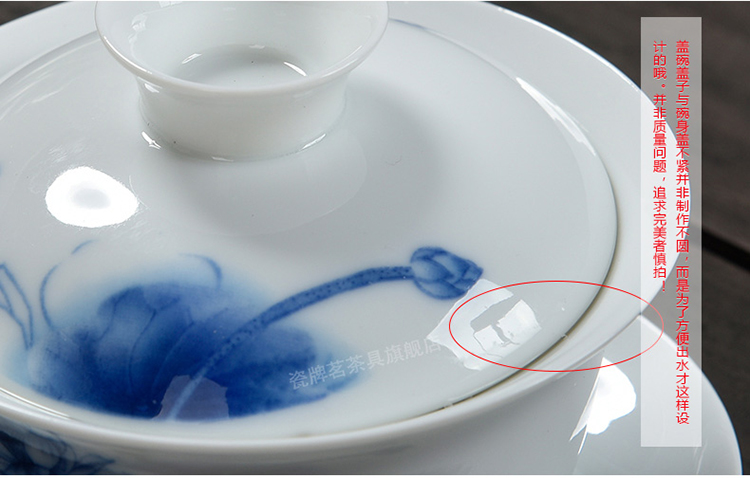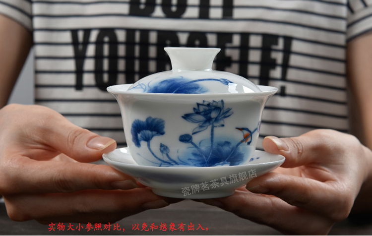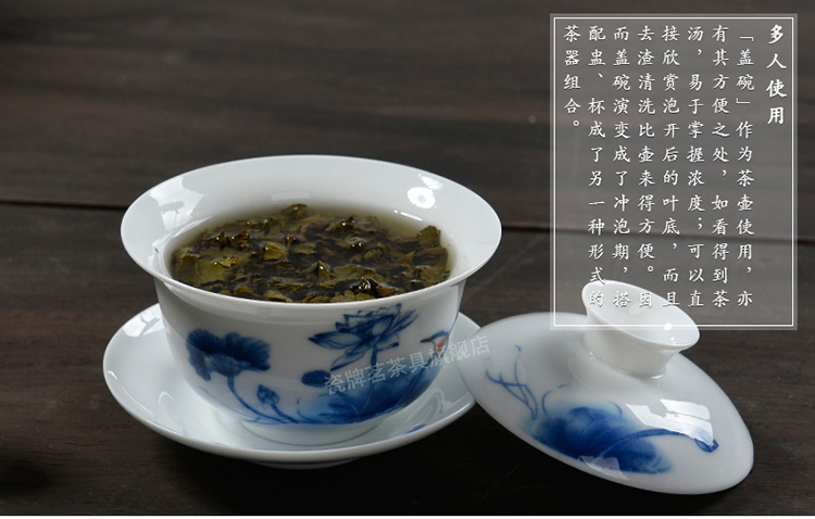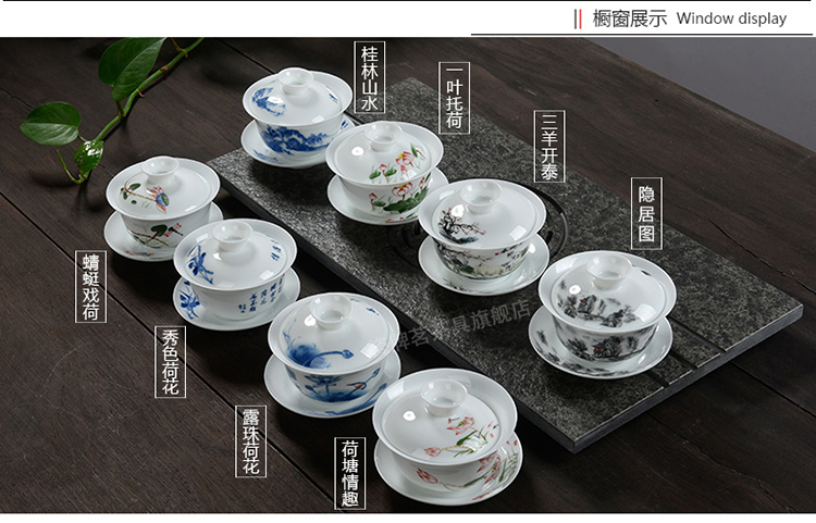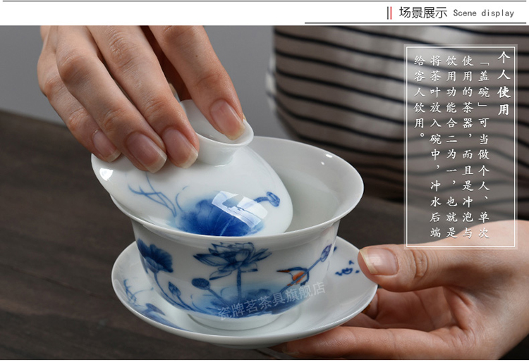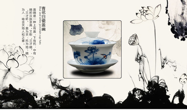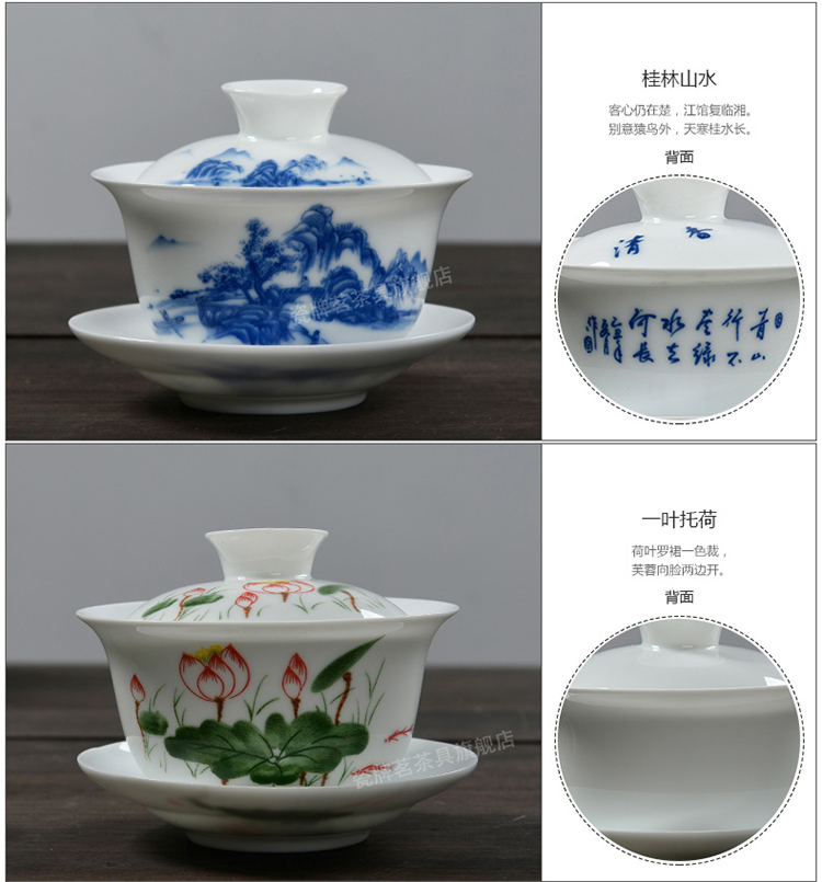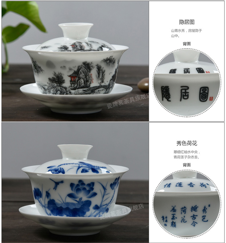 Porcelain brand tea set, large tureen, blue and white ceramic tureen, flower tea cup, white porcelain Sancai bowl, toast tea bowl, Kungfu tea set, ink distant mountains, tureen