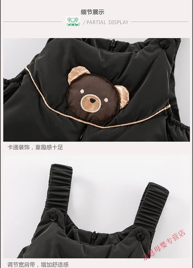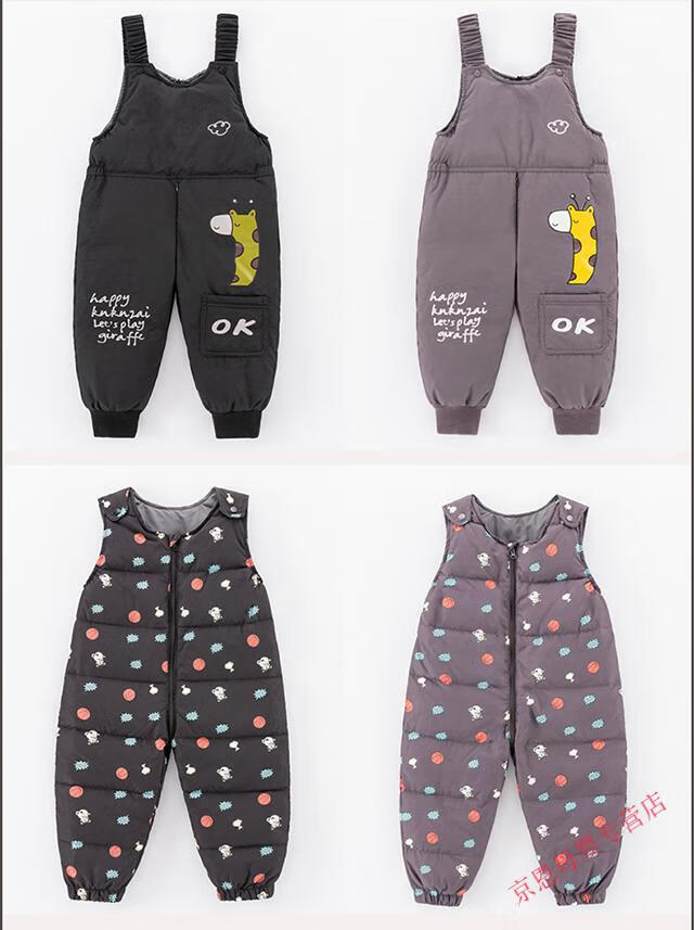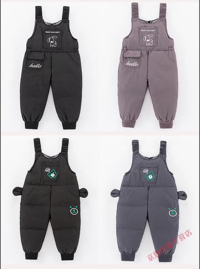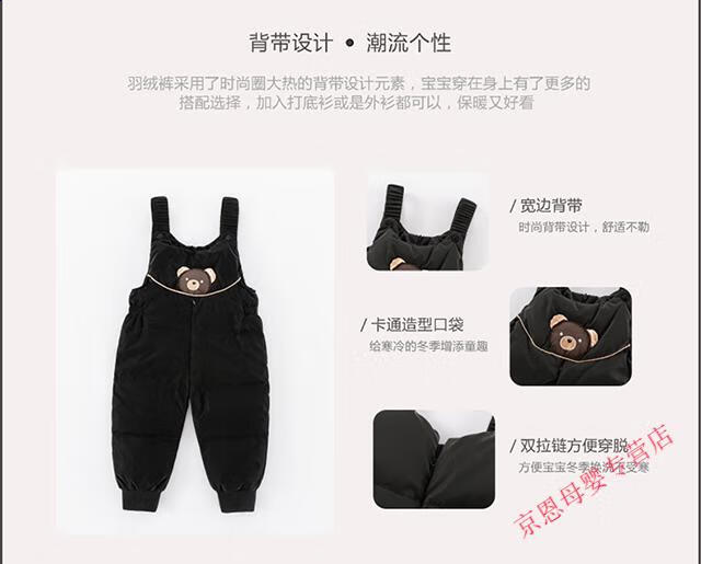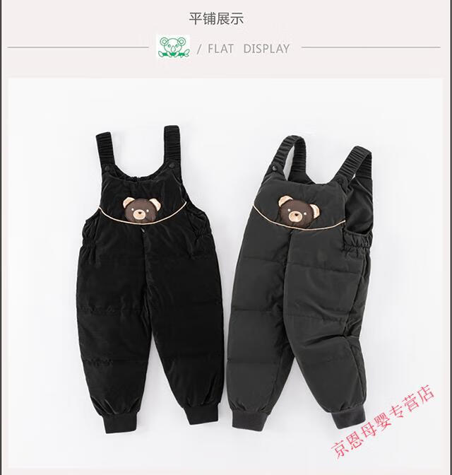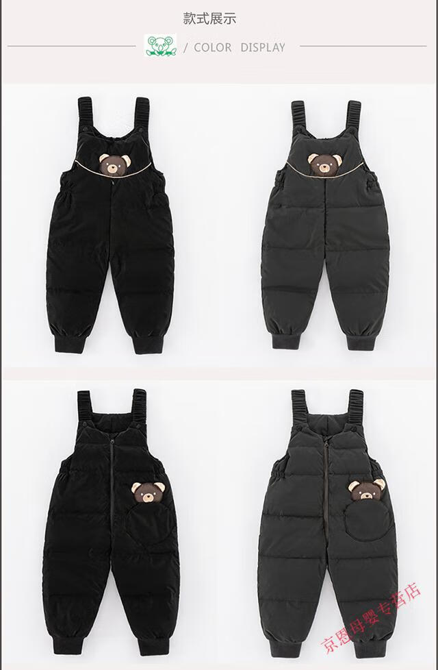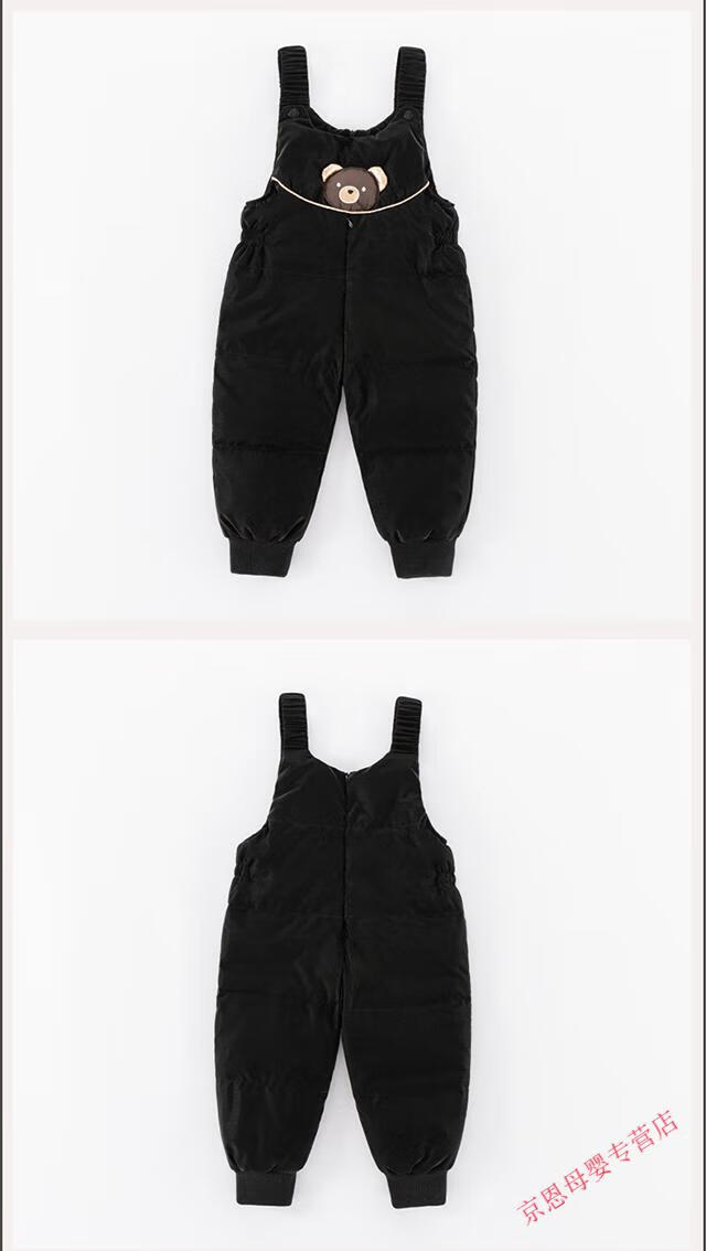 G.DUCKKIDS children's down overalls thickened new winter warm jumpsuits for boys and girls, toddlers and babies outer wear down pants black 100 cm