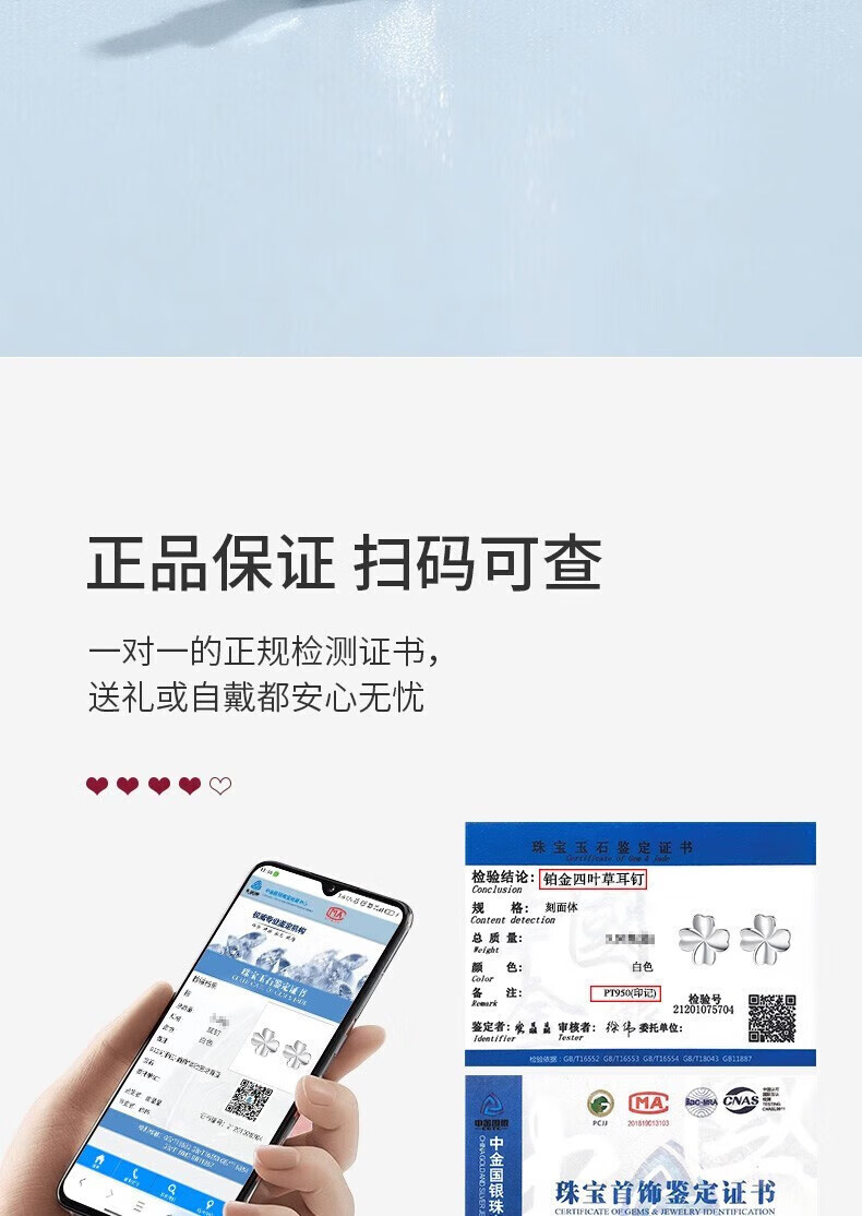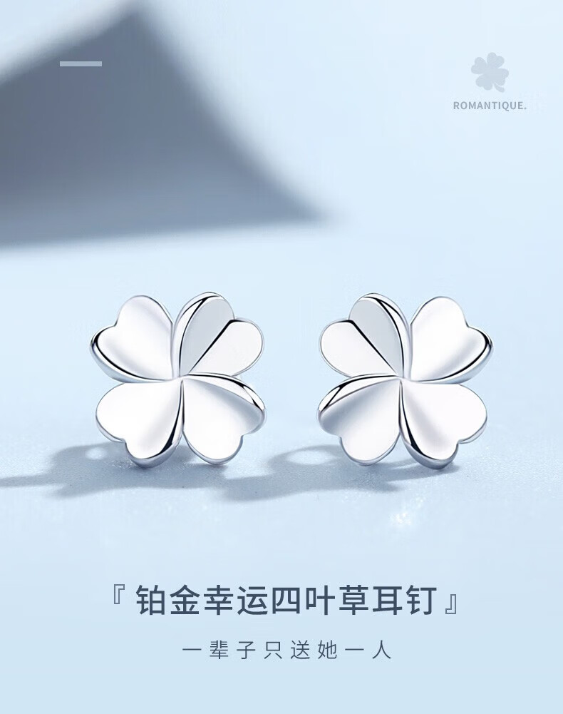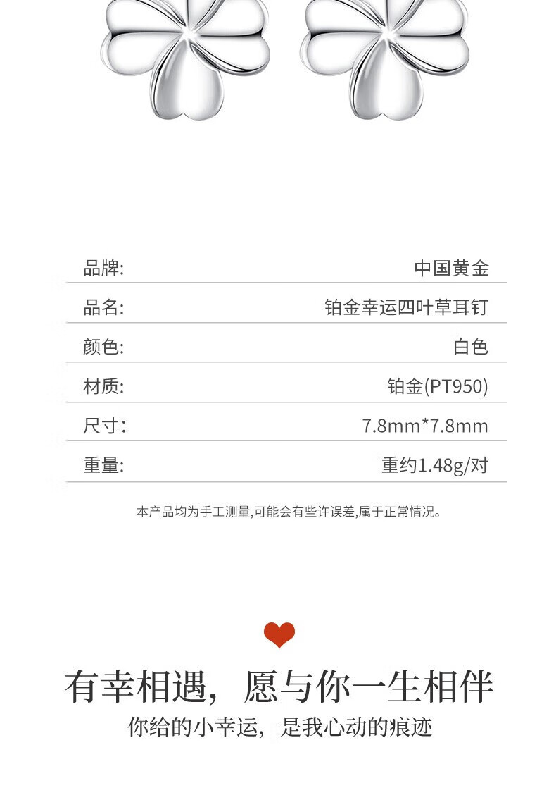 China Gold (CHINA GOLD) four-leaf clover platinum earrings for women platinum earrings earrings girls birthday gifts girlfriend wife wedding anniversary platinum four-leaf clover earrings
