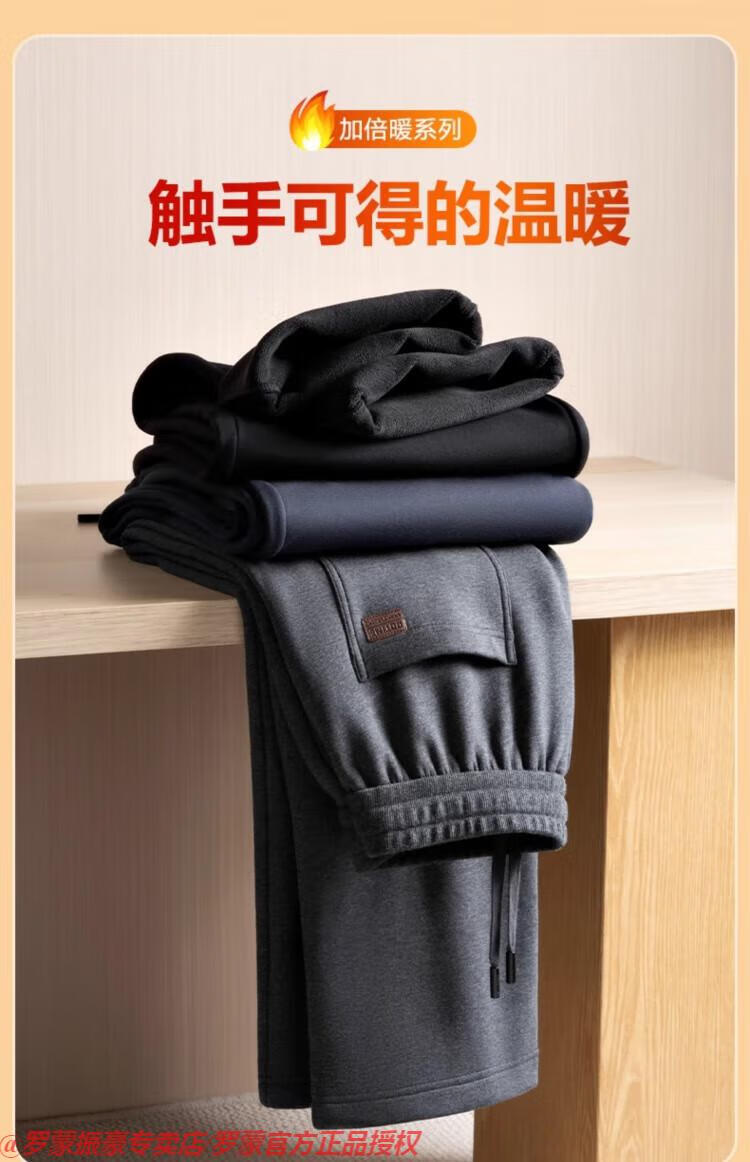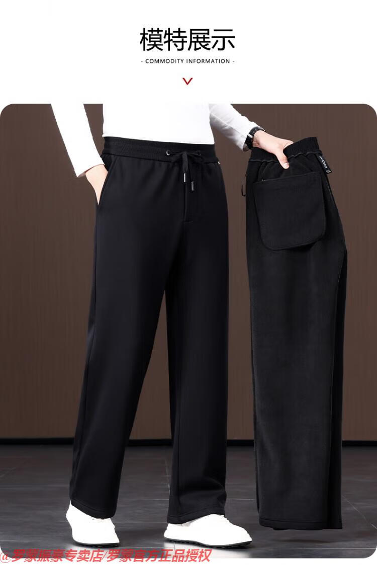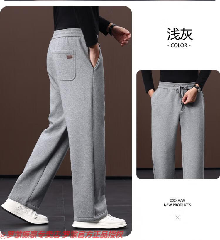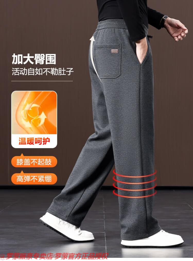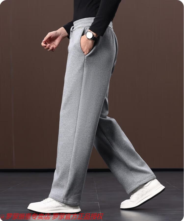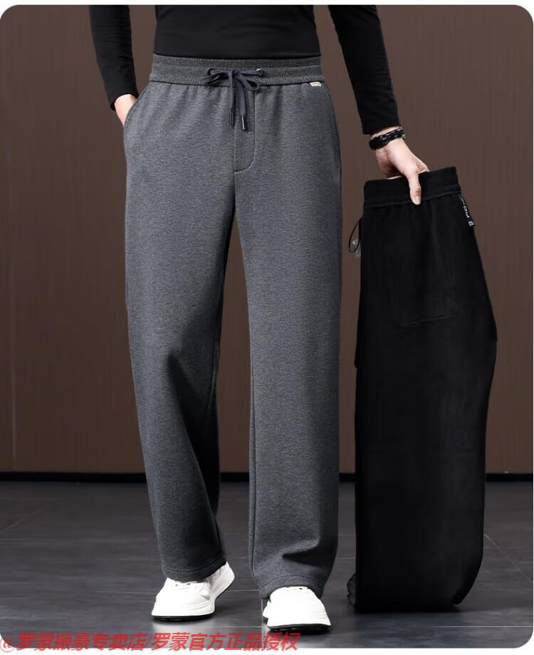 ROMON Velvet Thickened Cotton Wide Leg Pants Men's Loose 2024 Winter Thick Sports Pants Men's Large Size New Sweatpants Men Carbon Gray Pure Cotton Wide Leg Pants-Version Velvet XL