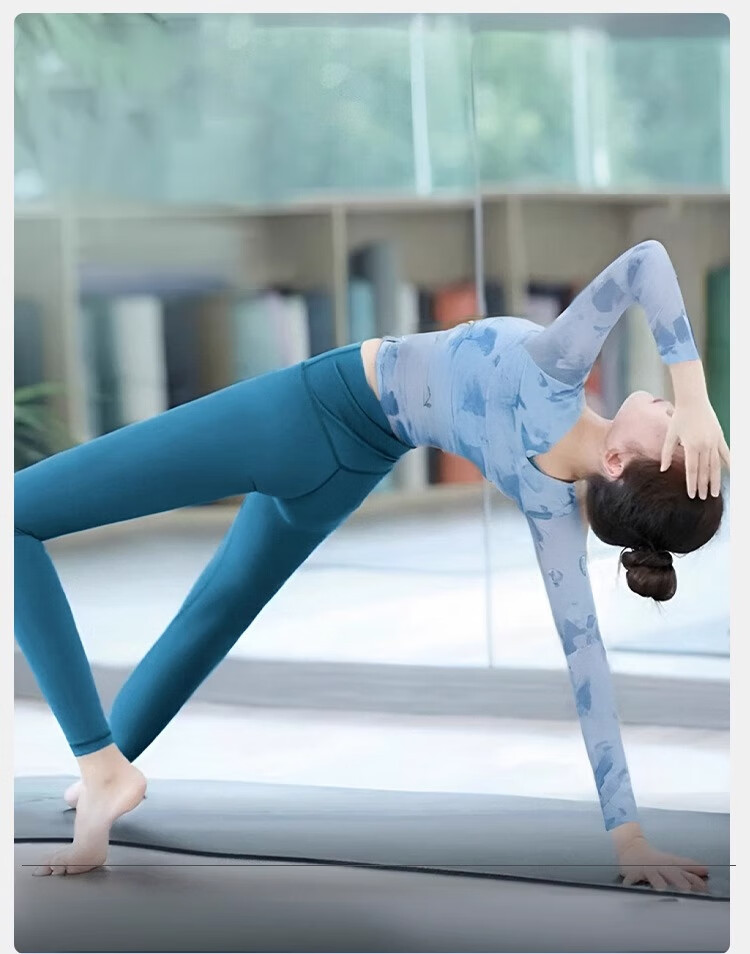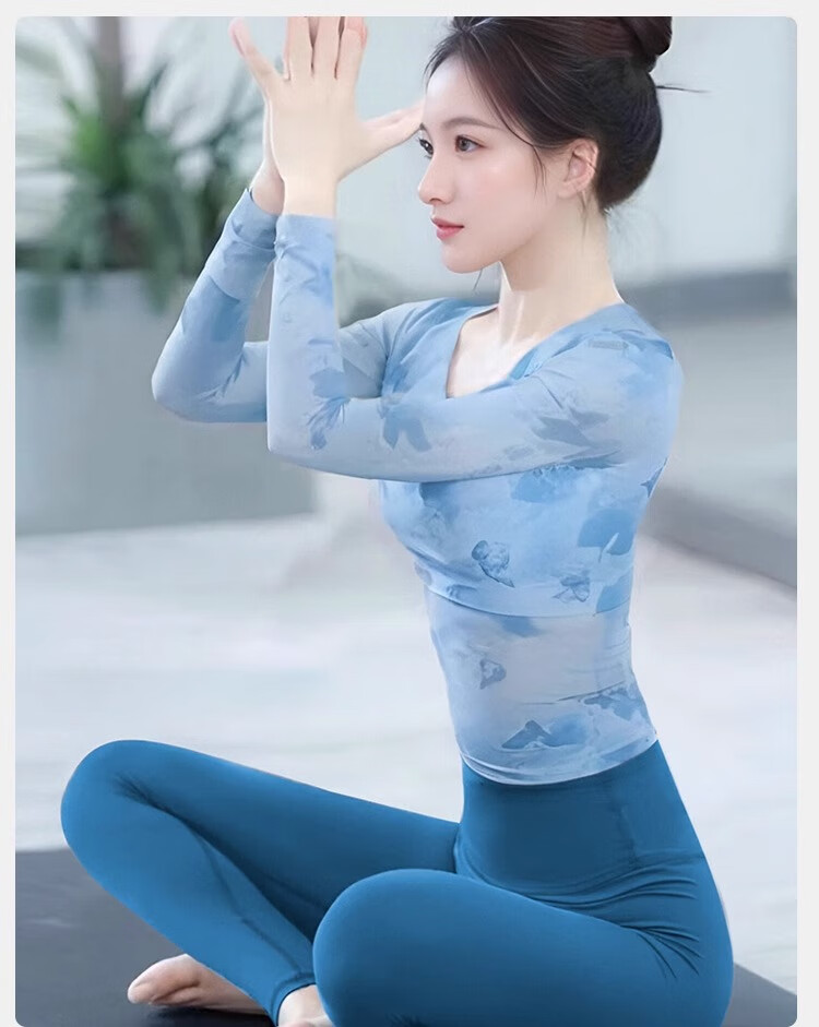 Shuangxiu New Chinese Style Yoga Wear Women's Tops Autumn and Winter Chinese Style Tie-Dye High-Level Senses with Chest Pads Pilates Sports and Fitness Long Sleeves Wind Chime Blue + Royal Blue Suit XL 120-135