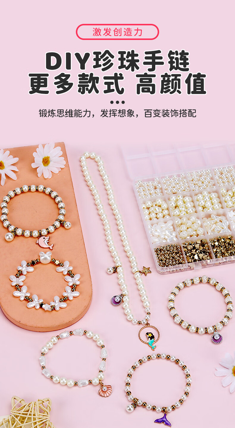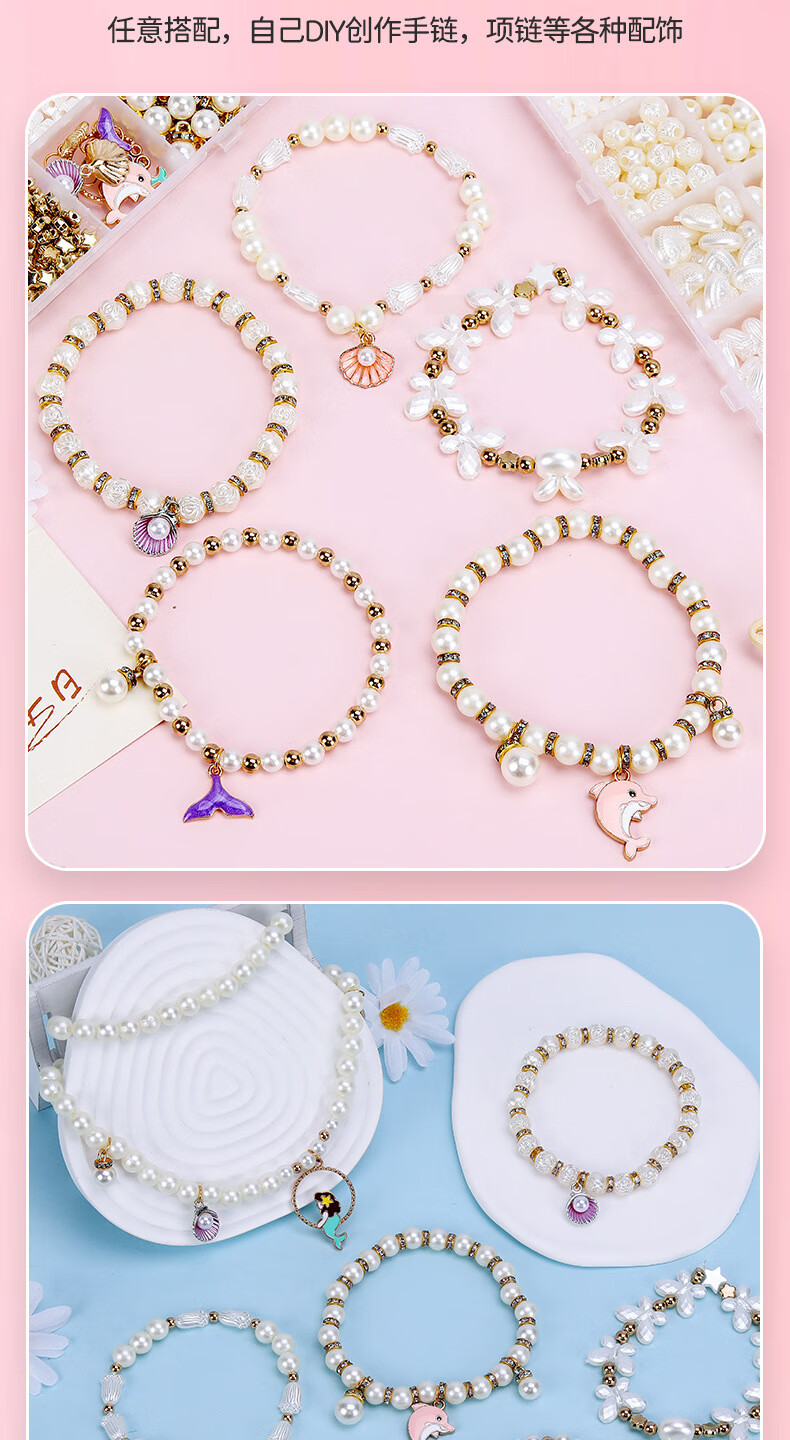 Daiyan handmade diy pearl bracelet girls handmade earrings jewelry bracelet production materials beaded bracelet material package 10 grid pearl ocean approximately (520 pieces) free 2m thread