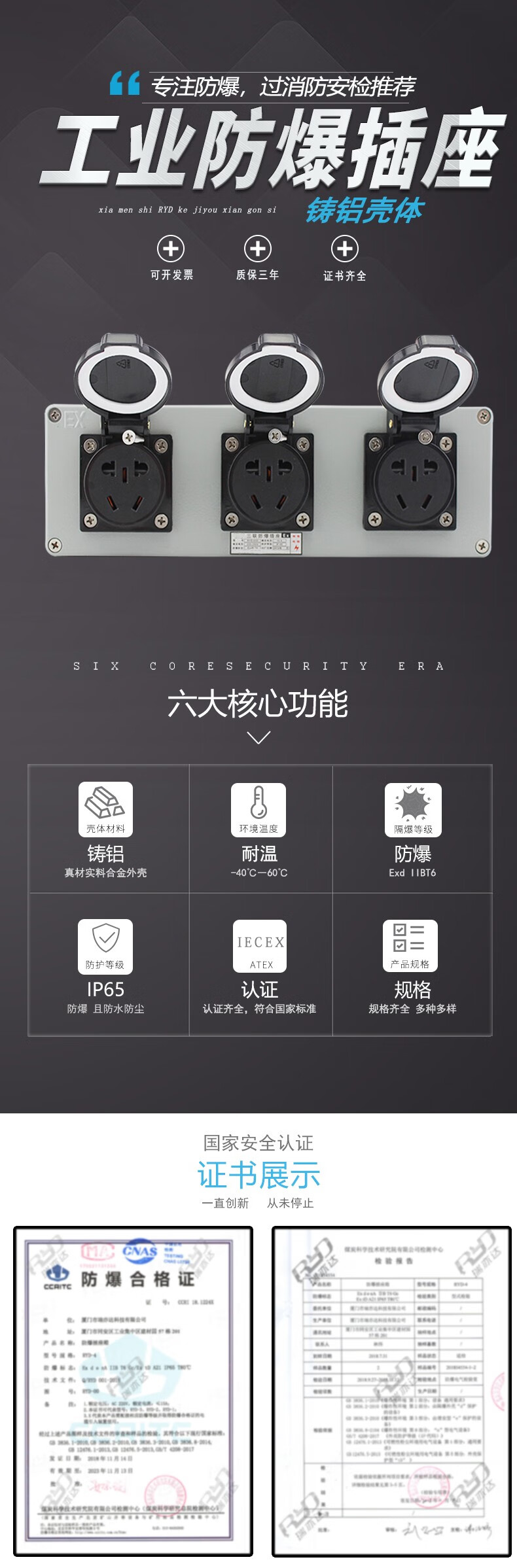 Industrial explosion-proof socket national standard five-hole three-hole 10A16A universal 220V outdoor exposed and concealed waterproof and dust-proof plug strip three-position three-hole multi-functional explosion-proof socket 10
