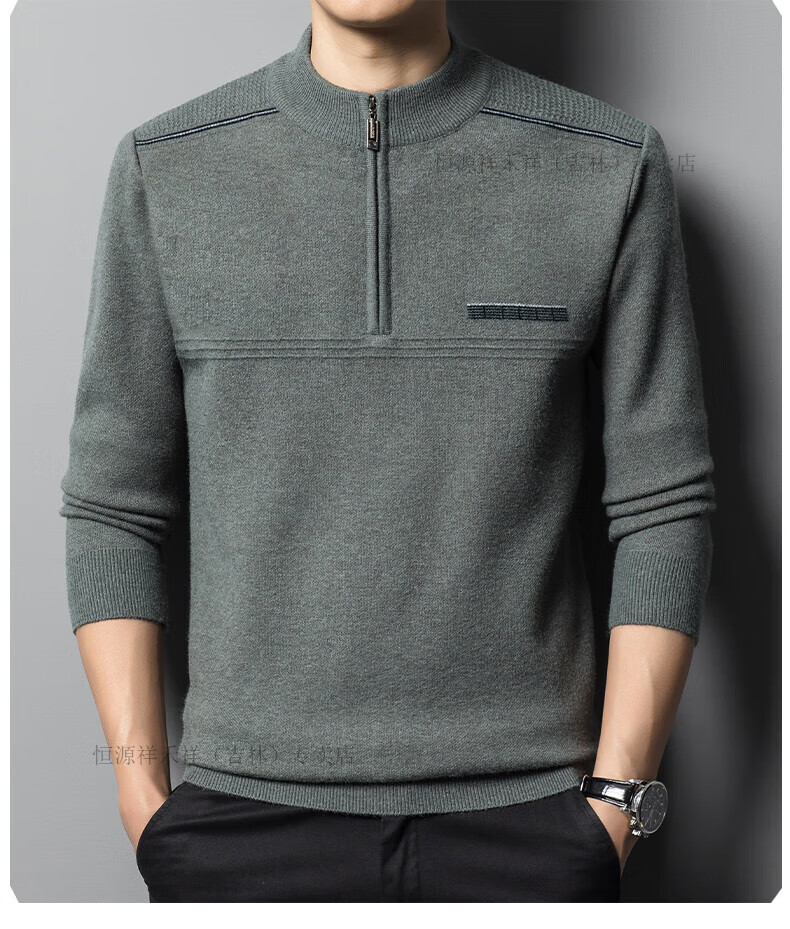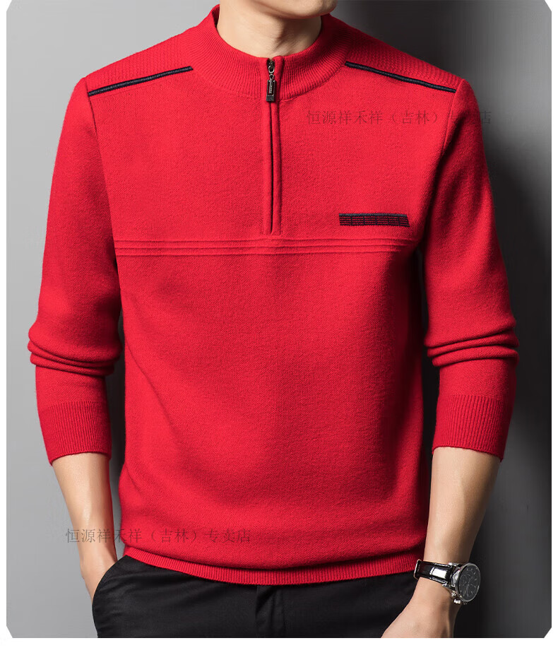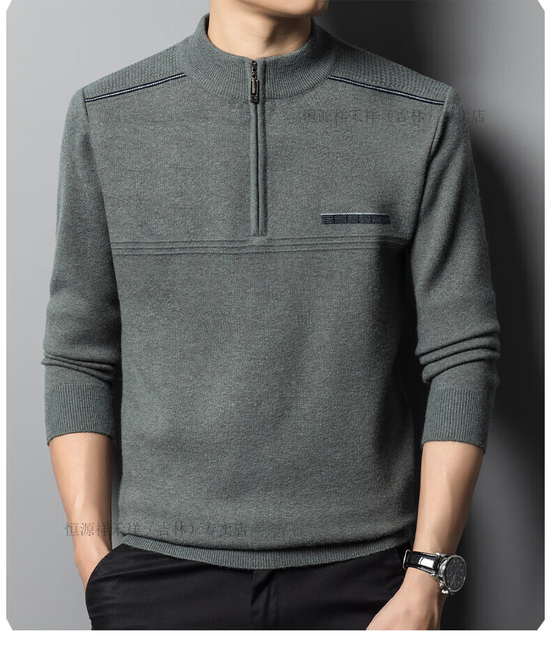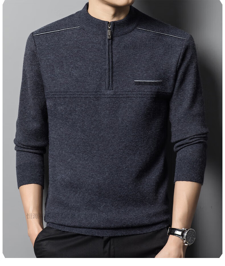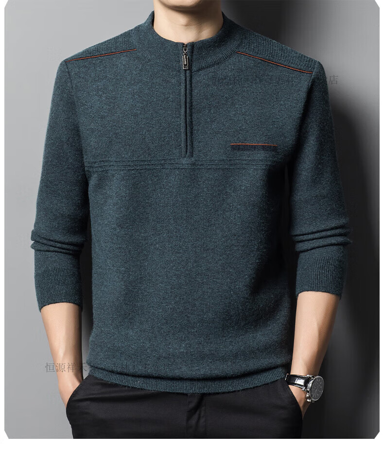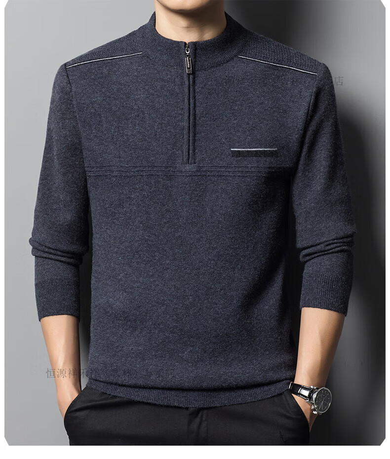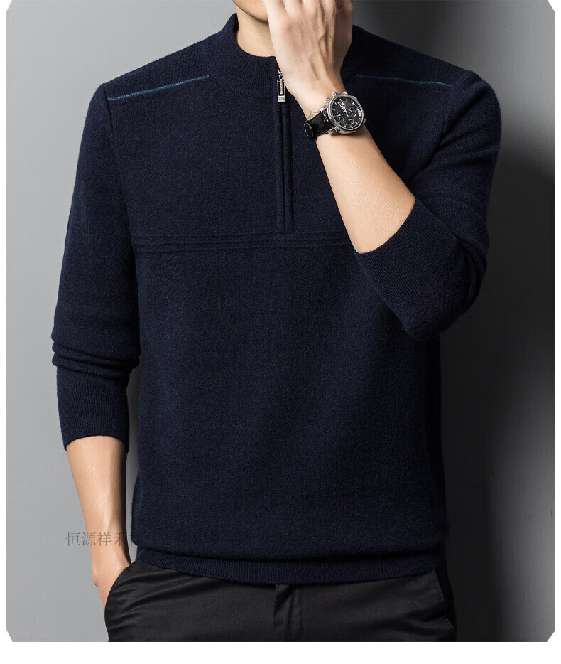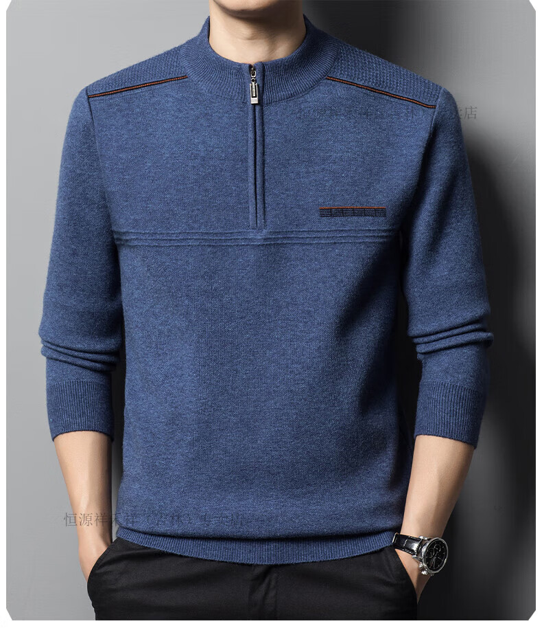 Hengyuanxiang sweater winter new 100 pure wool sweater men's half turtleneck zipper thickened warm base wool 2900 blue M 165 recommended 90-120 Jin Jin equals 0.5 kg