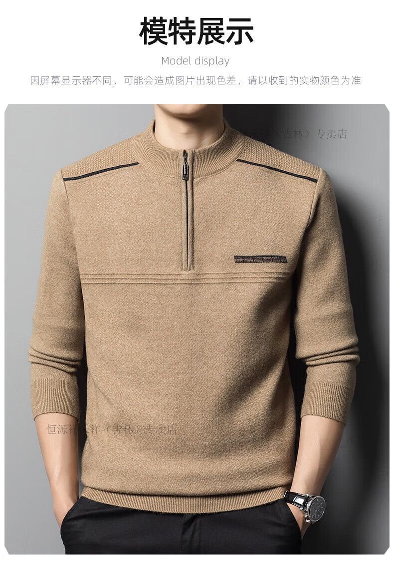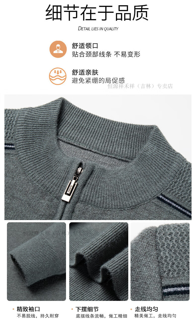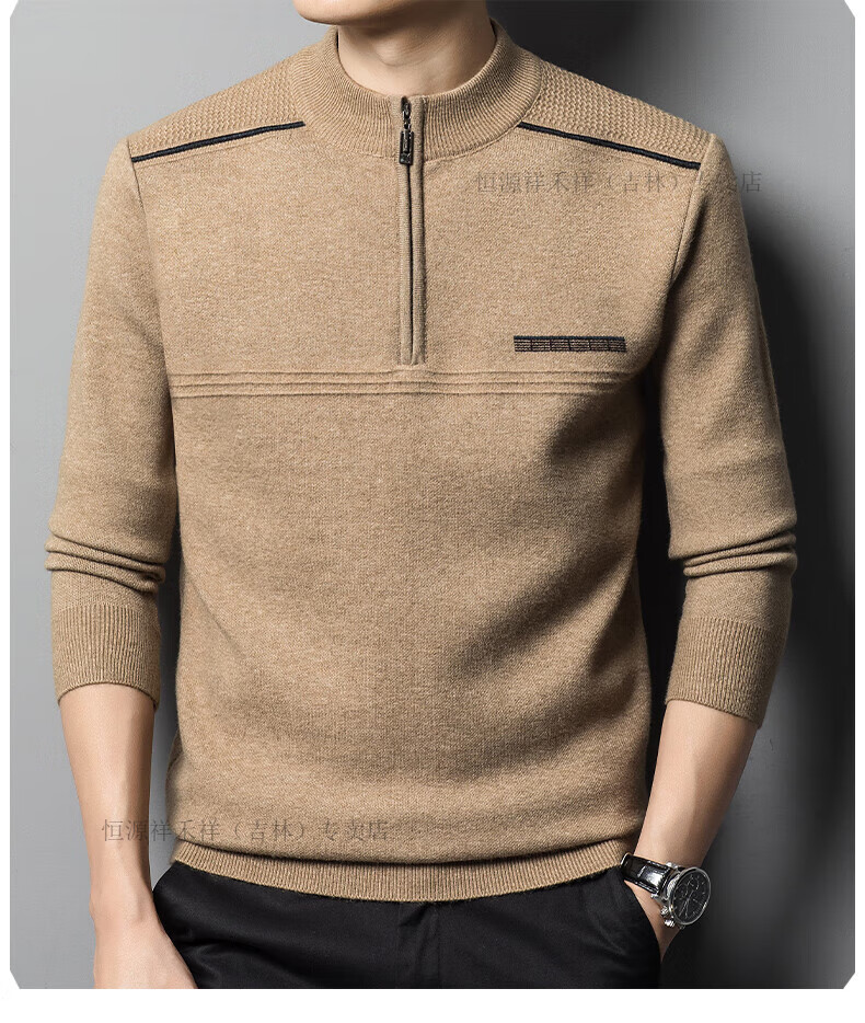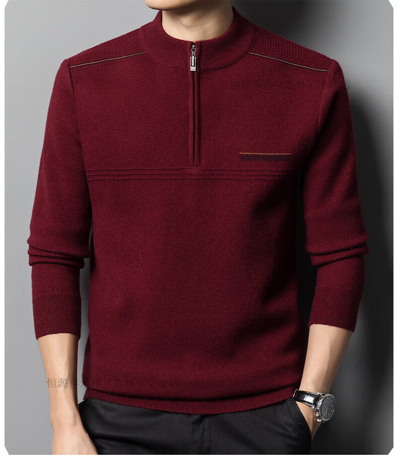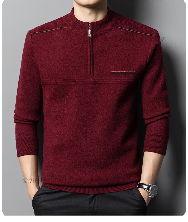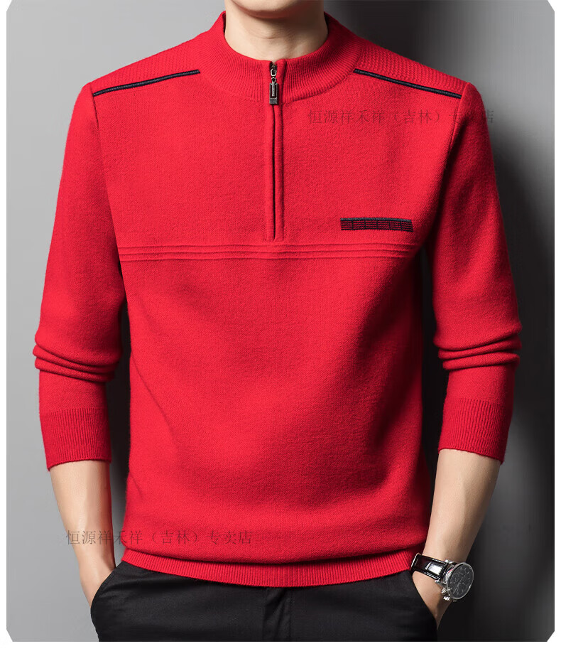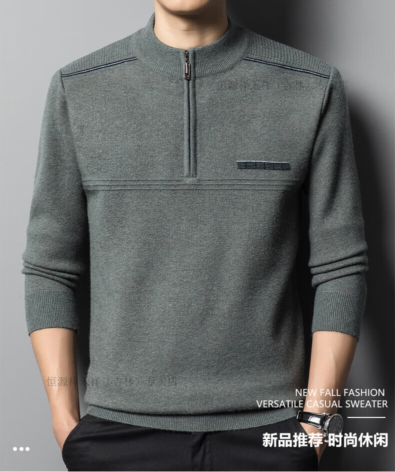 Hengyuanxiang sweater winter new 100 pure wool sweater men's half turtleneck zipper thickened warm base wool 2900 blue M 165 recommended 90-120 Jin Jin equals 0.5 kg