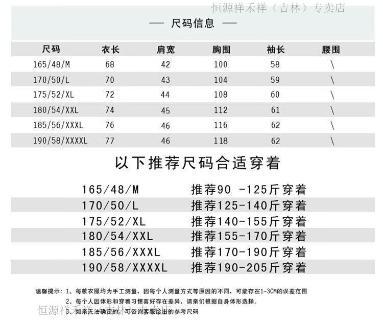 China (cm) 165 / 88-90 170 / 96-98 175 / 108-110 180 / 118-122 185 / 126-130
