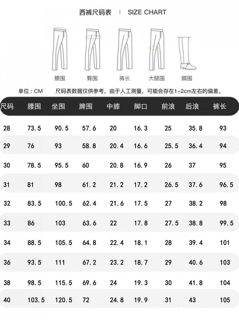 Outseam (cm) 99 cm 101.5 cm 104 cm 106.5 cm 109 cm