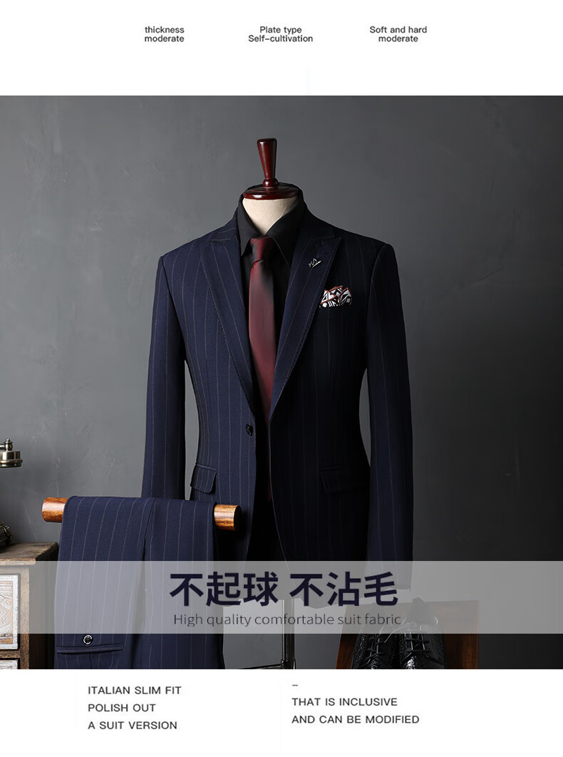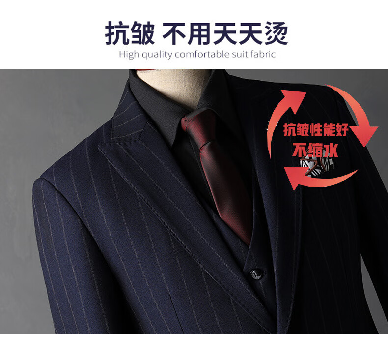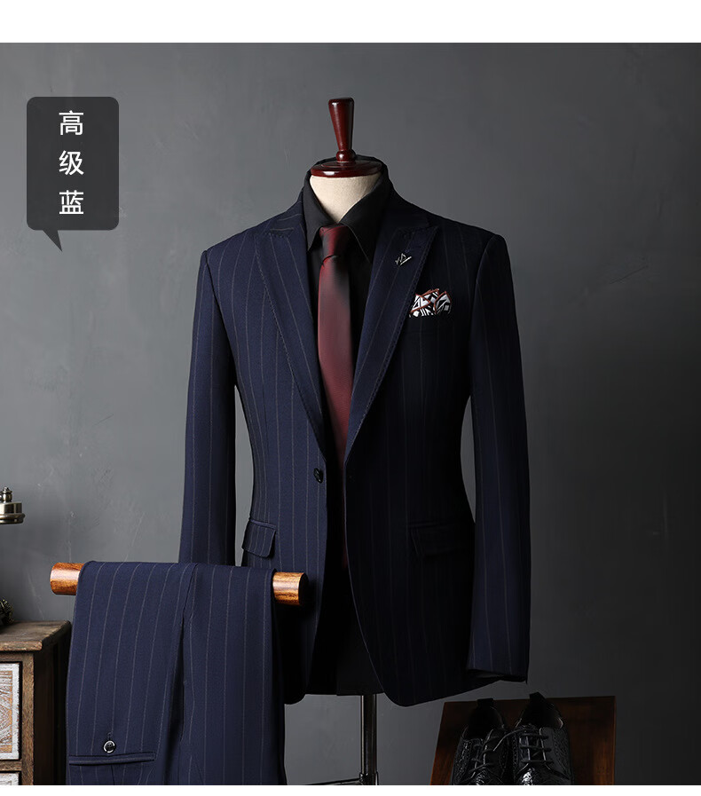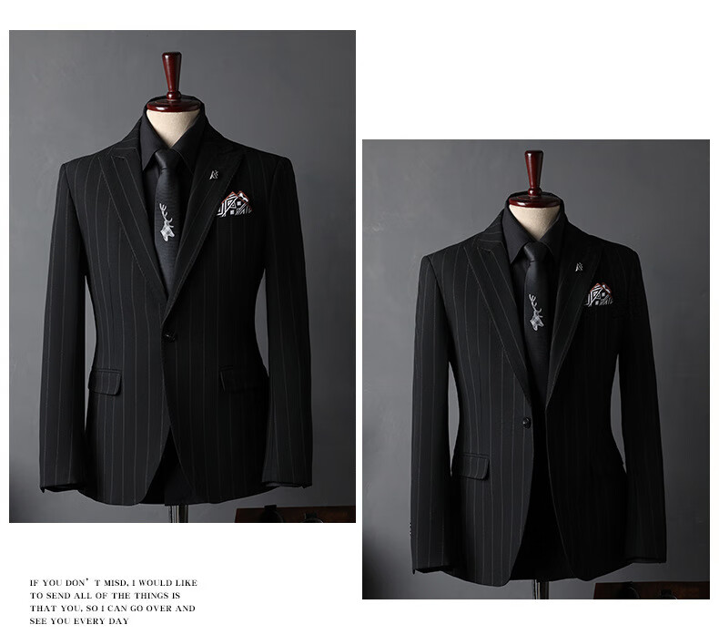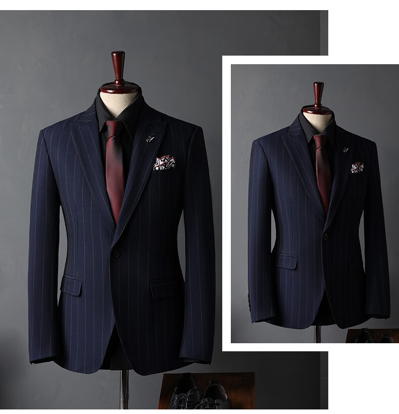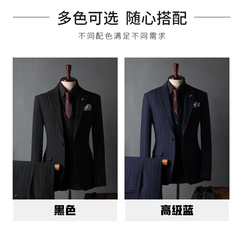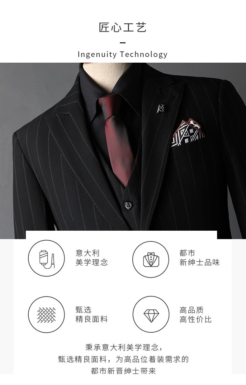 Woodpecker (TUCANO) Striped Suit Men's Full Groom's Suit British Style Groomsmen's Clothes Business Formal Wedding Suit Men's Black (Suit+Vest+Trousers) XL 52 (125-135Jin Jin equals 0.5kg)