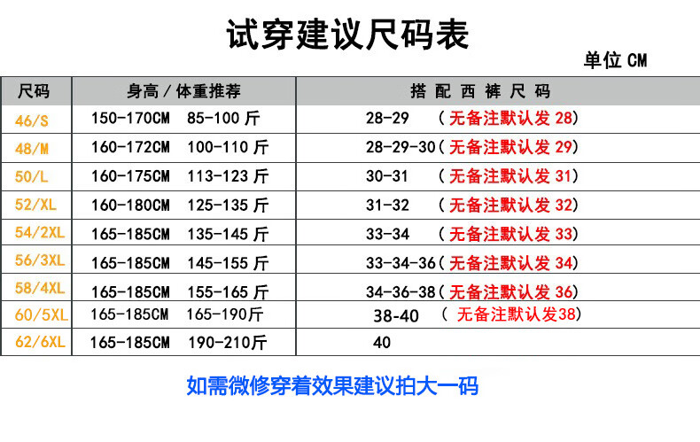 China (cm) 160-165/84-86 165-170 / 88-90 167-172 / 92-96 168-173 / 98-102 170-176 / 106-110