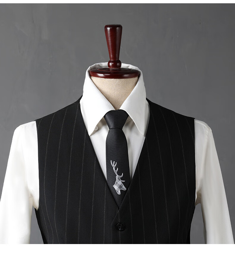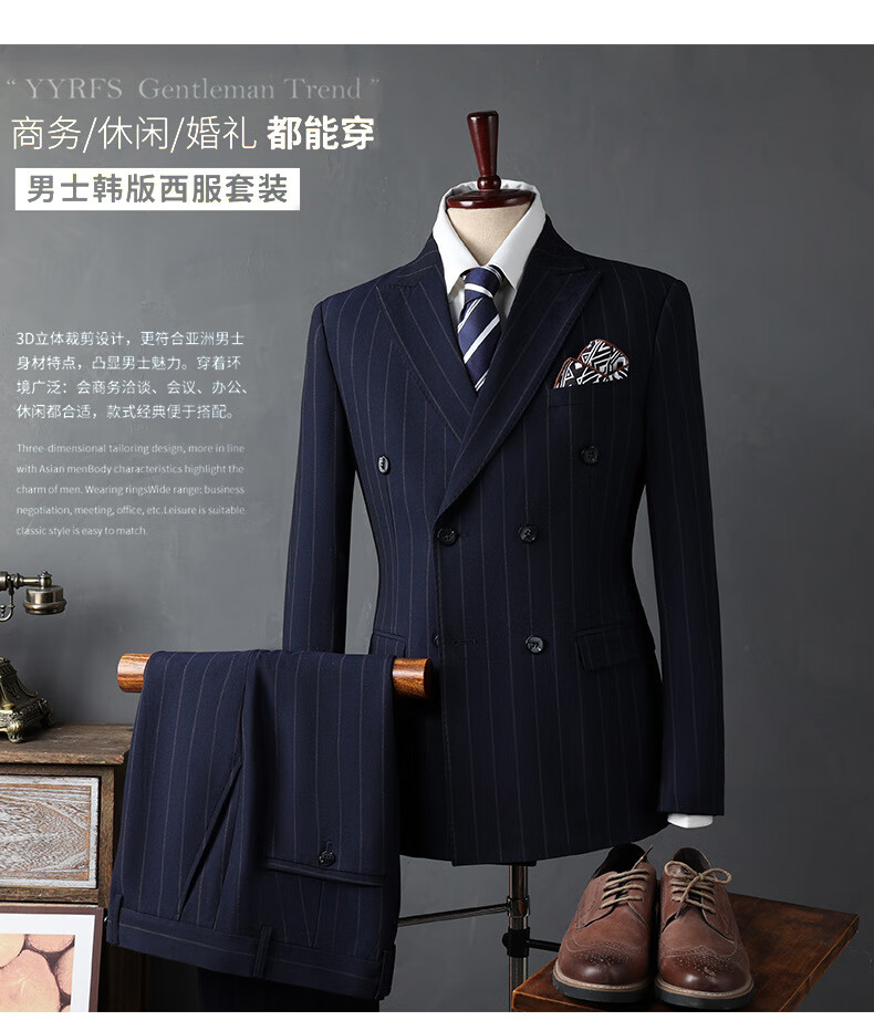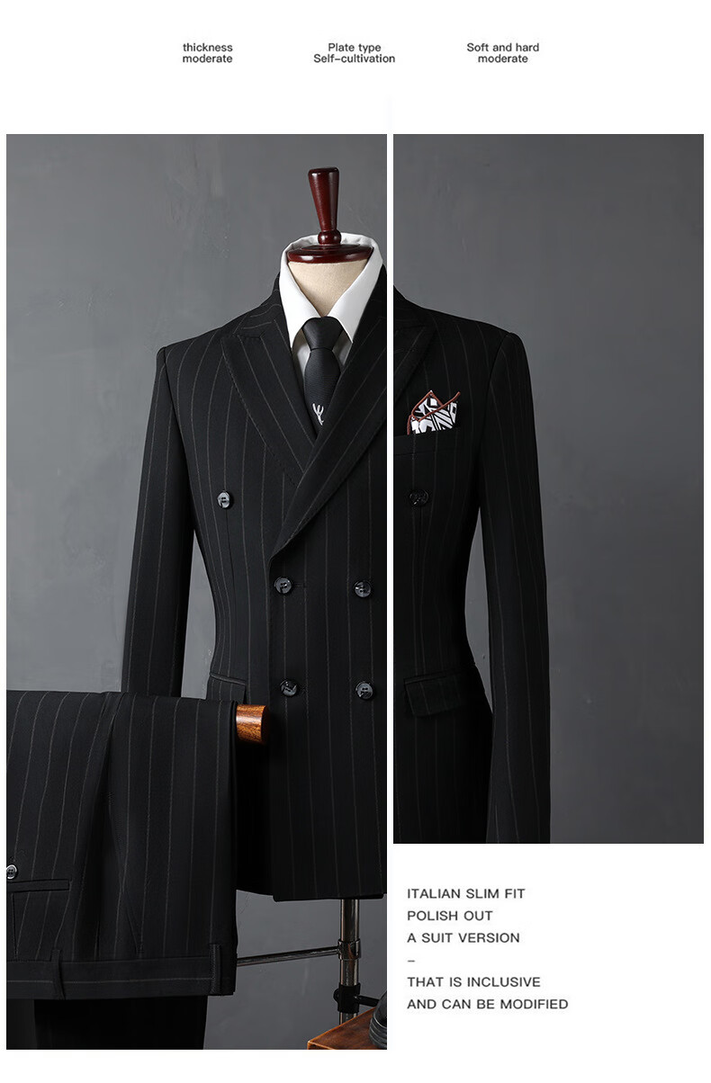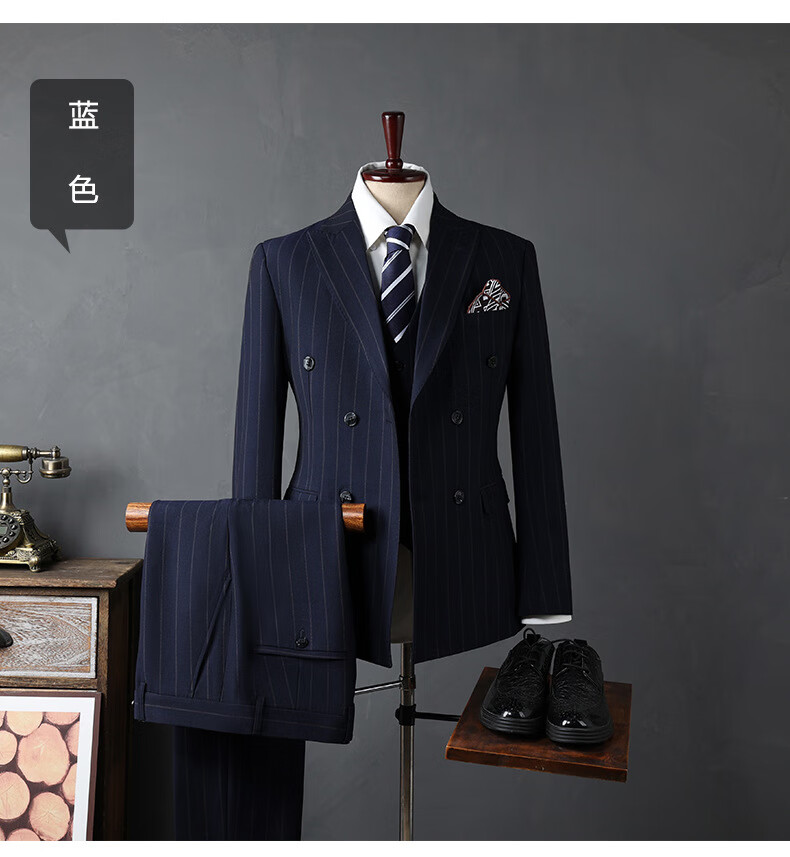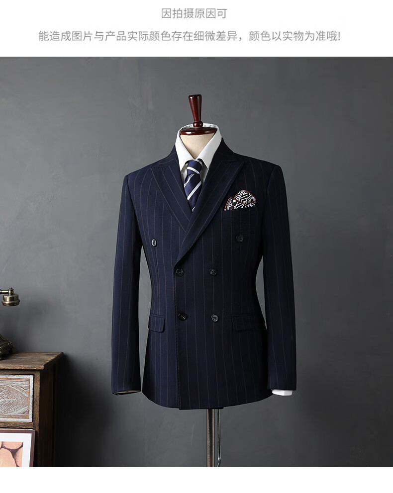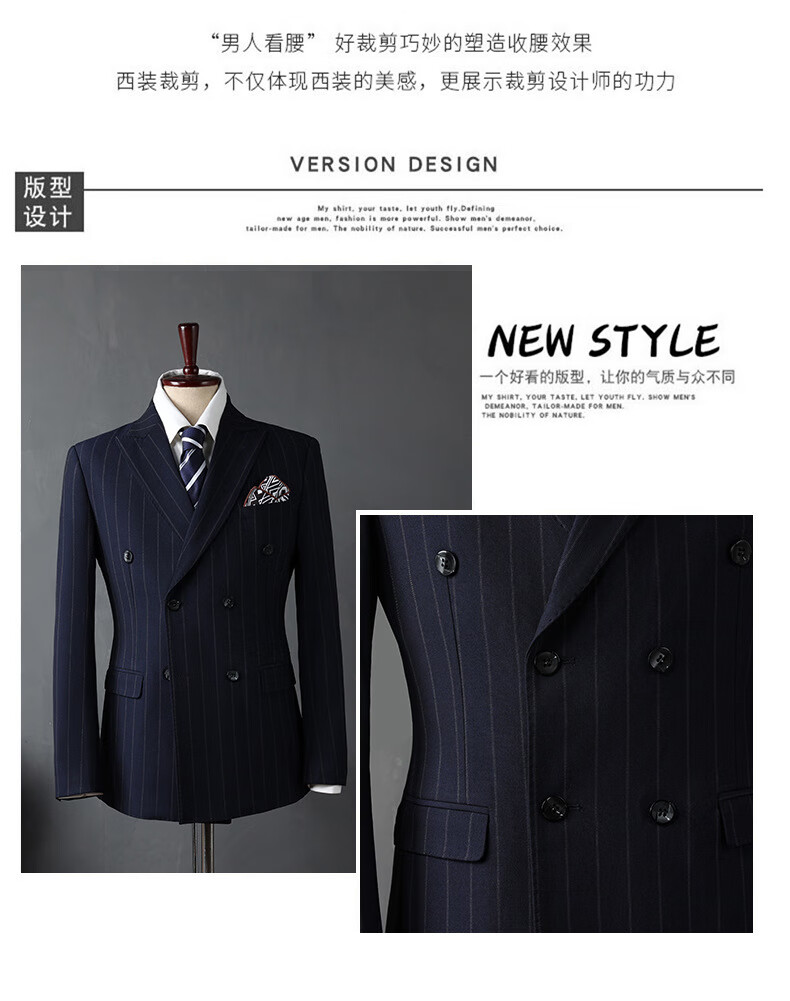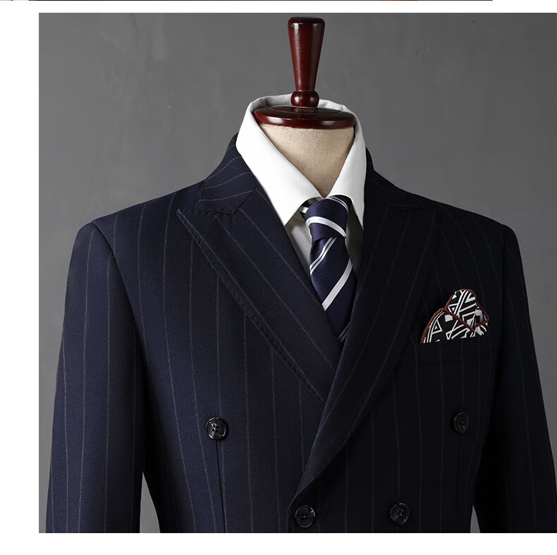 Woodpecker (TUCANO) Men's Suit Suit Casual Business Formal Wear Groomsmen's Suit Groom Wedding Double-breasted Striped Suit Jacket Men's Dark Blue (Suit+Vest+Trousers) 3XL 56(145-158Jin Jin equals 0.5kg)