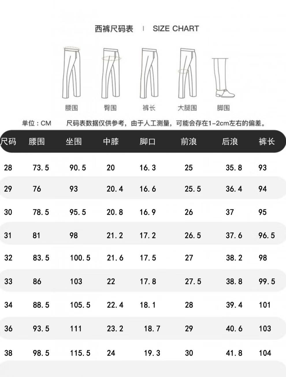 Outseam (cm) 99 cm 101.5 cm 104 cm 106.5 cm 109 cm