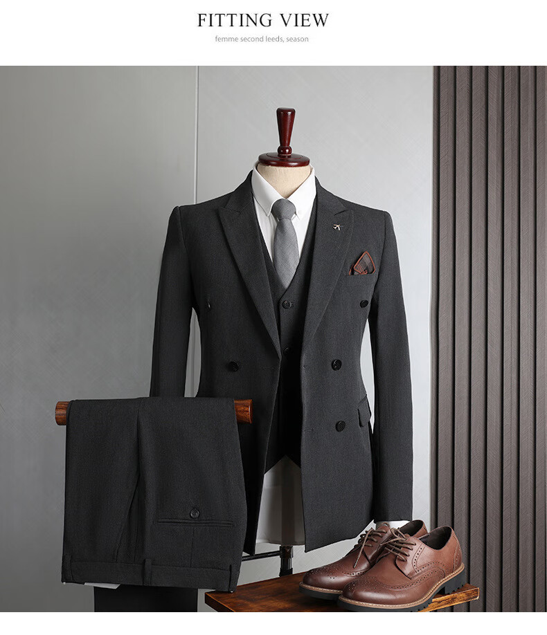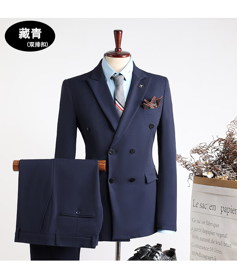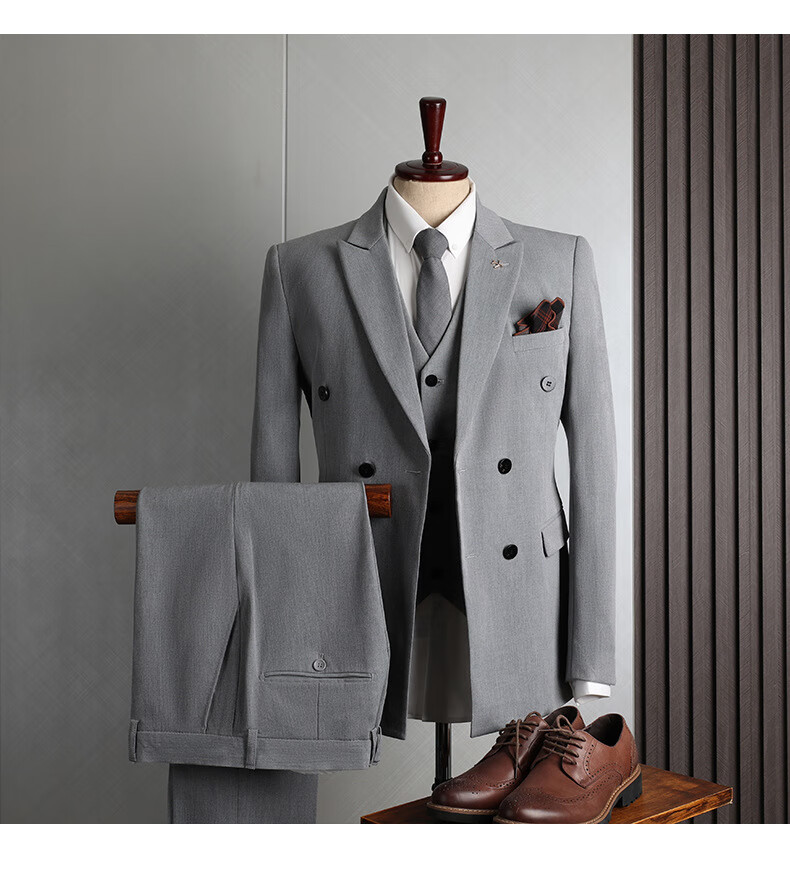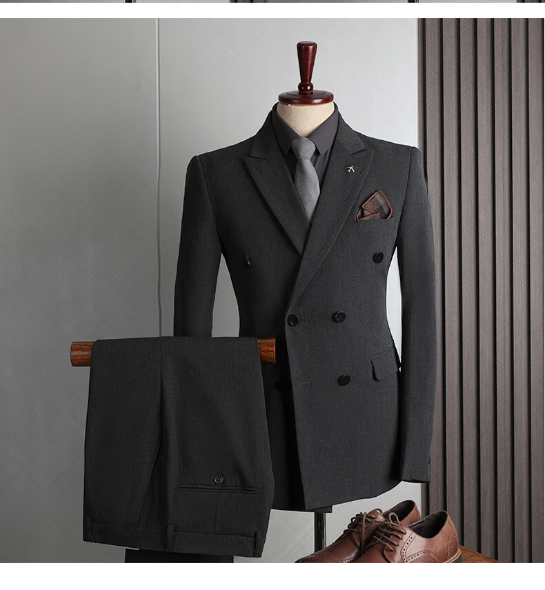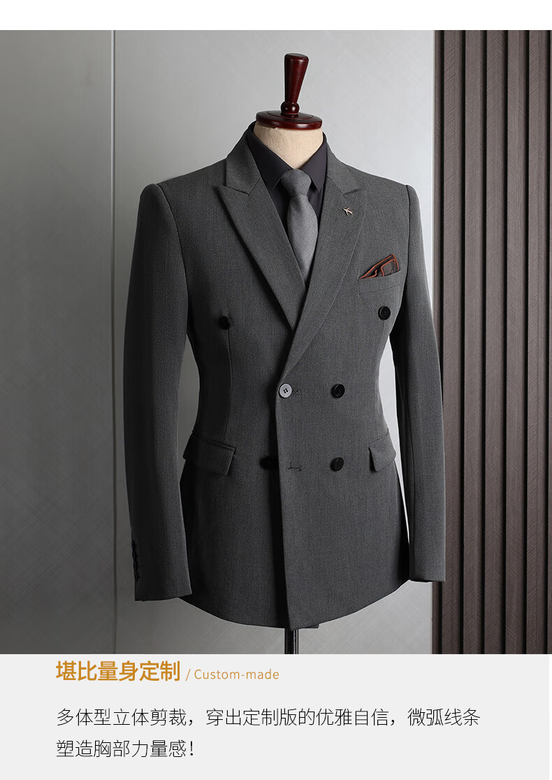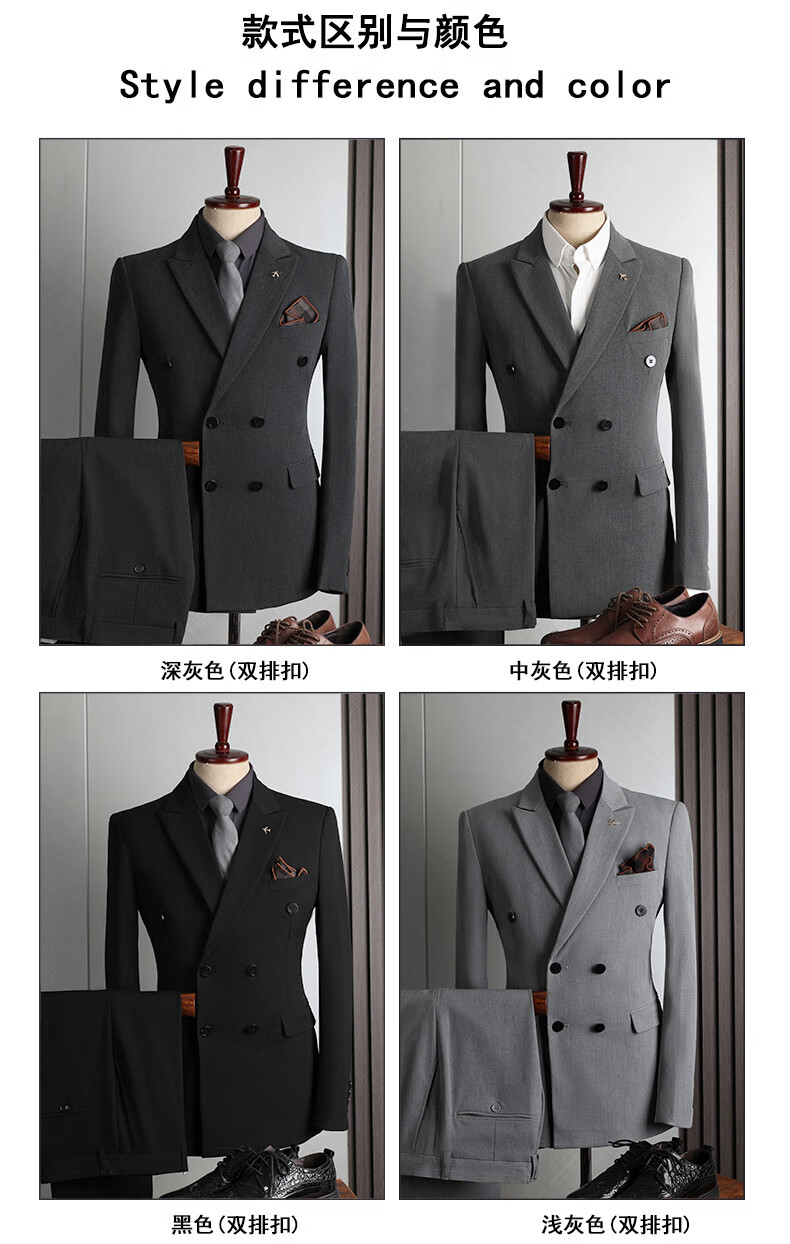 Woodpecker (TUCANO) double-row suit suit men's formal business casual fashion Korean version slim large size wedding small suit for men medium gray (suit + trousers) XL 52 (123-135Jin Jin equals 0.5 kg)