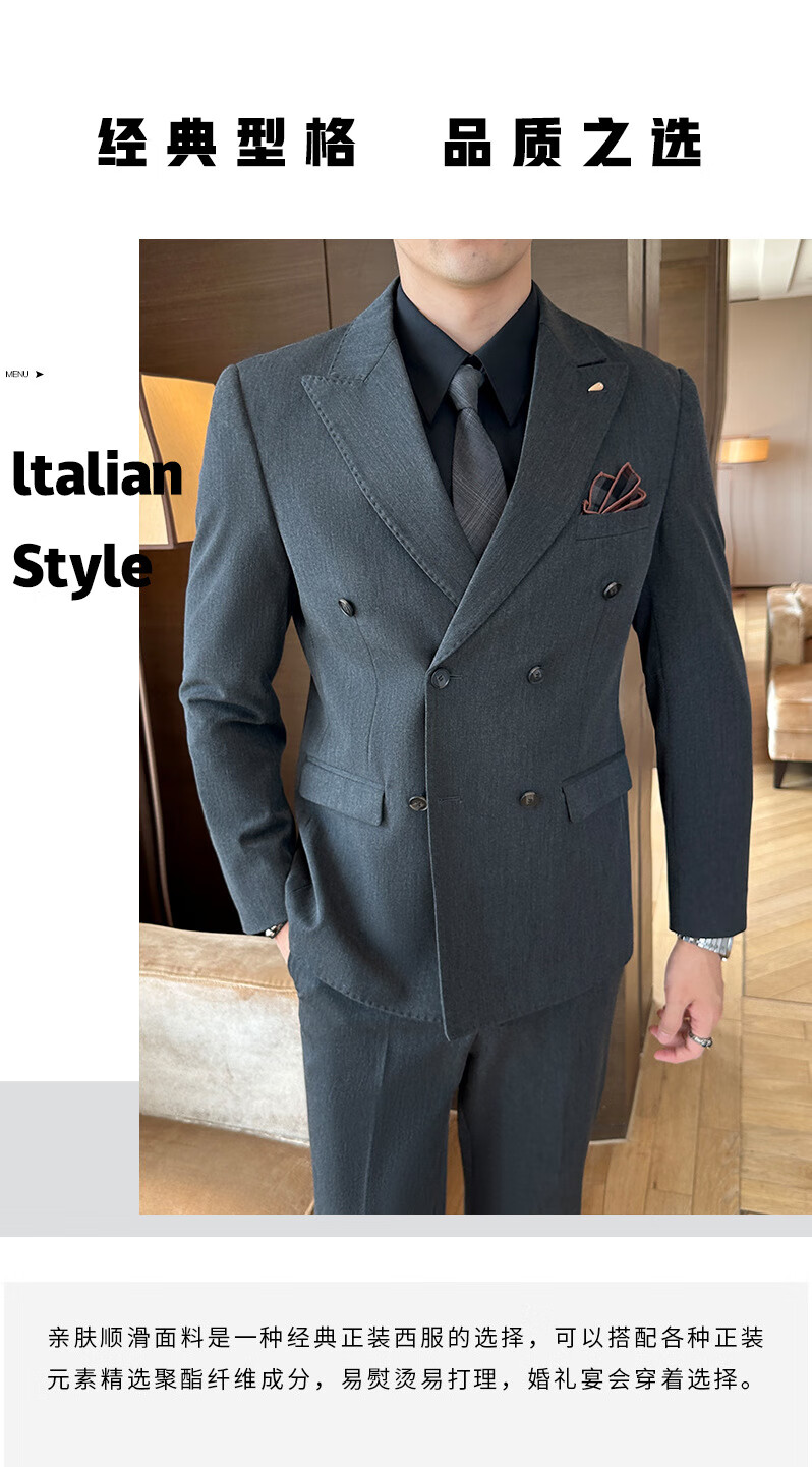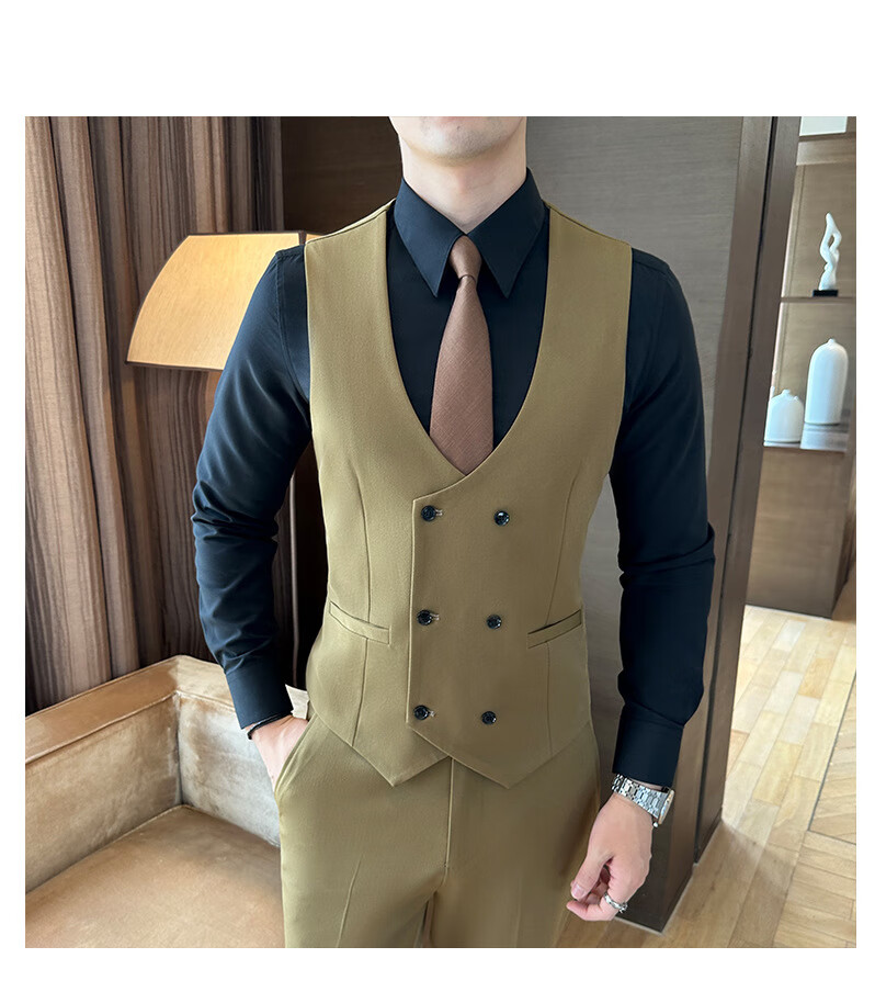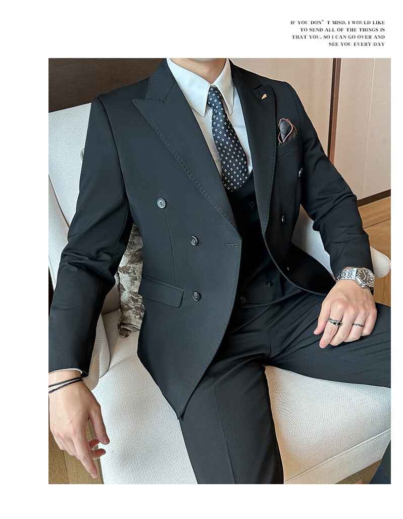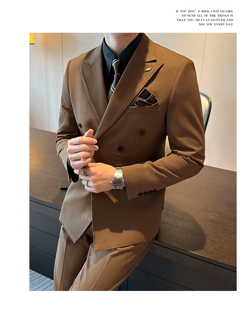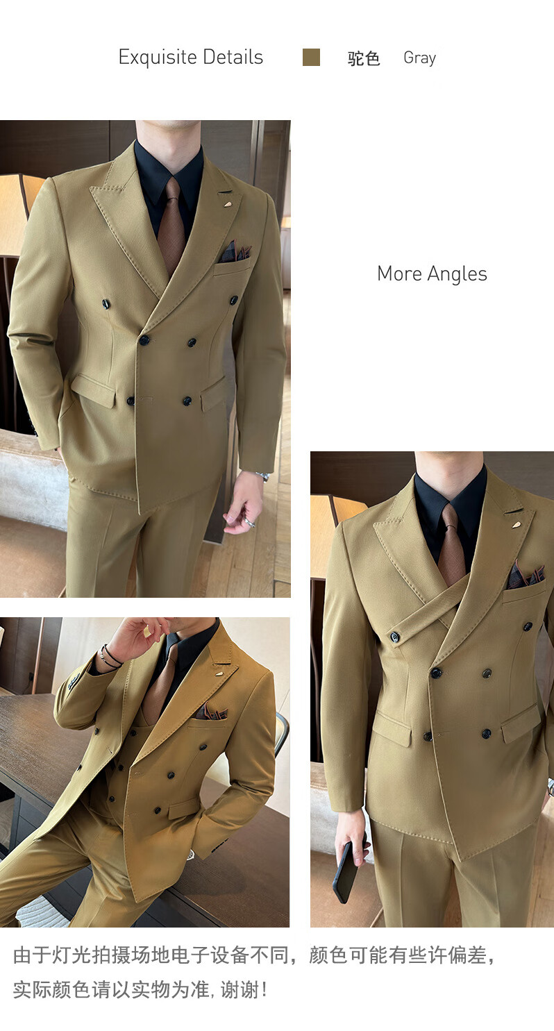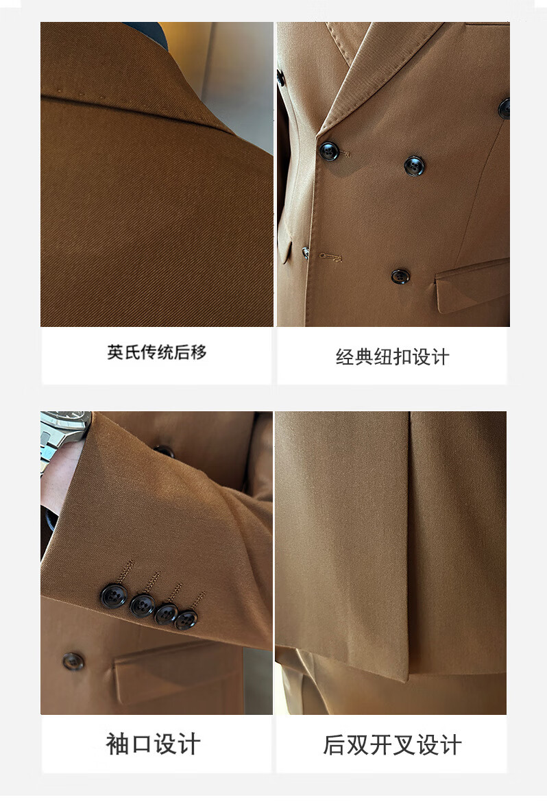 Woodpecker (TUCANO) brown double-breasted suit men's suit British slim men's large size suit three-piece wedding groom's suit trendy dark green (suit + vest + trousers) 4XL 58 (158-173Jin Jin equals 0.5 kg)