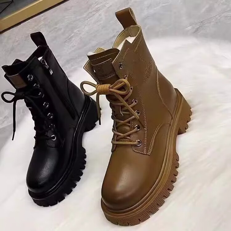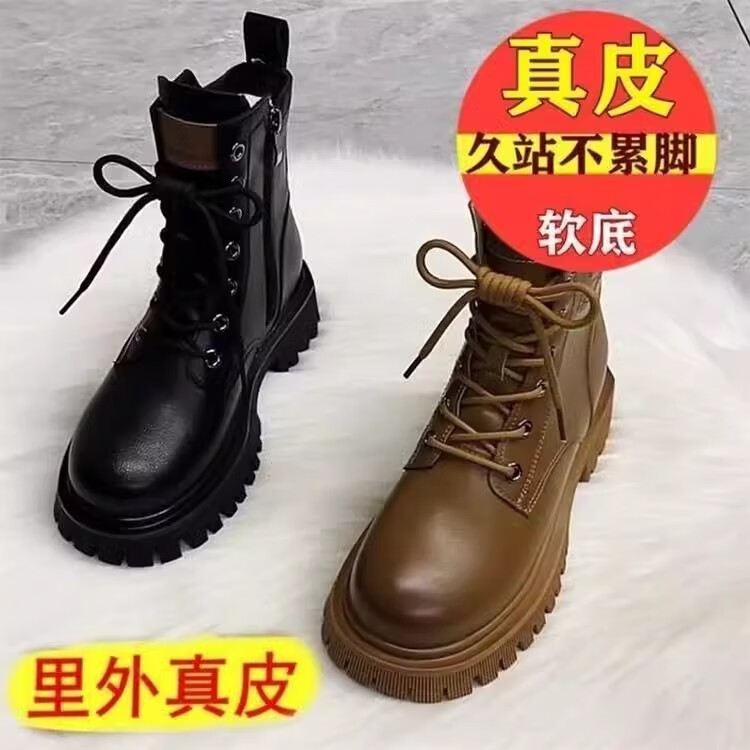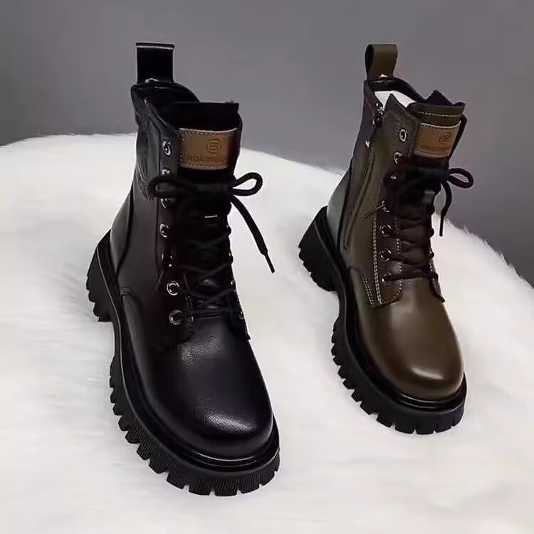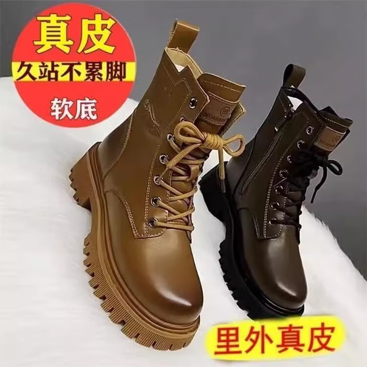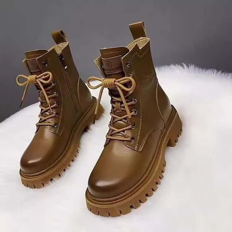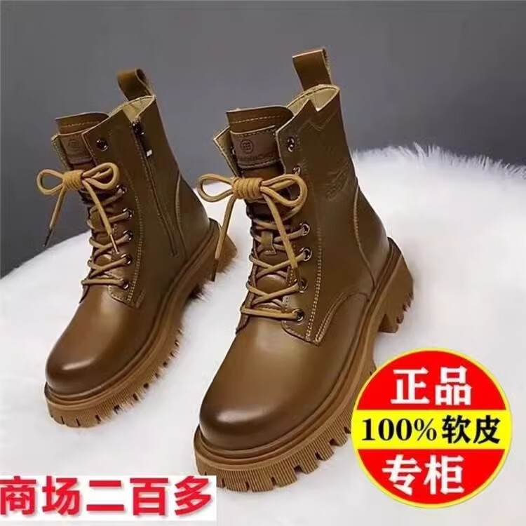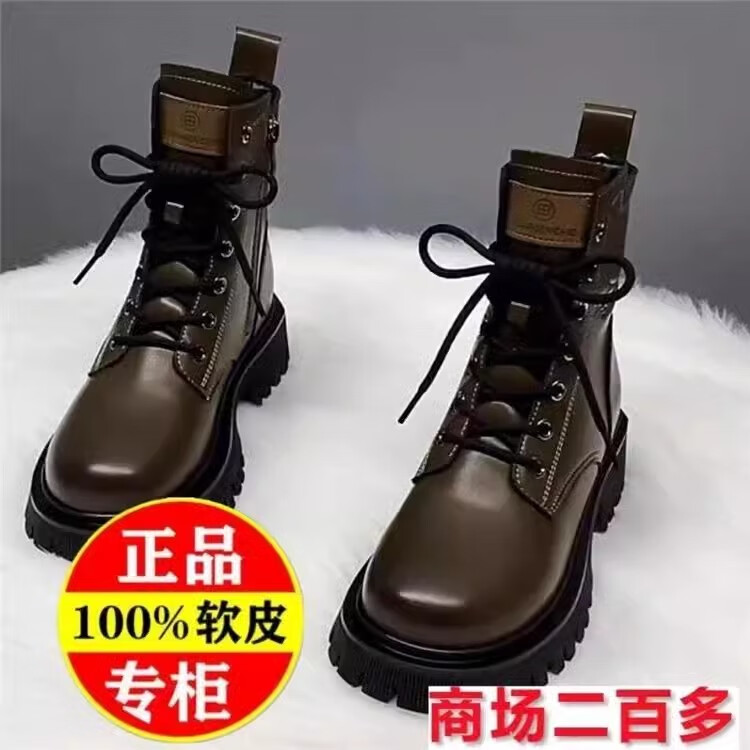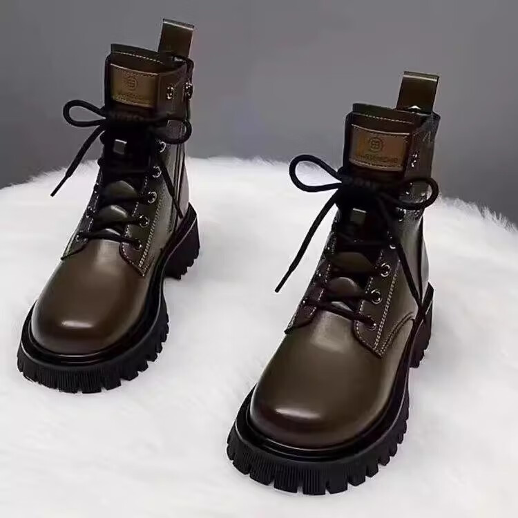 Woodpecker Brand Broken Code Special Price Genuine Leather Martin Boots Women's 2025 Autumn and Winter British Style Anti-Slip Thick Sole Versatile Breathable Short Boots Khaki Velvet 38