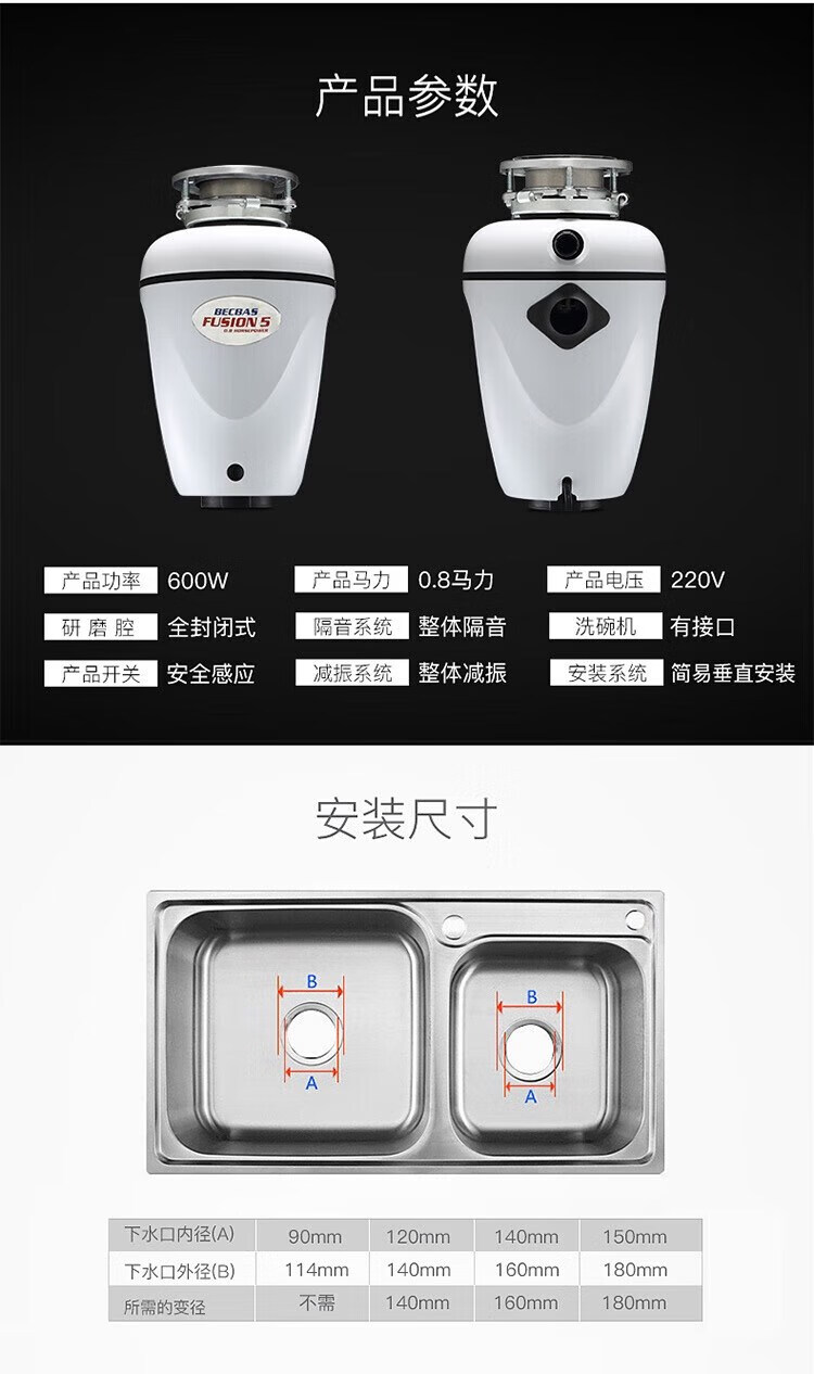 BECBAS F5emc home kitchen food waste disposer wireless switch can be connected to the dishwasher