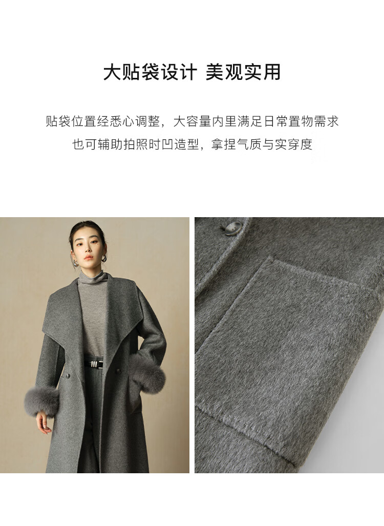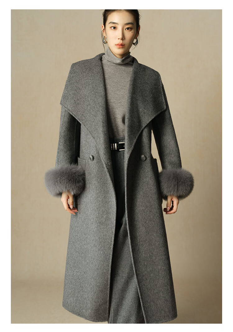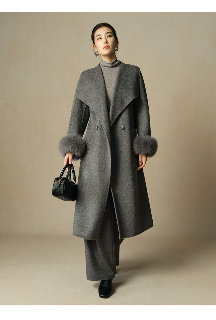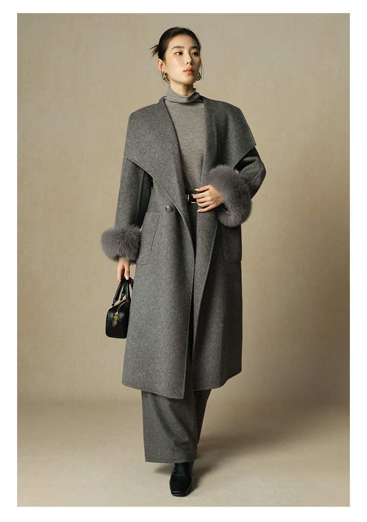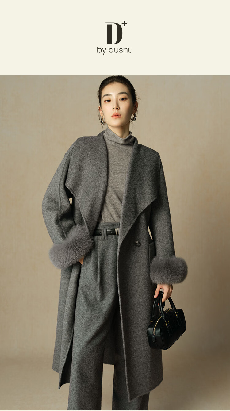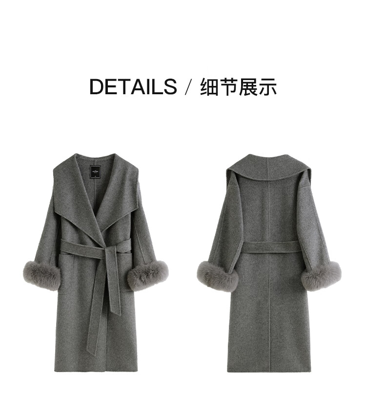 Single bundle large size women's D+ series black label high-end temperament shawl detachable wool blended coat for women moonlight gray 2XL (size 4)