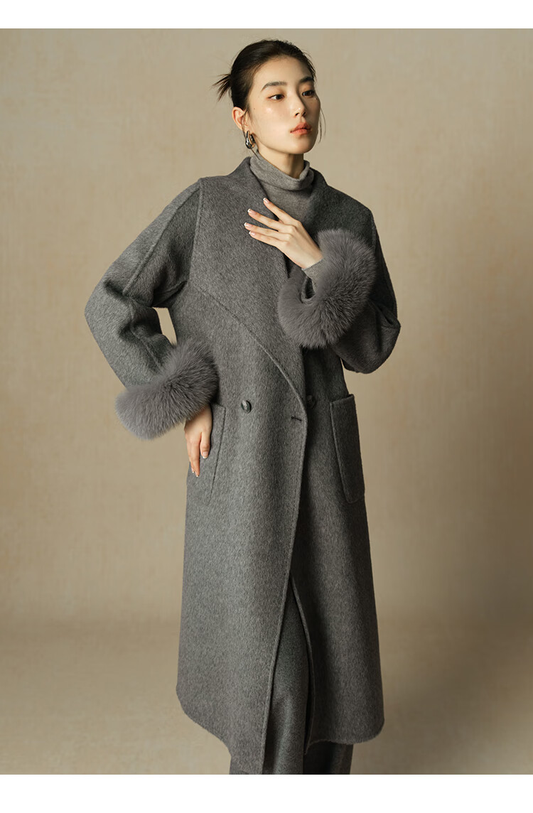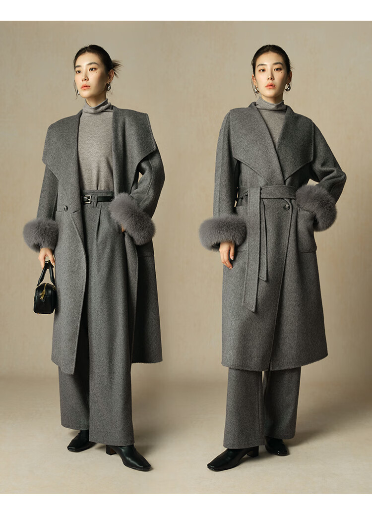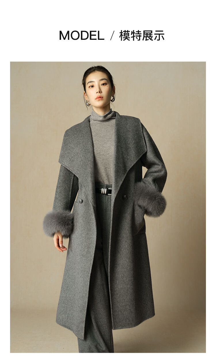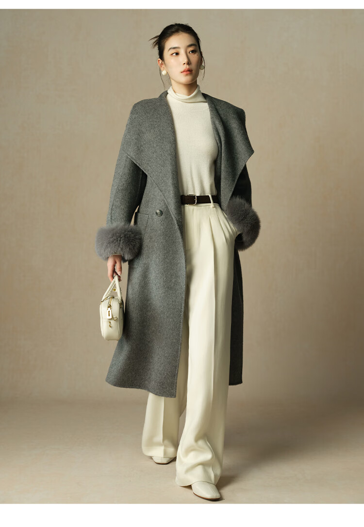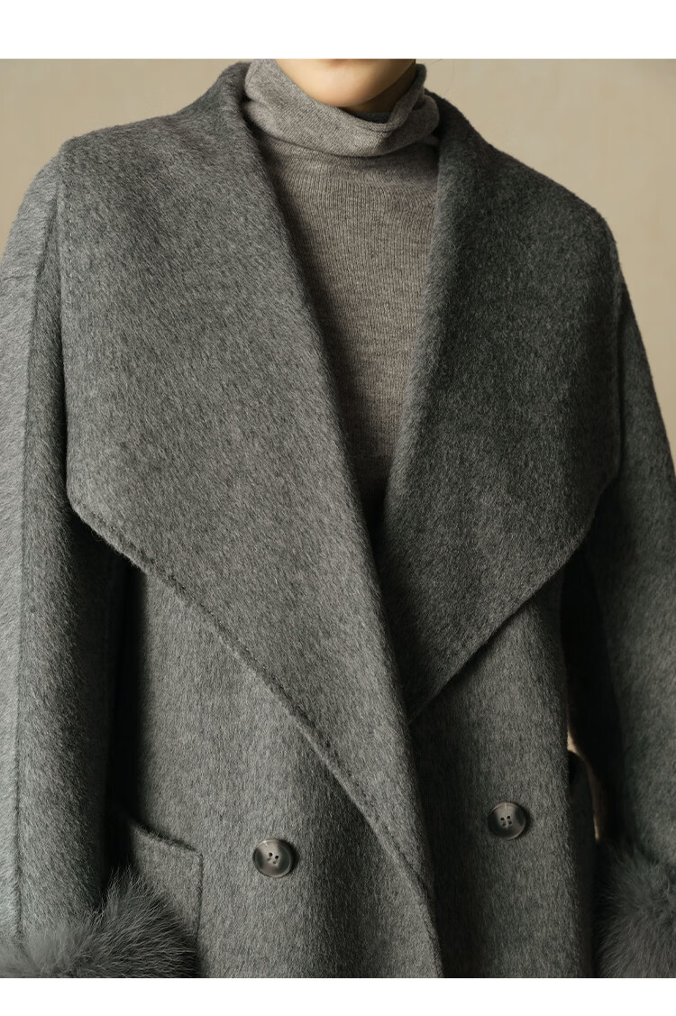Single bundle large size women's D+ series black label high-end temperament shawl detachable wool blended coat for women moonlight gray 2XL (size 4)