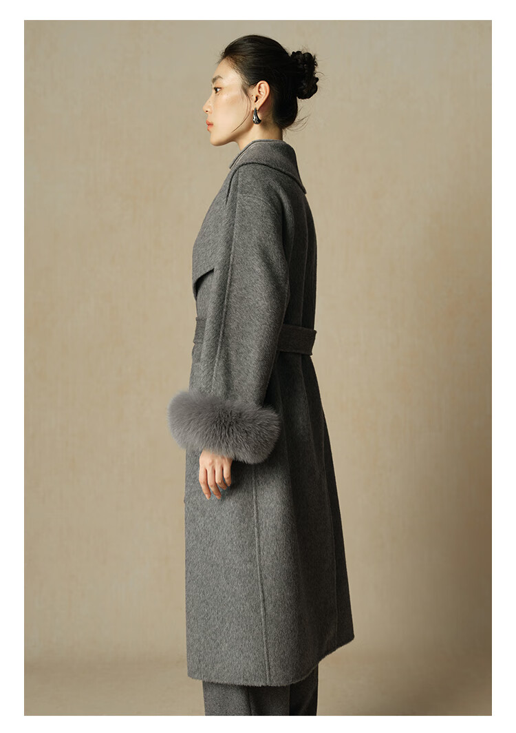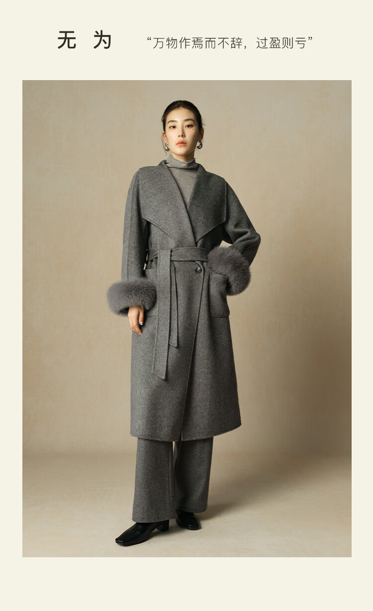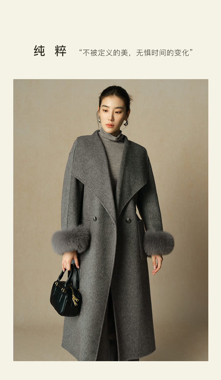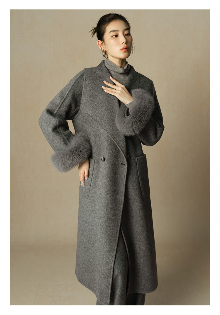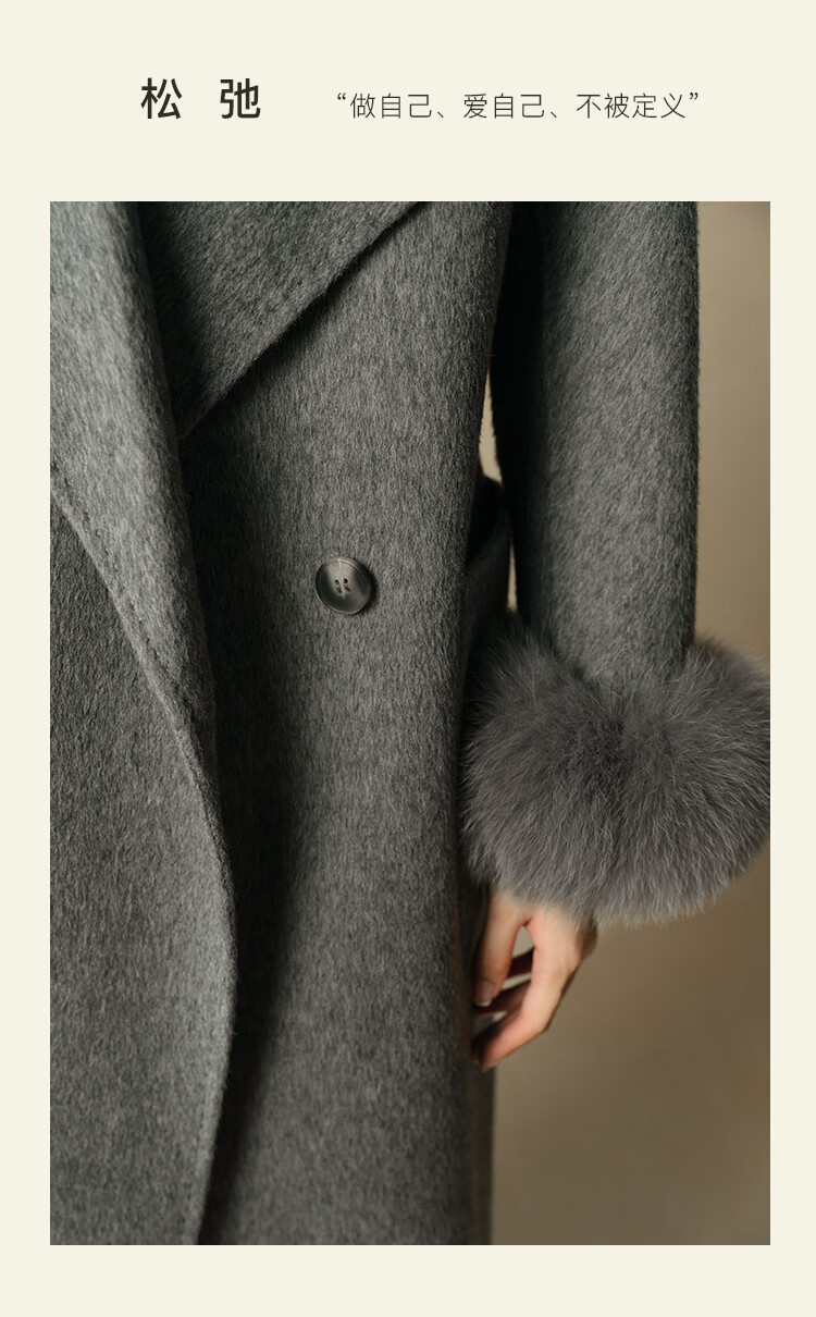 Single bundle large size women's D+ series black label high-end temperament shawl detachable wool blended coat for women moonlight gray 2XL (size 4)