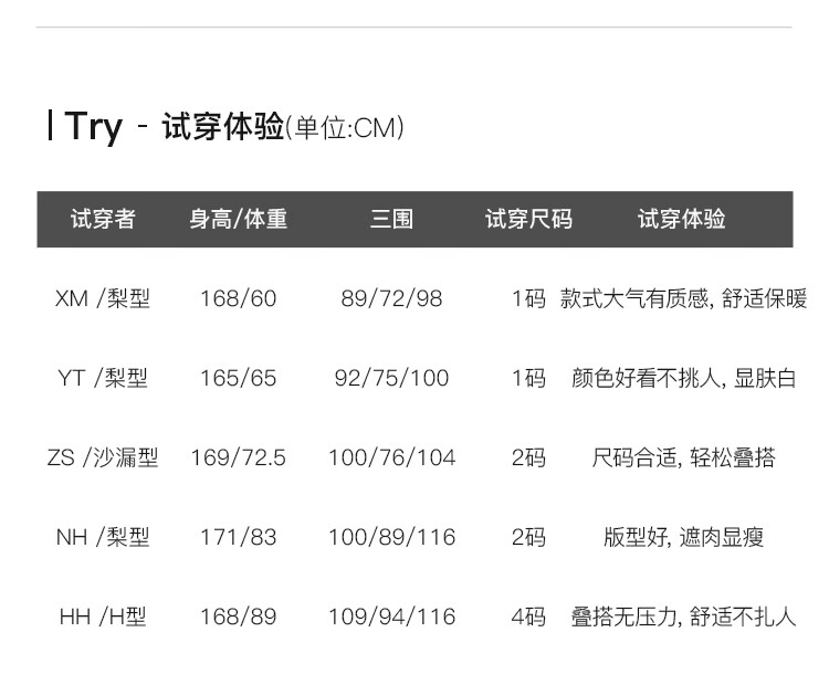 China (cm) 160-165/84-86 165-170 / 88-90 167-172 / 92-96 168-173 / 98-102 170-176 / 106-110