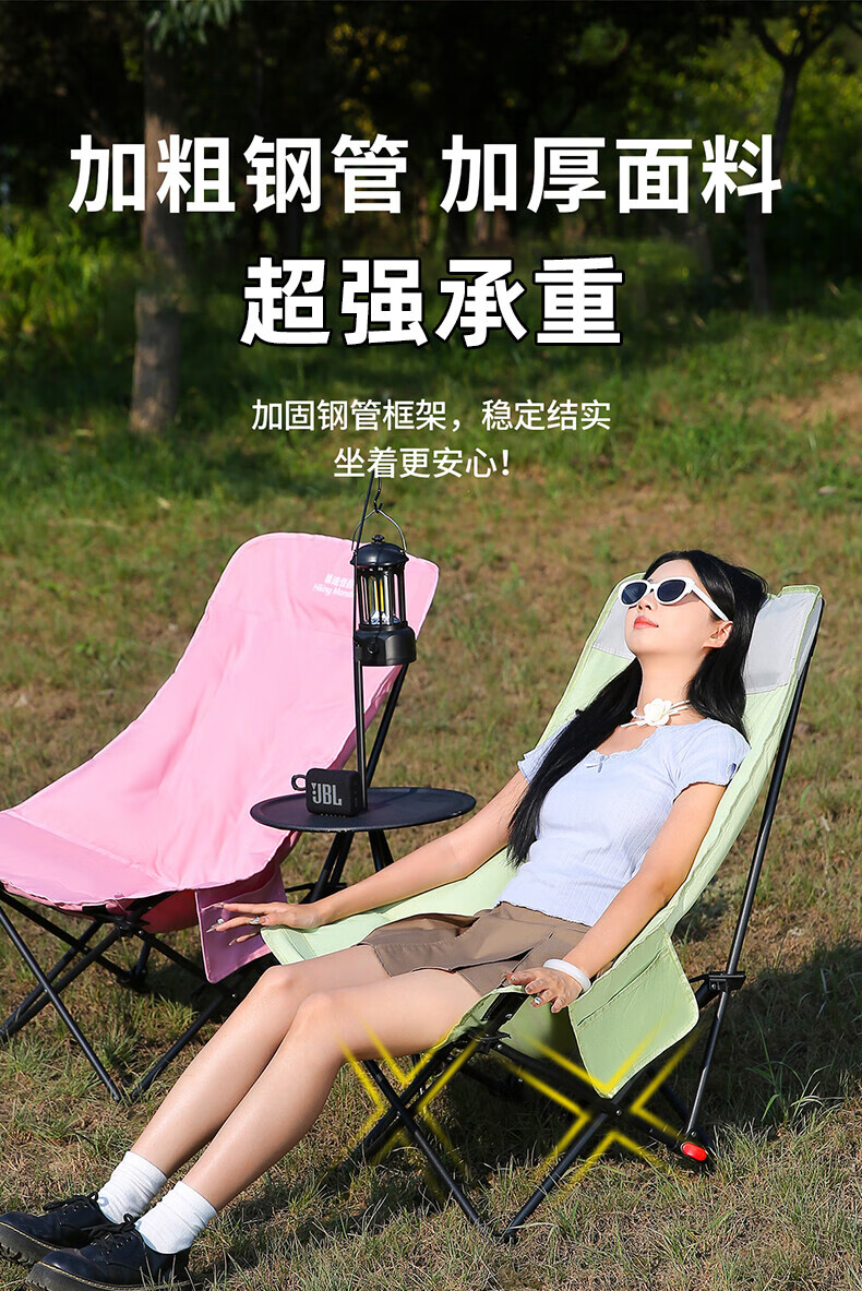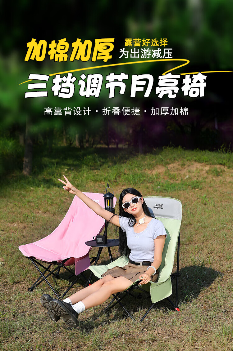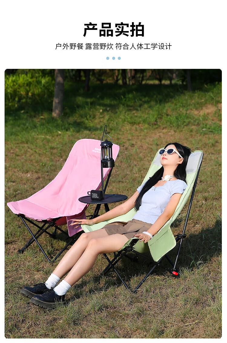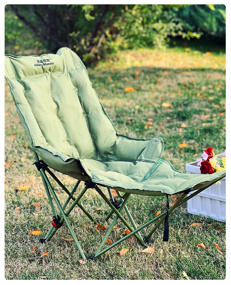 Rampage Monster Outdoor Folding Chair Cotton Moon Chair High Back Portable Recliner Fishing Chair Comfortable Lazy Chair Office Lunch Break Chair Cotton Large Winter Bamboo Green Multi-level Adjustment