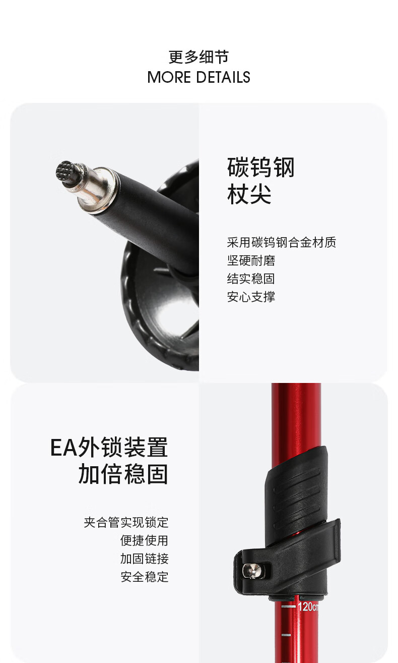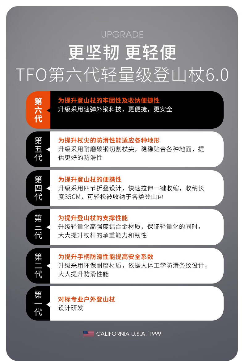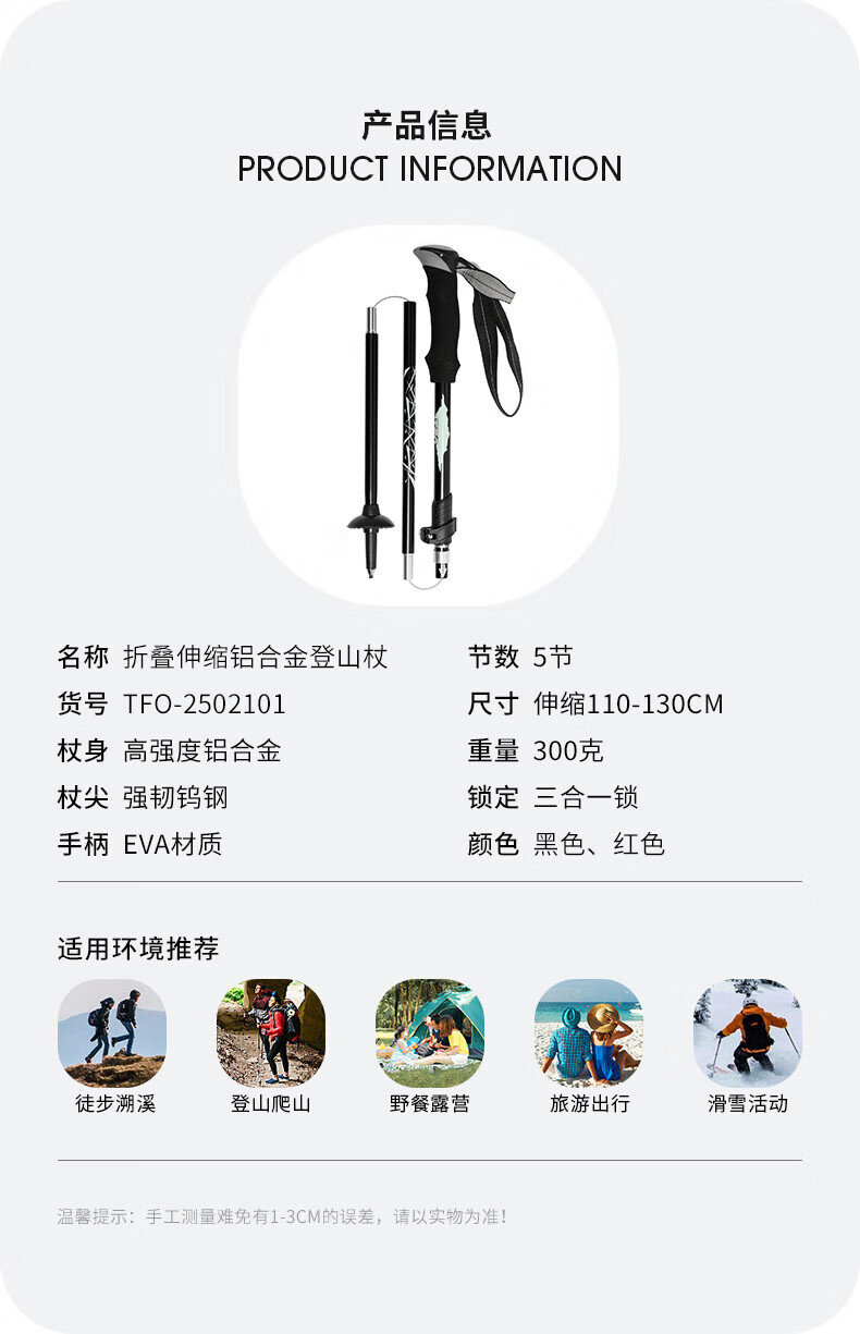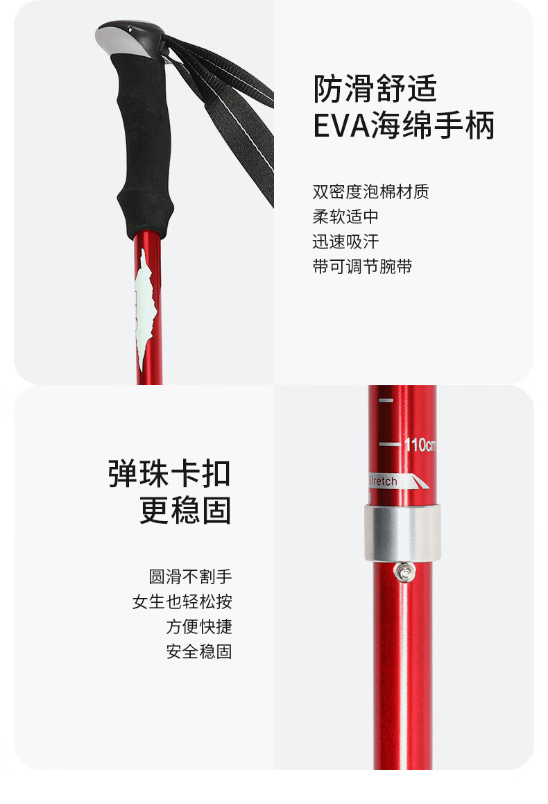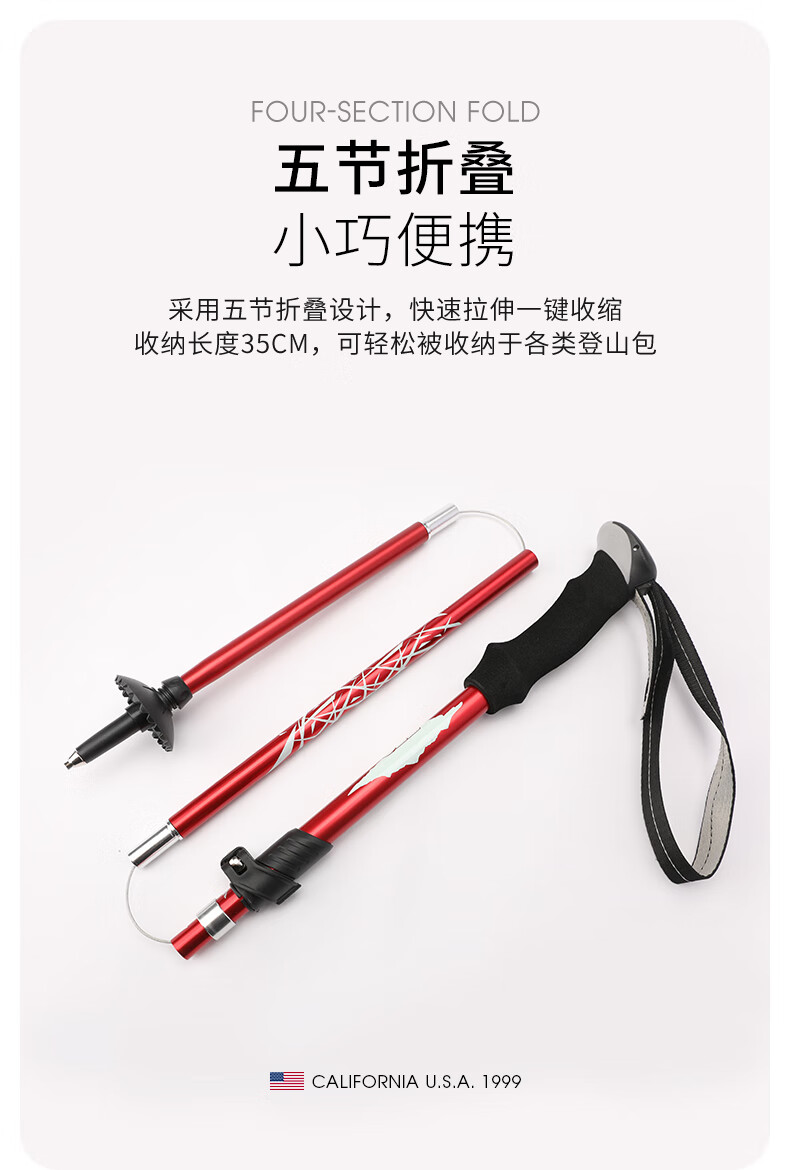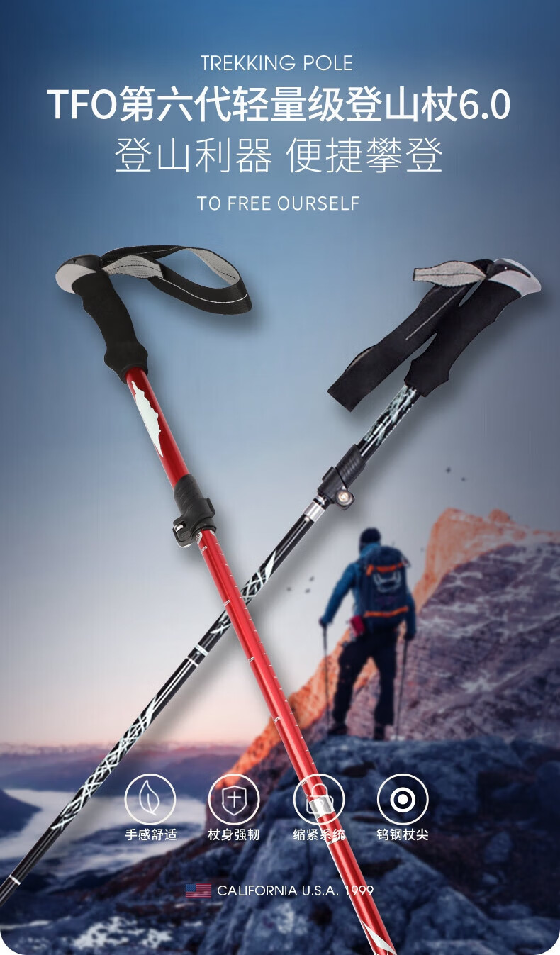 TFO outdoor trekking pole aluminum alloy portable telescopic folding crutches for men and women mountain climbing equipment hiking cane red