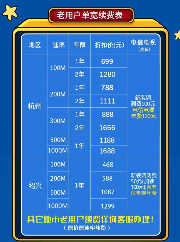 China Telecom, Zhejiang Telecom und die gesamte Provinz kümmern sich um die Breitbandverlängerung für alte Nutzer in Hangzhou, Ningbo, Jiaxing, China Telecom 500M-Paket für 1 Jahr, Verlängerung für alte Nutzer von Hangzhou Telecom