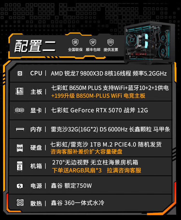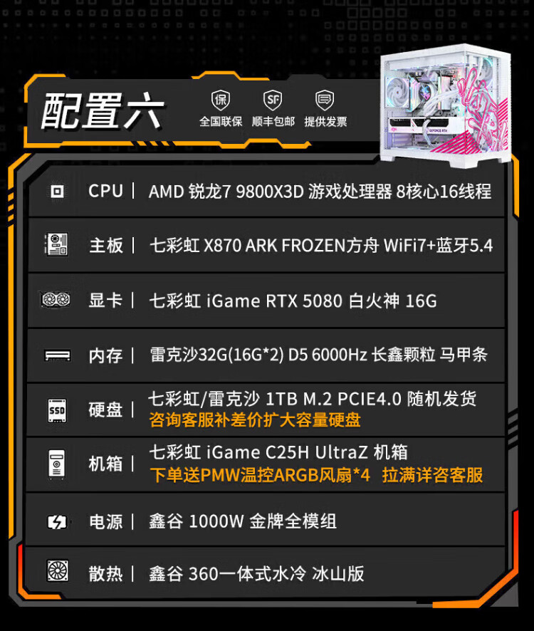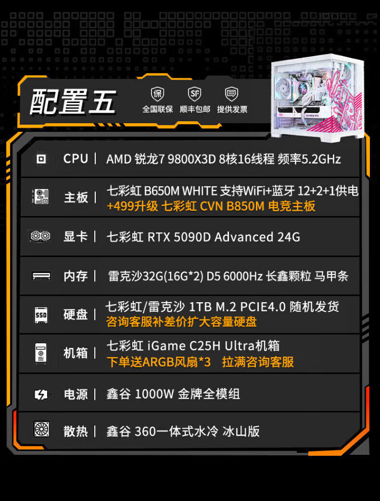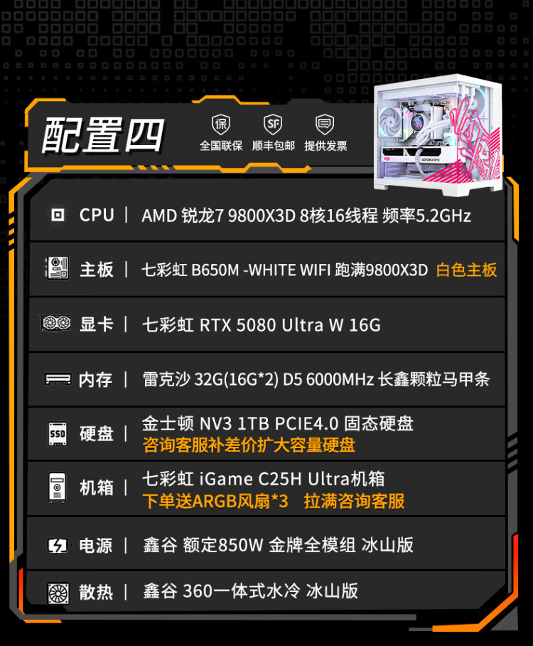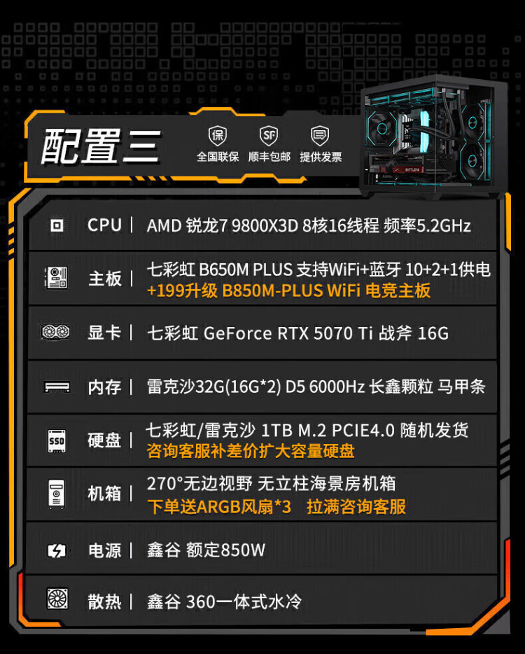 Colorful RTX5090D 5080 5070 Ti graphics card computer host AMD Ryzen 9800x3d desktop DIY assembly computer AI design e-sports game complete machine with three 9800X3D RTX5070Ti host