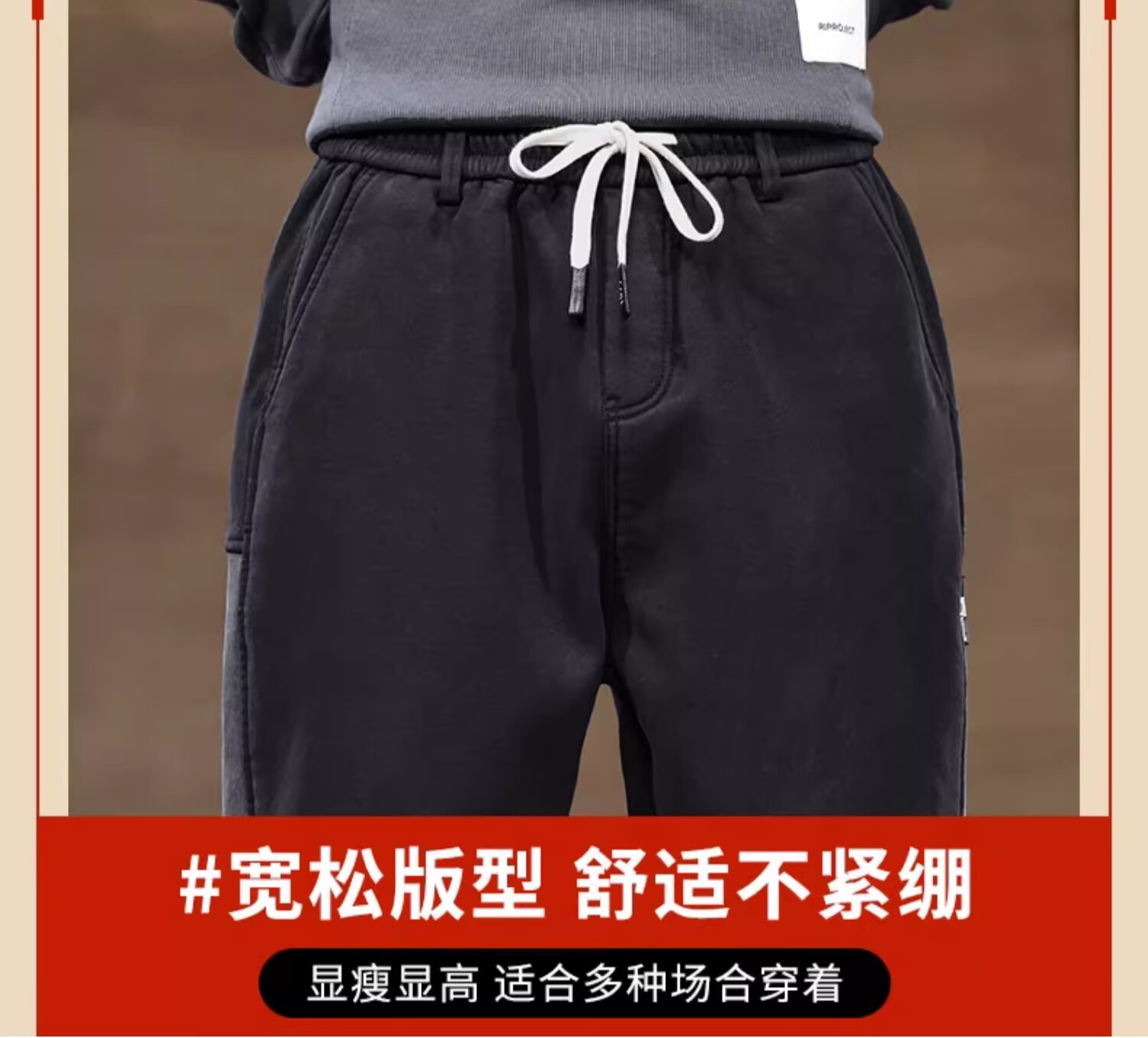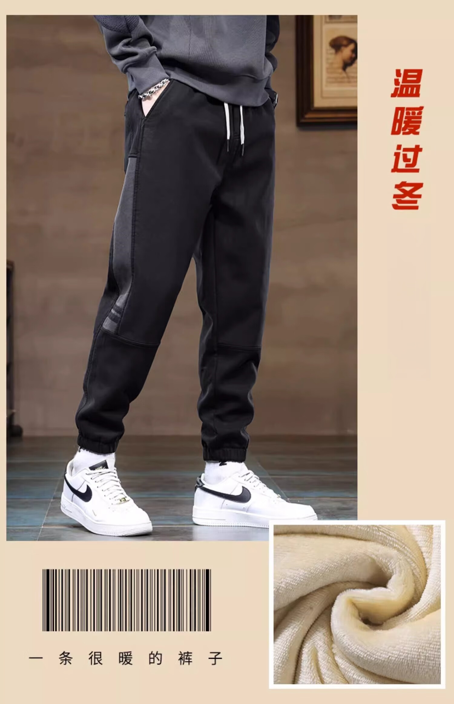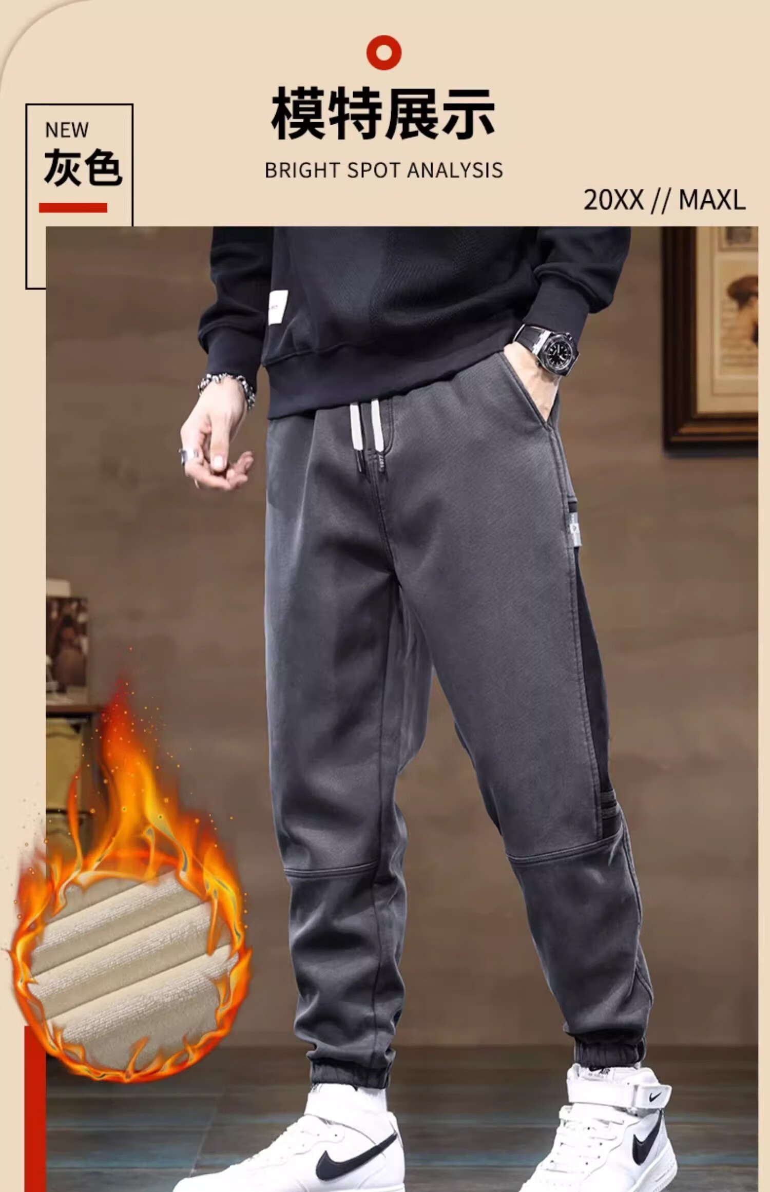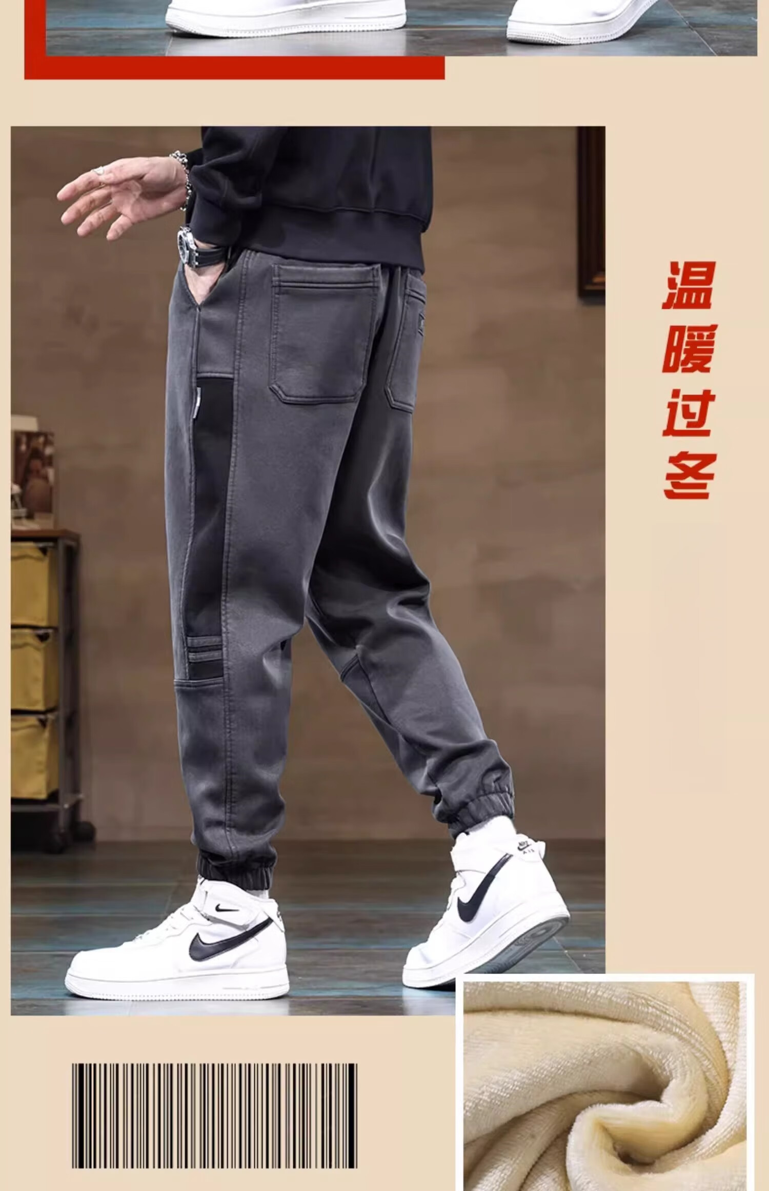 Playboy winter all-in-one velvet casual pants for men, autumn and winter loose harem pants with velvet and thickened outer wear sports pants, gray velvet XL 31/32 size