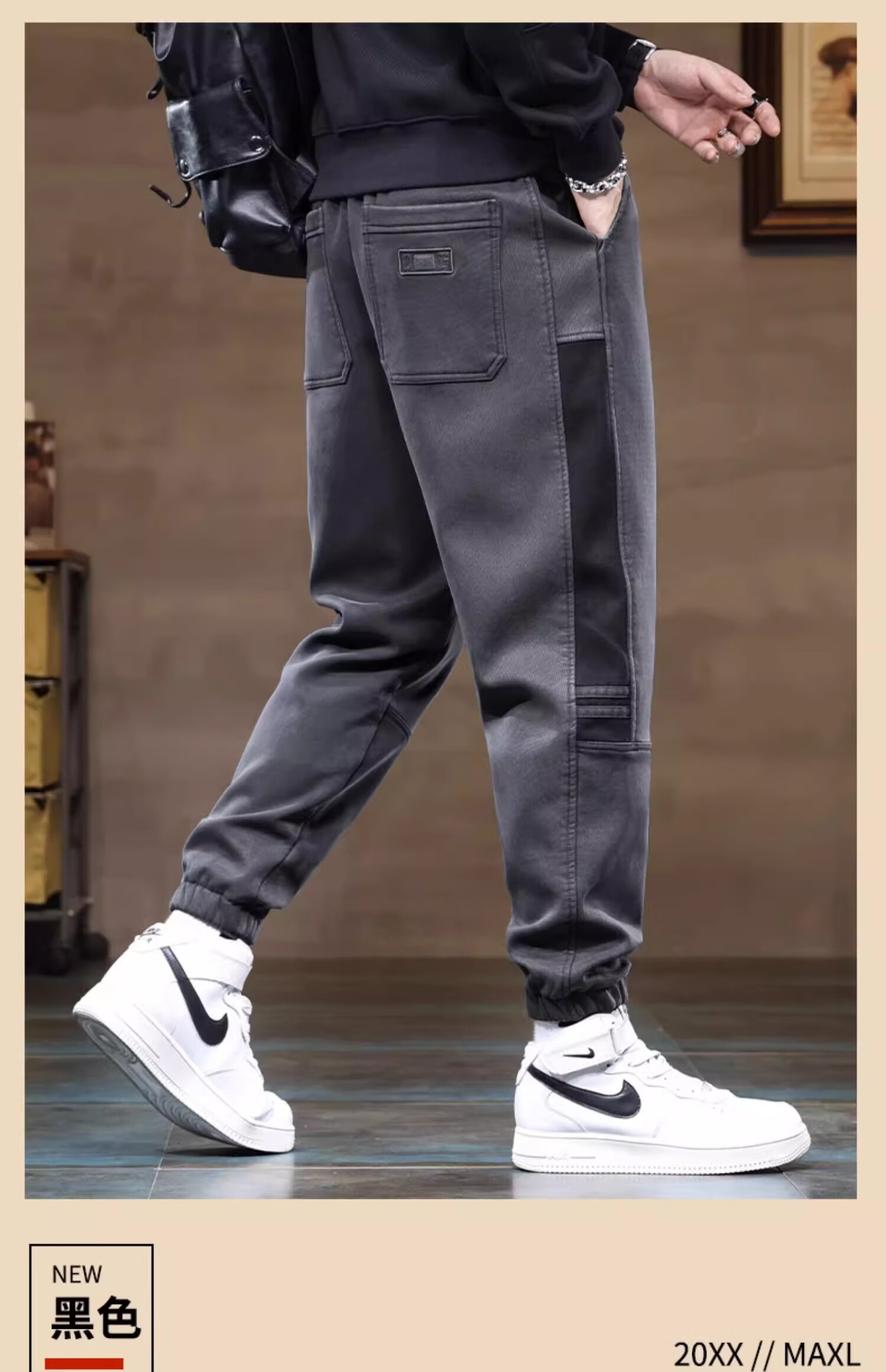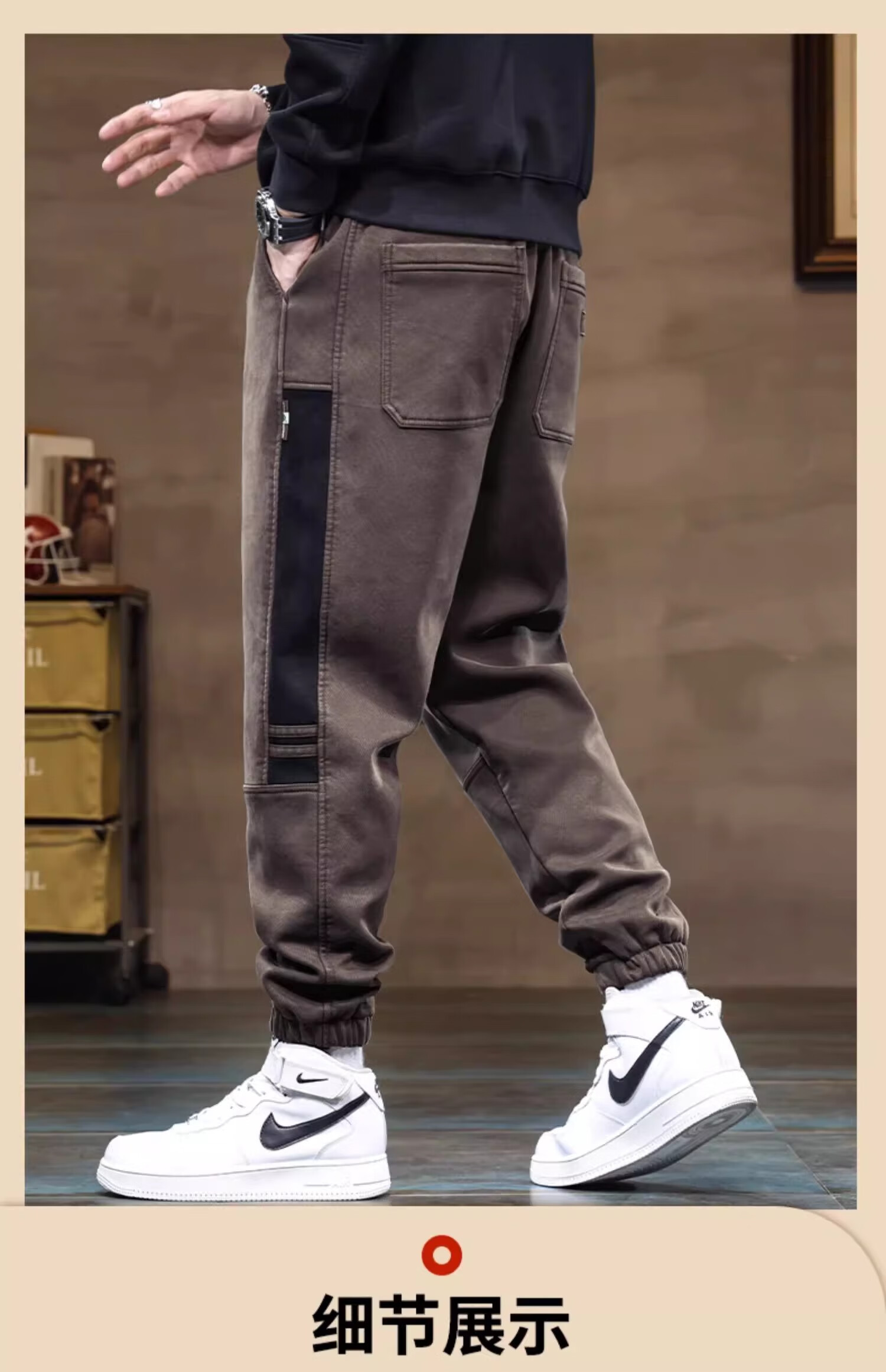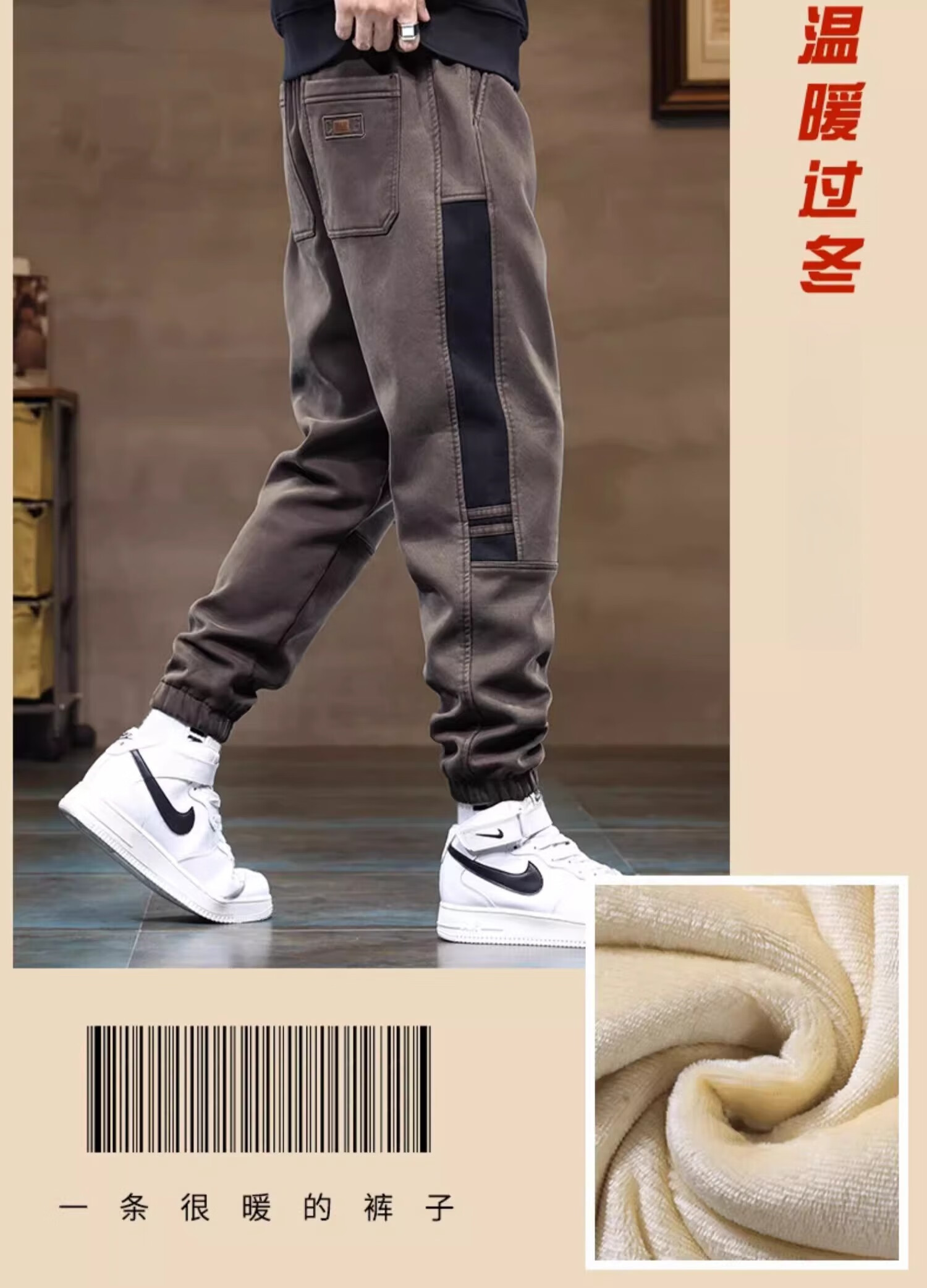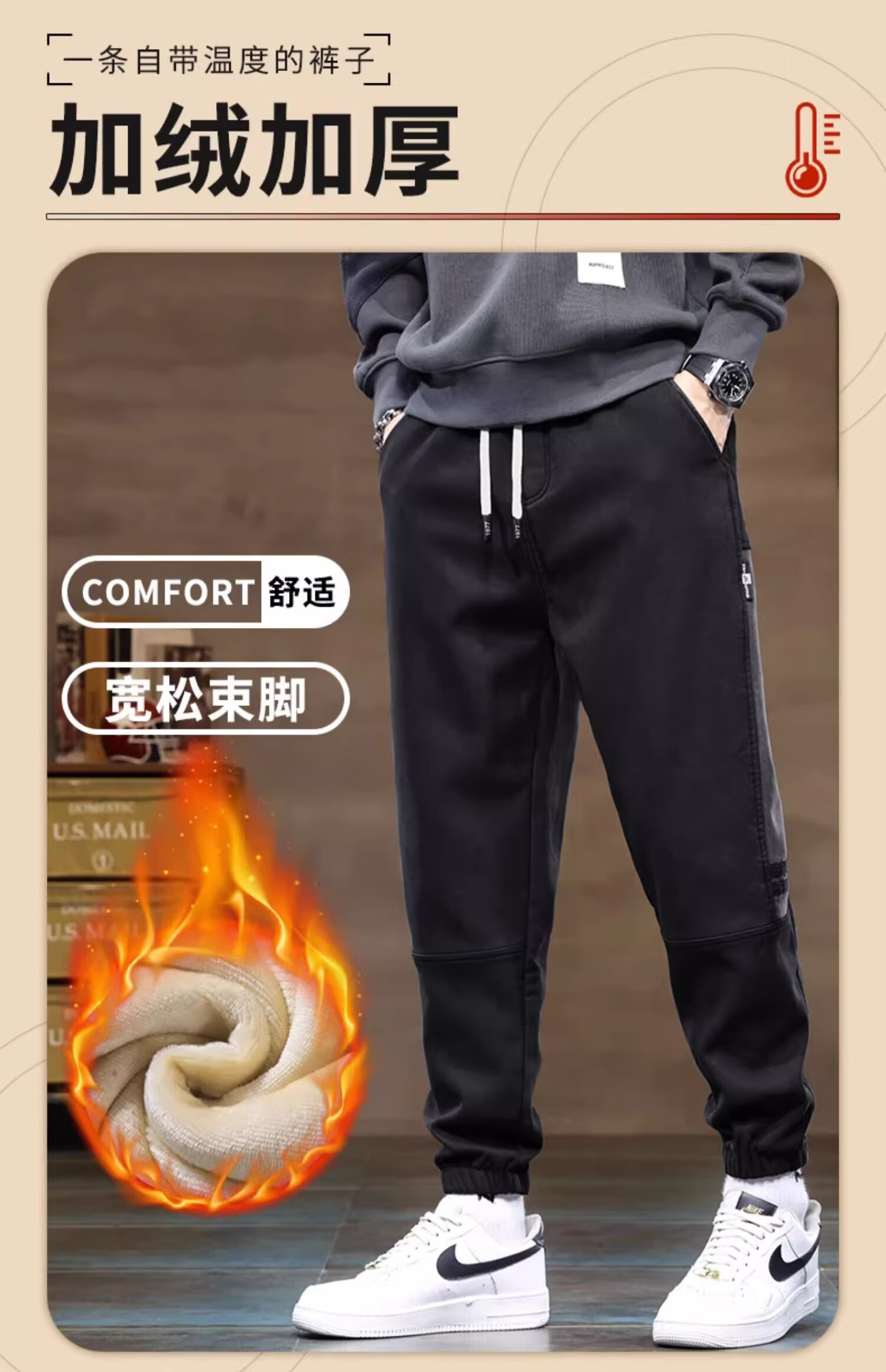 Playboy winter all-in-one velvet casual pants for men, autumn and winter loose harem pants with velvet and thickened outer wear sports pants, gray velvet XL 31/32 size