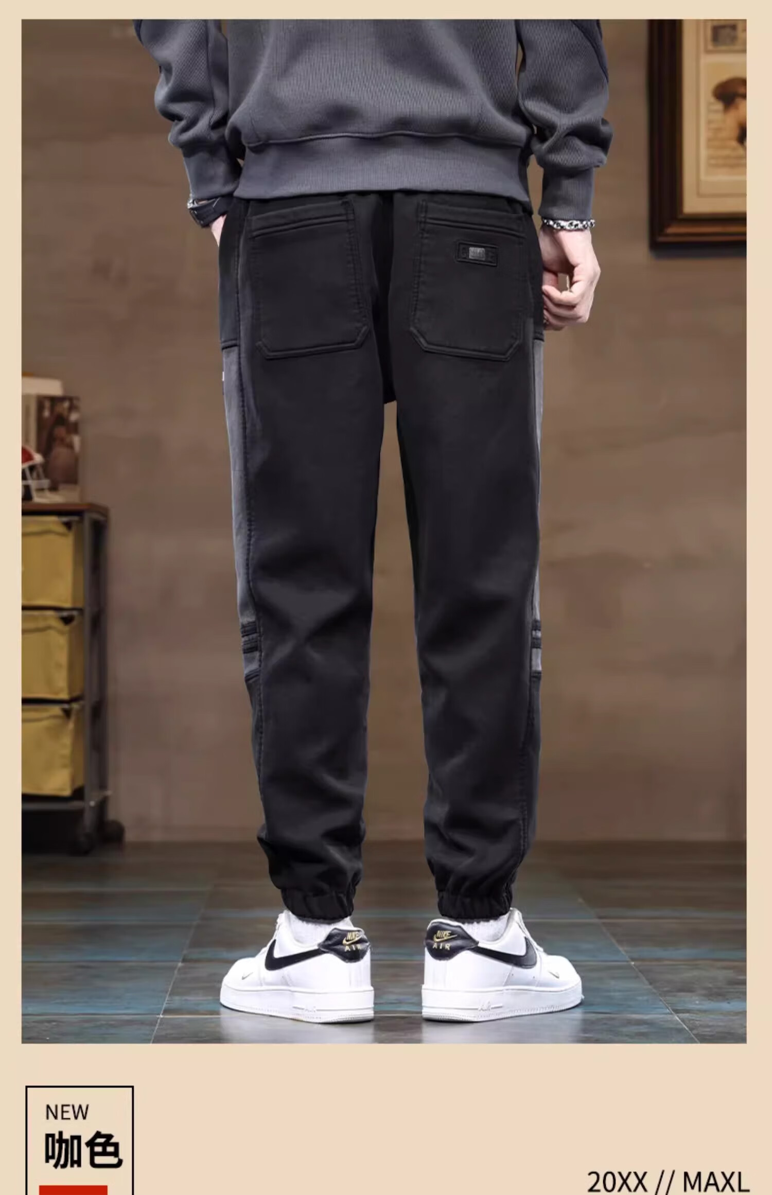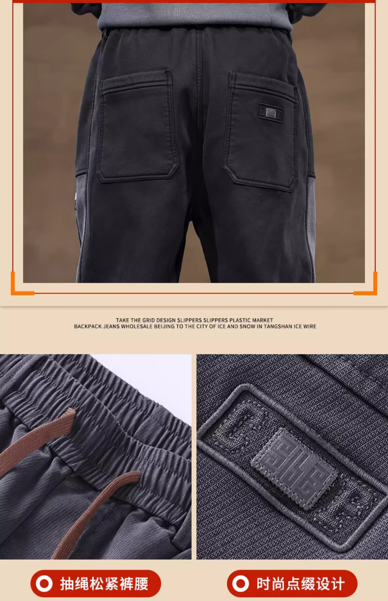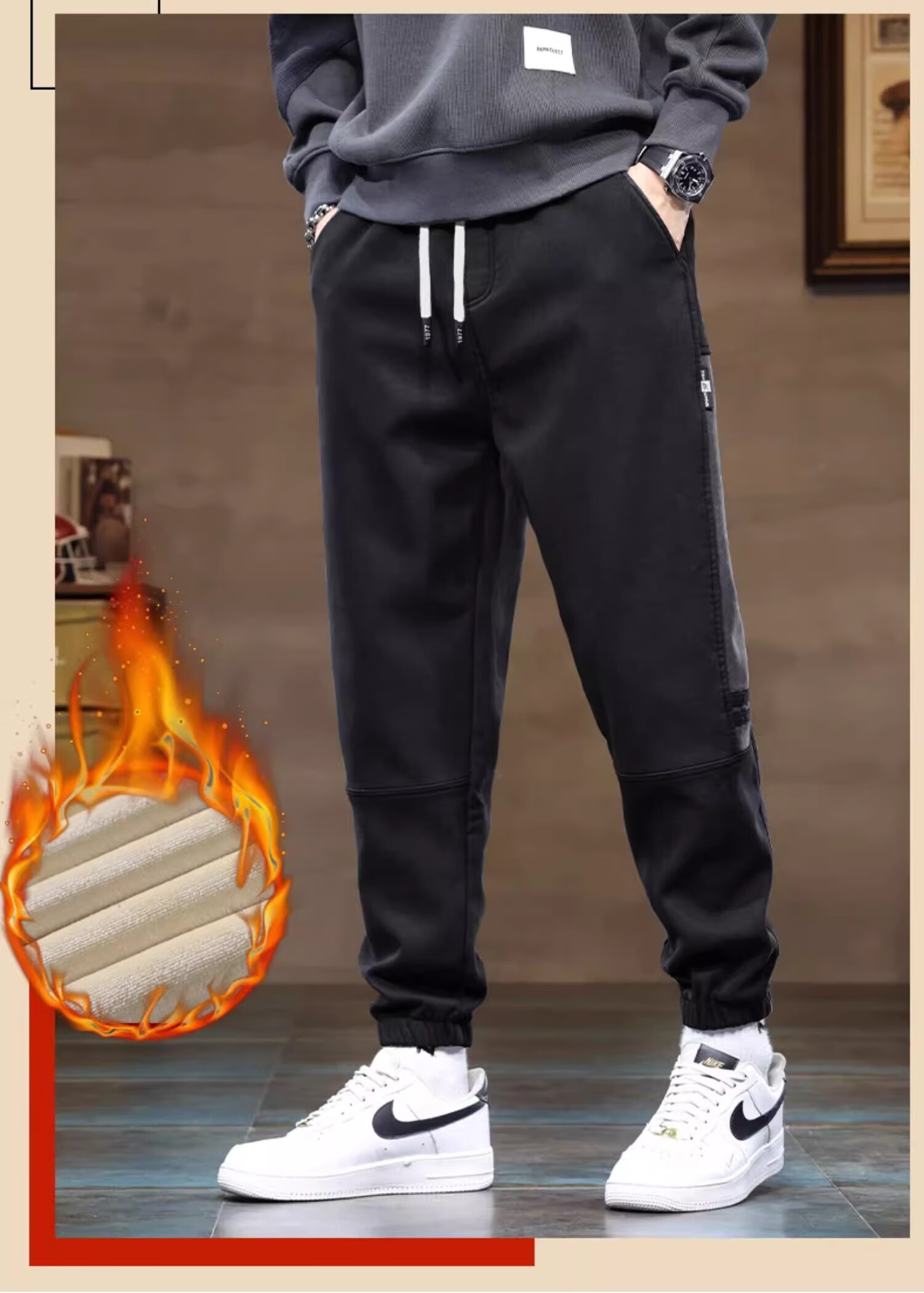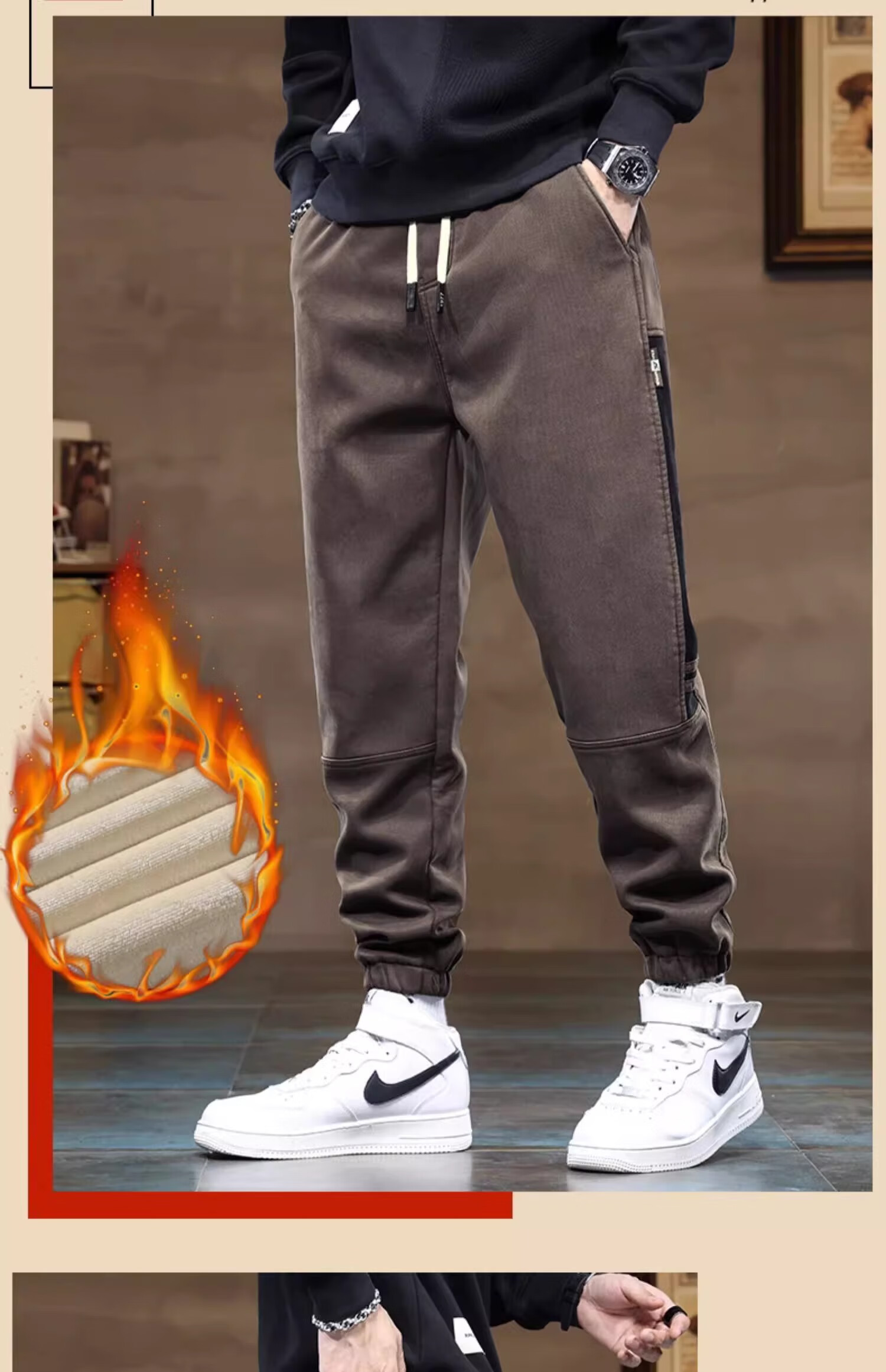 Playboy winter all-in-one velvet casual pants for men, autumn and winter loose harem pants with velvet and thickened outer wear sports pants, gray velvet XL 31/32 size
